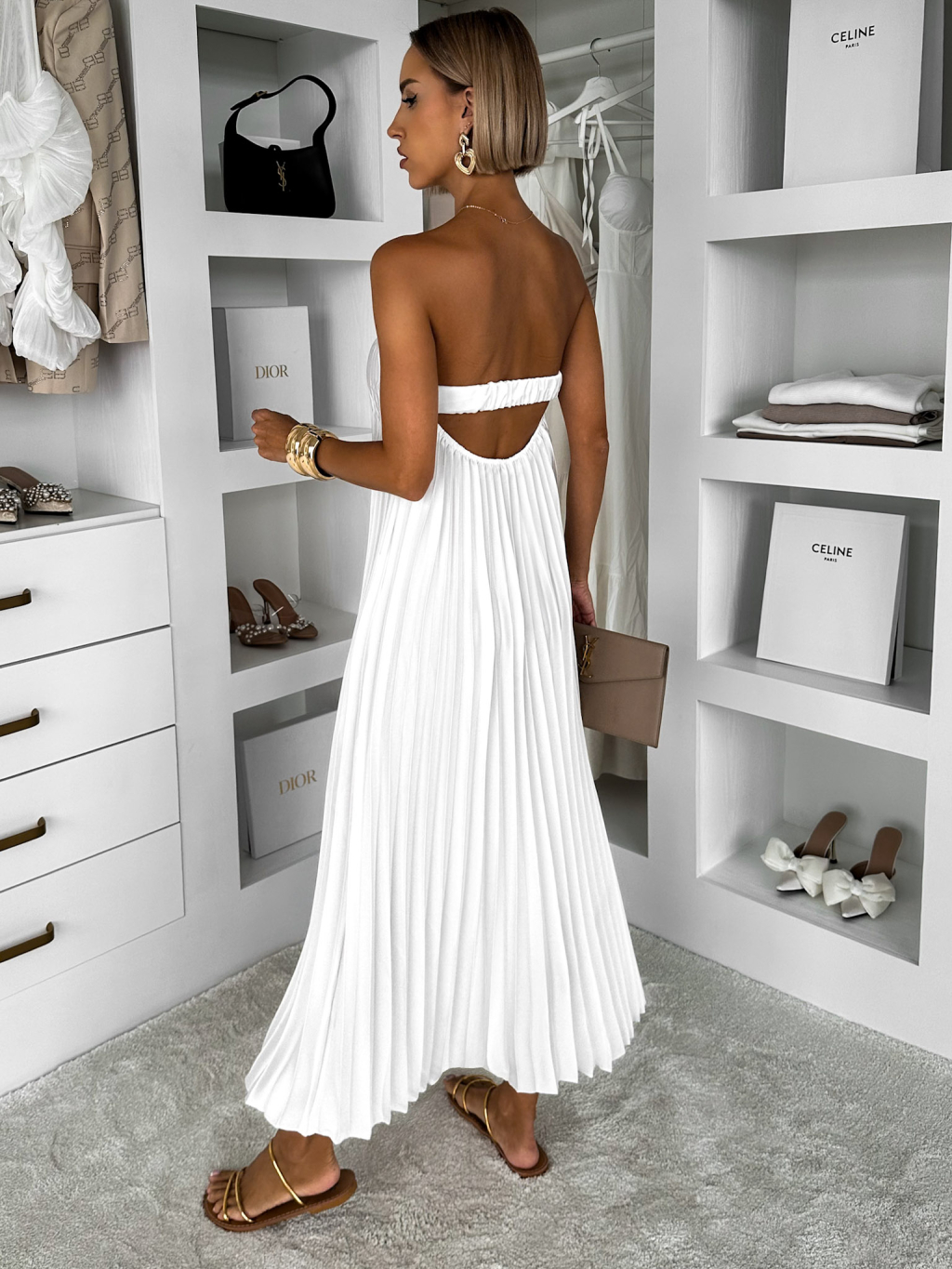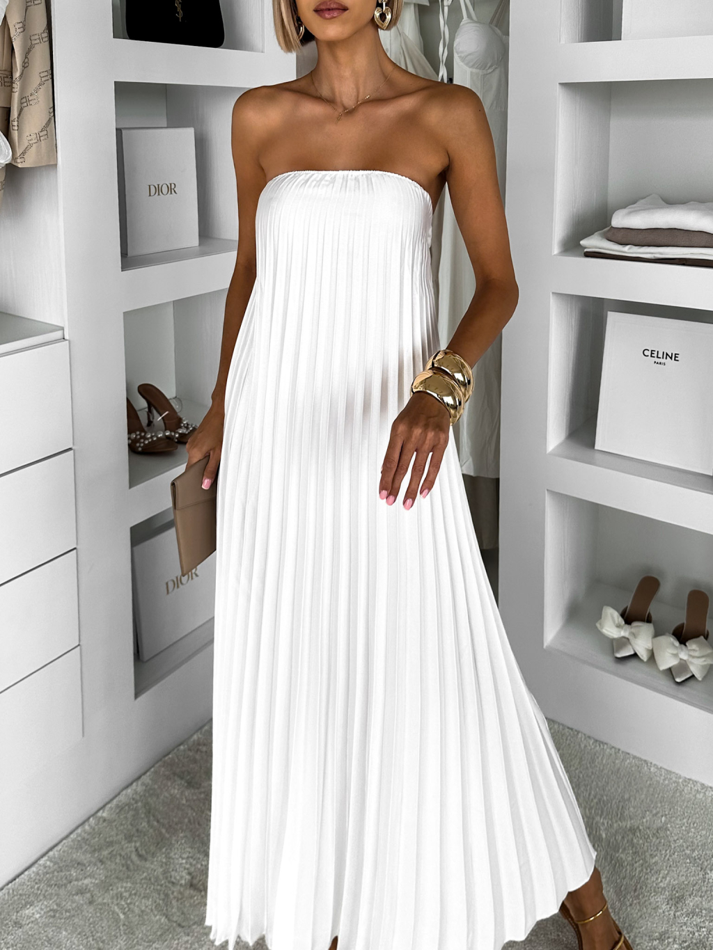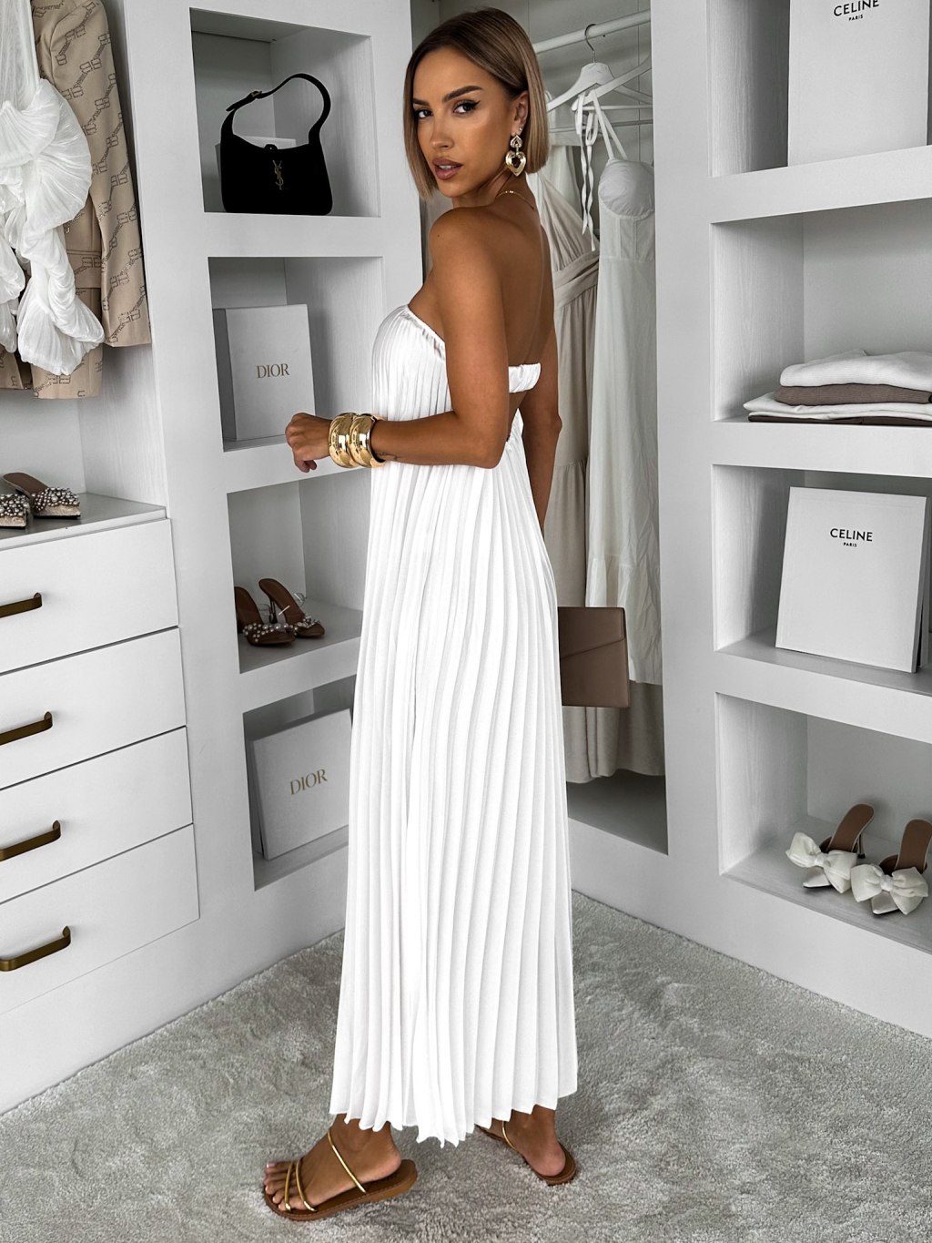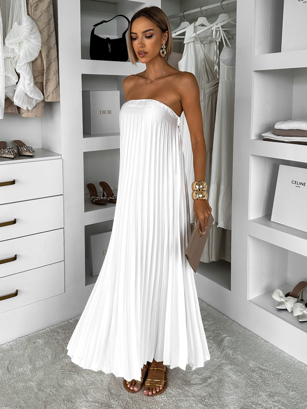 Biele plisované dlhé šaty AMAONA bez ramienok
