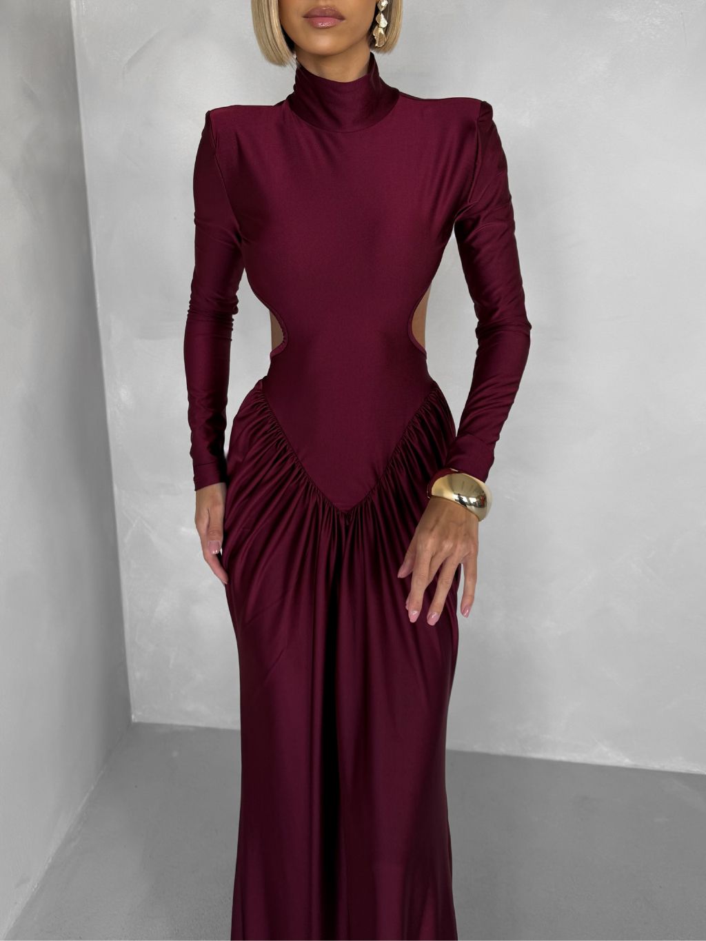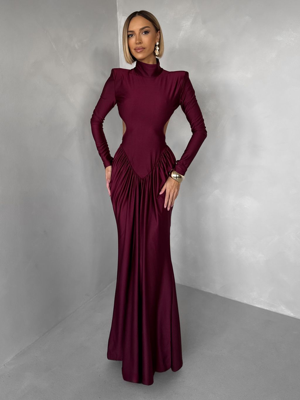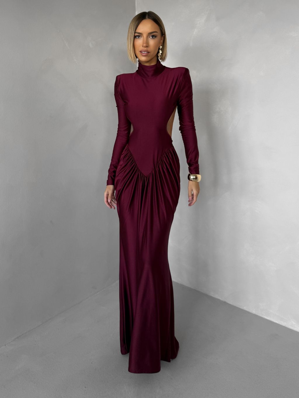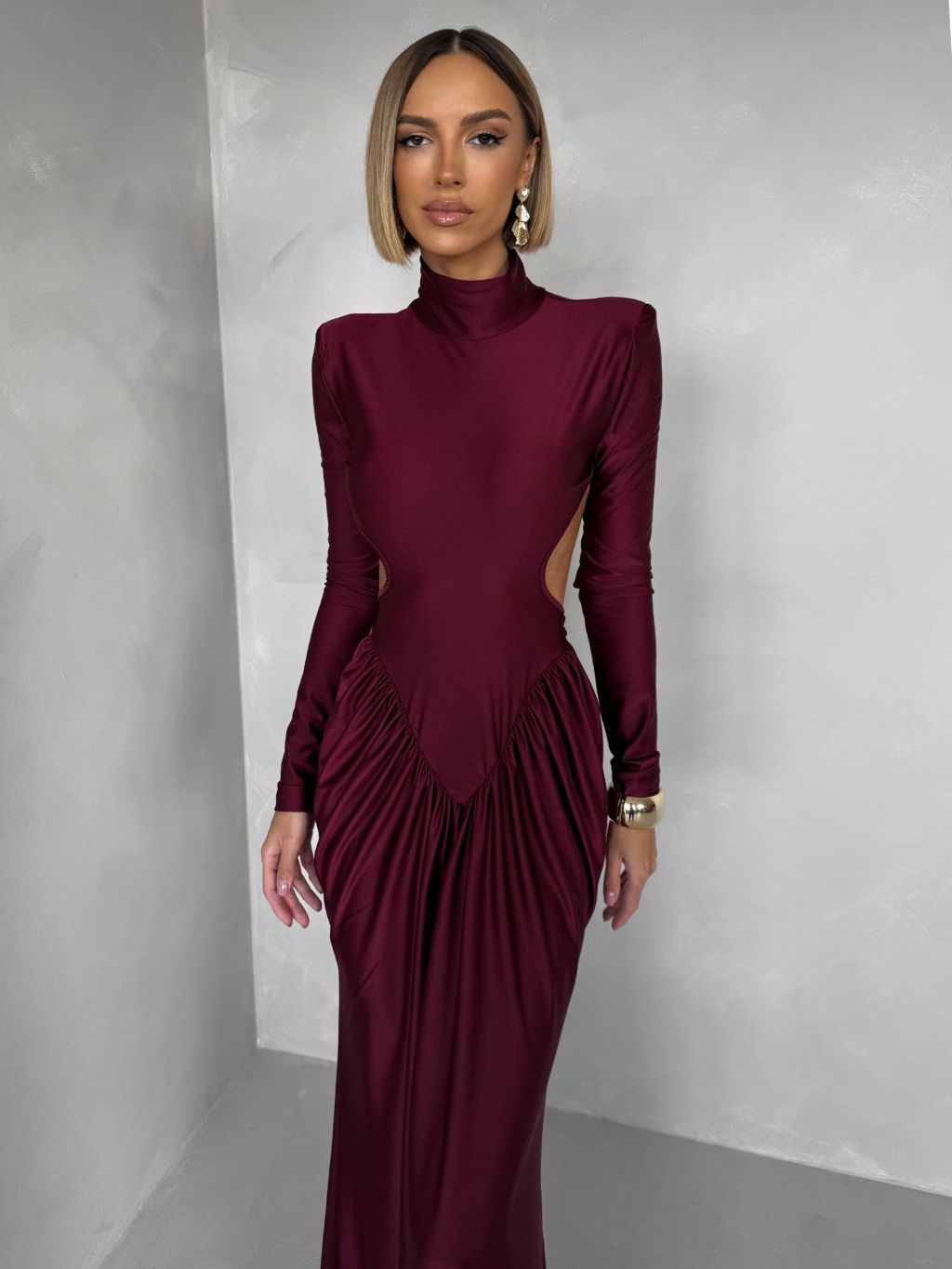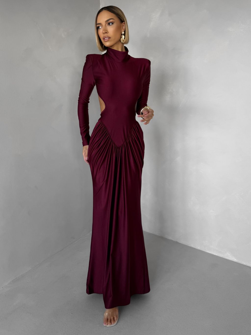 Bordó spoločenské tvarujúce šaty RELANIO s prestrihmi