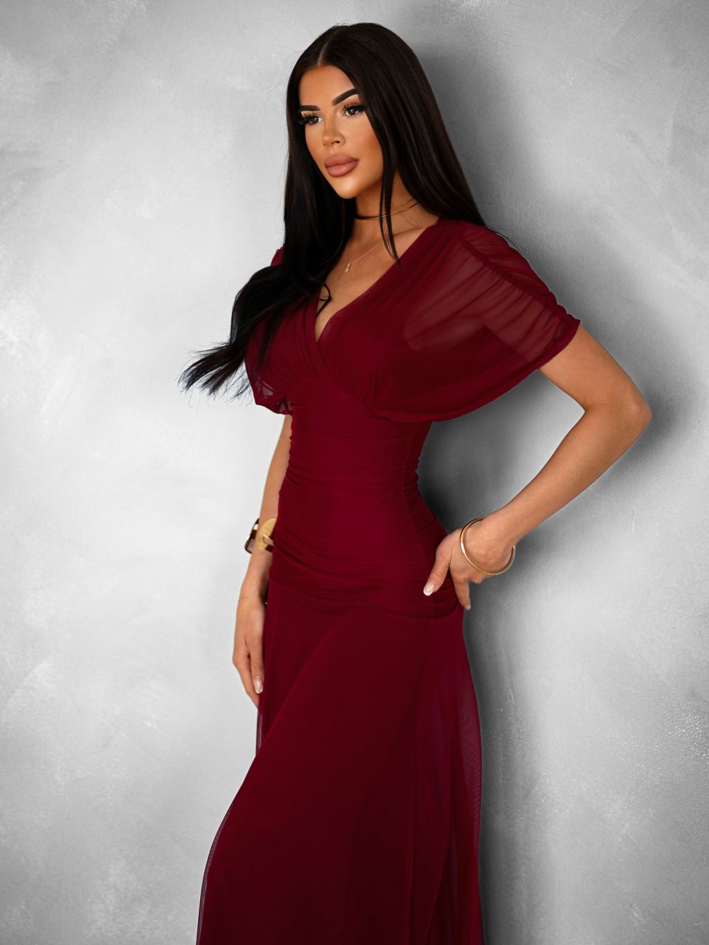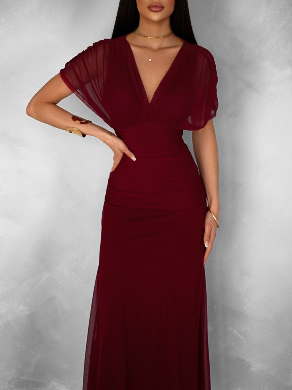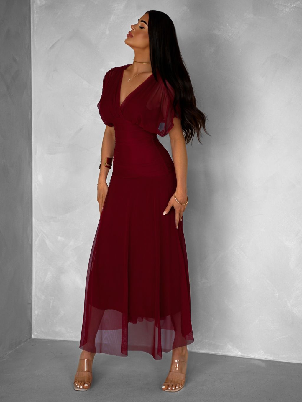 Bordó tylové dlhé spoločenské šaty VOLYADA