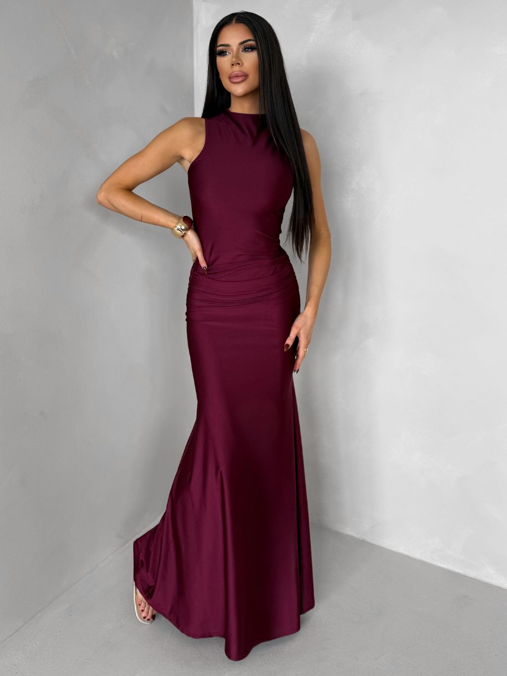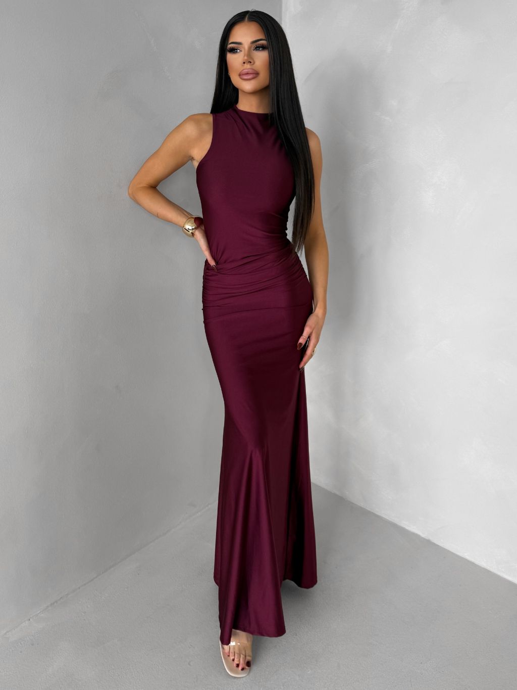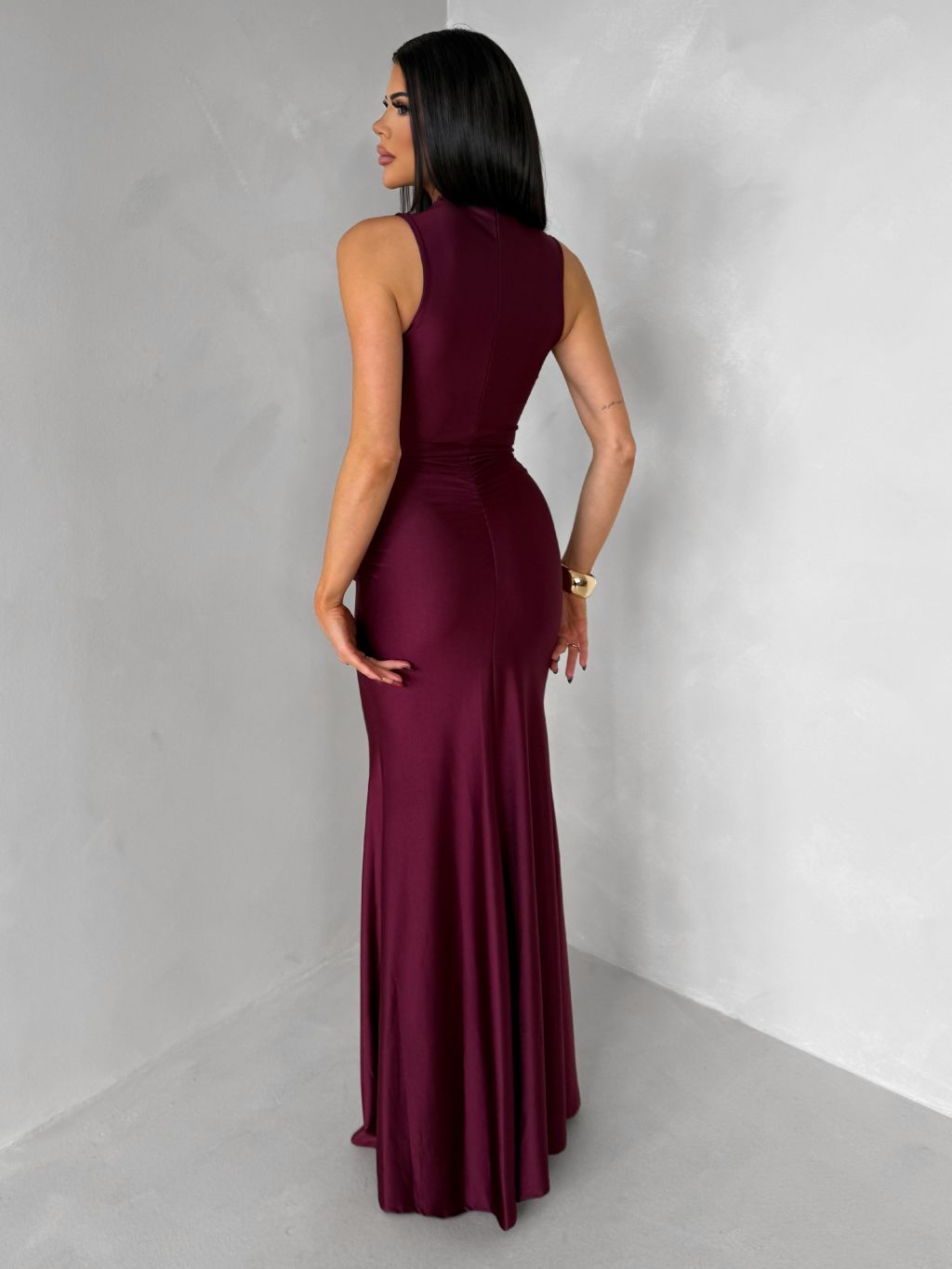 Bordové dlhé spoločenské šaty LETERA s rázporkom