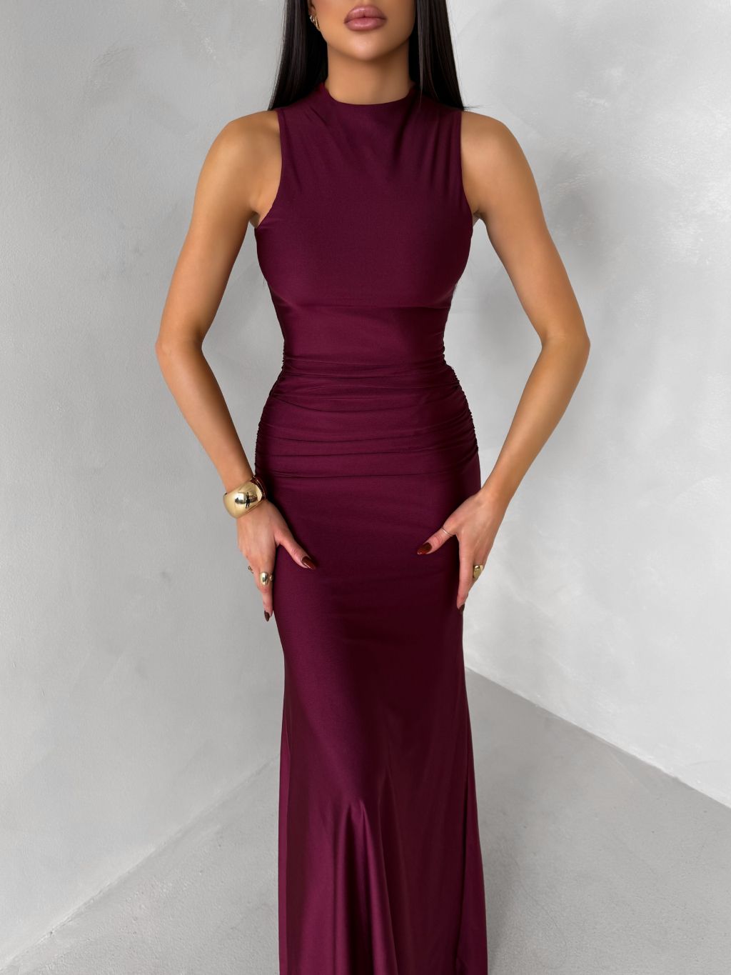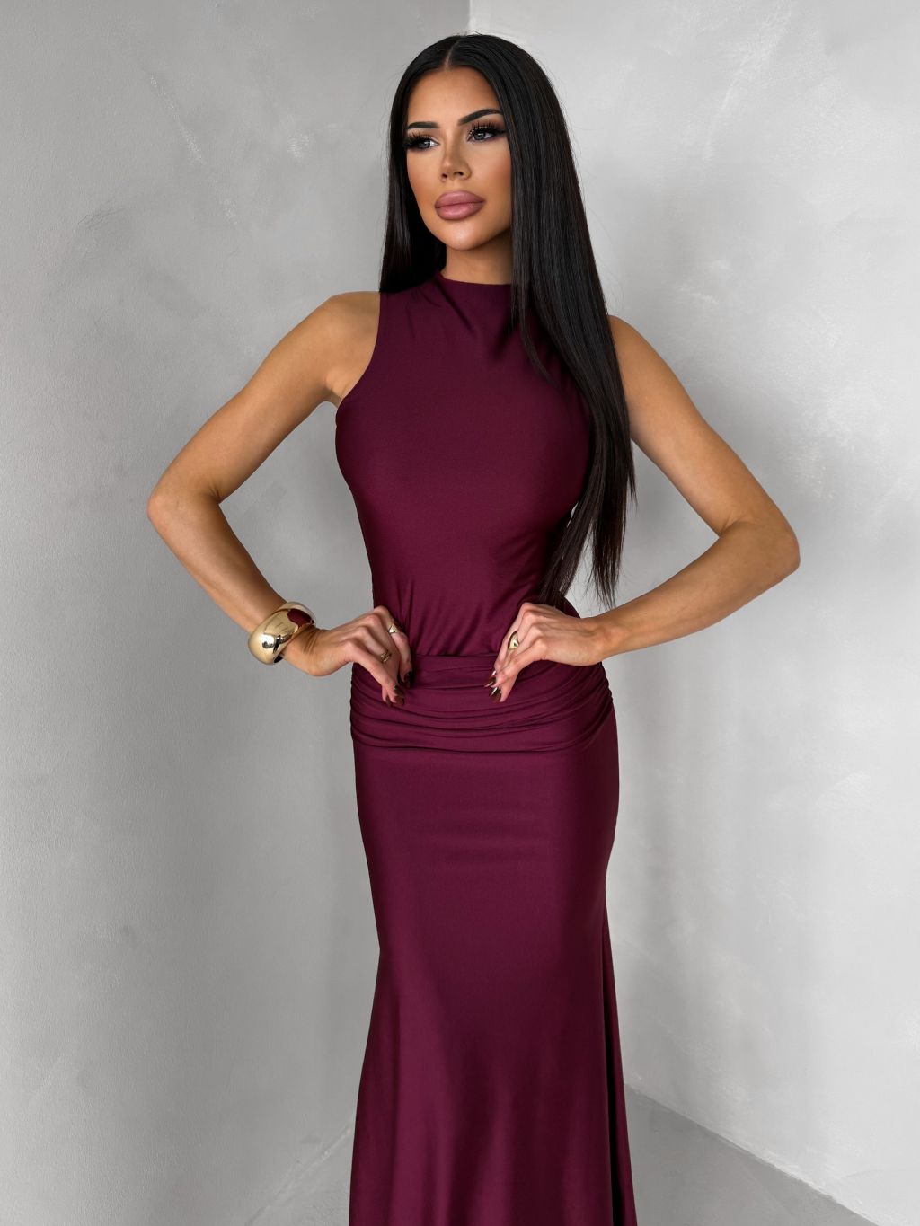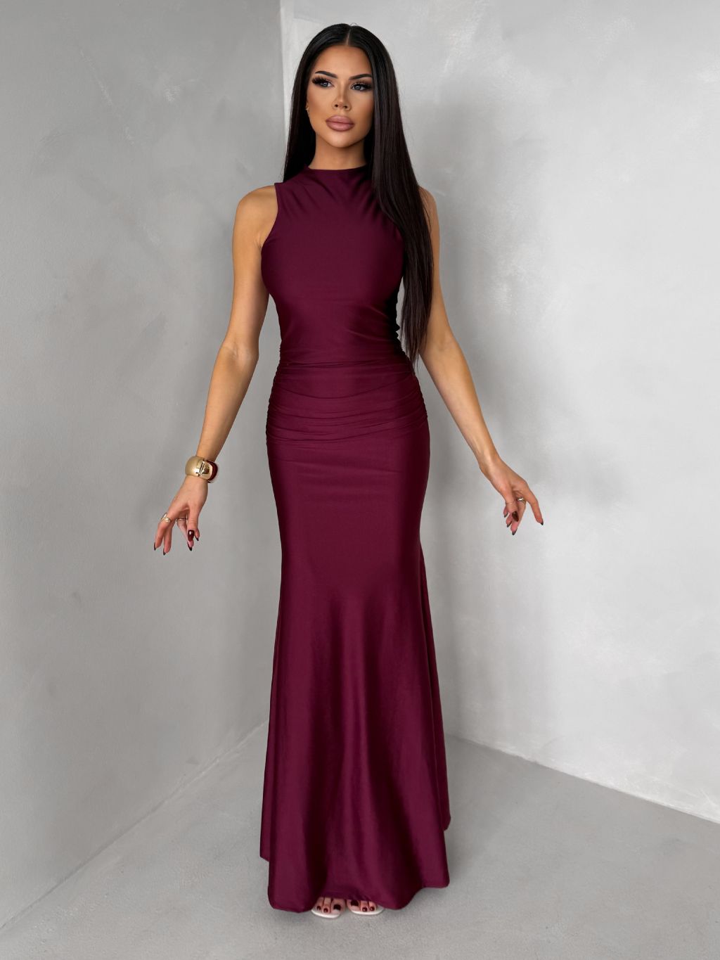 Bordové dlhé spoločenské šaty LETERA s rázporkom