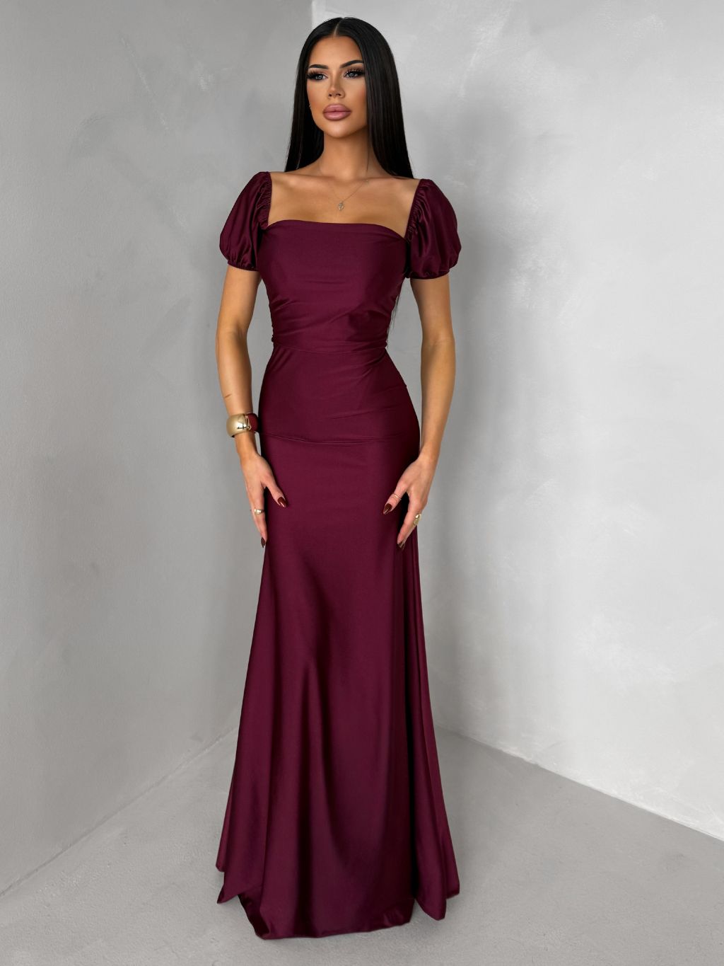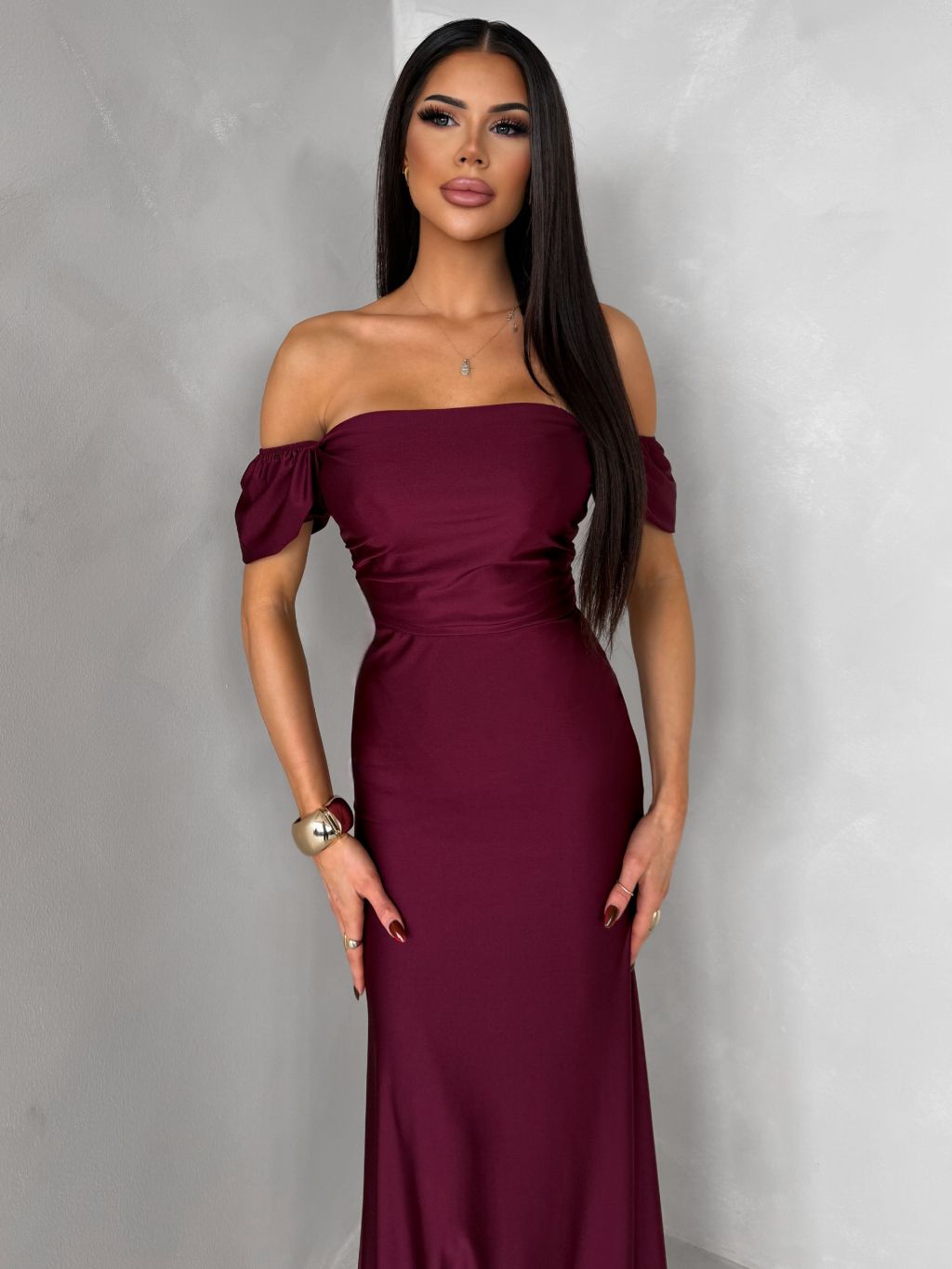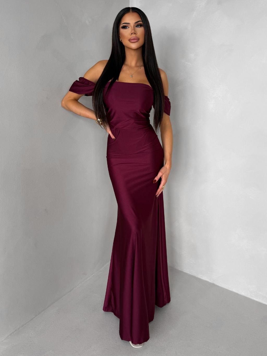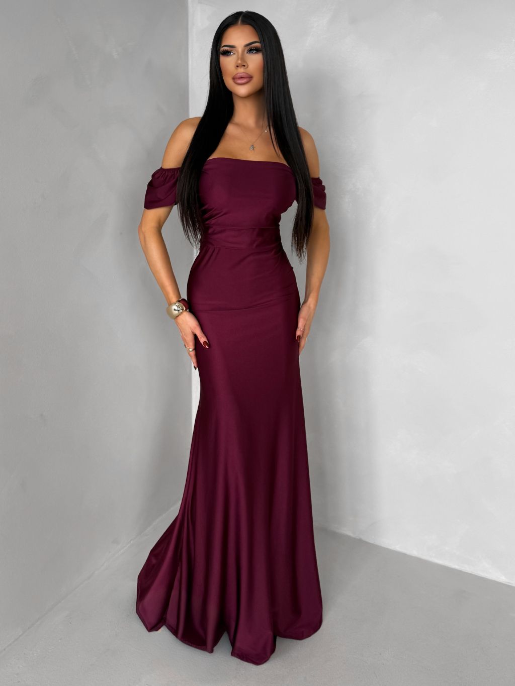 Bordové spoločenské dlhé plesové šaty LUNZARO