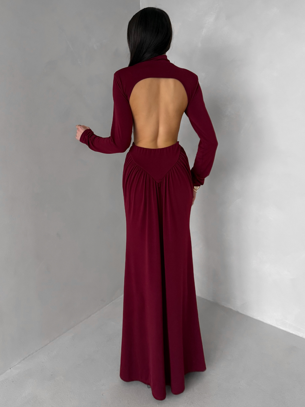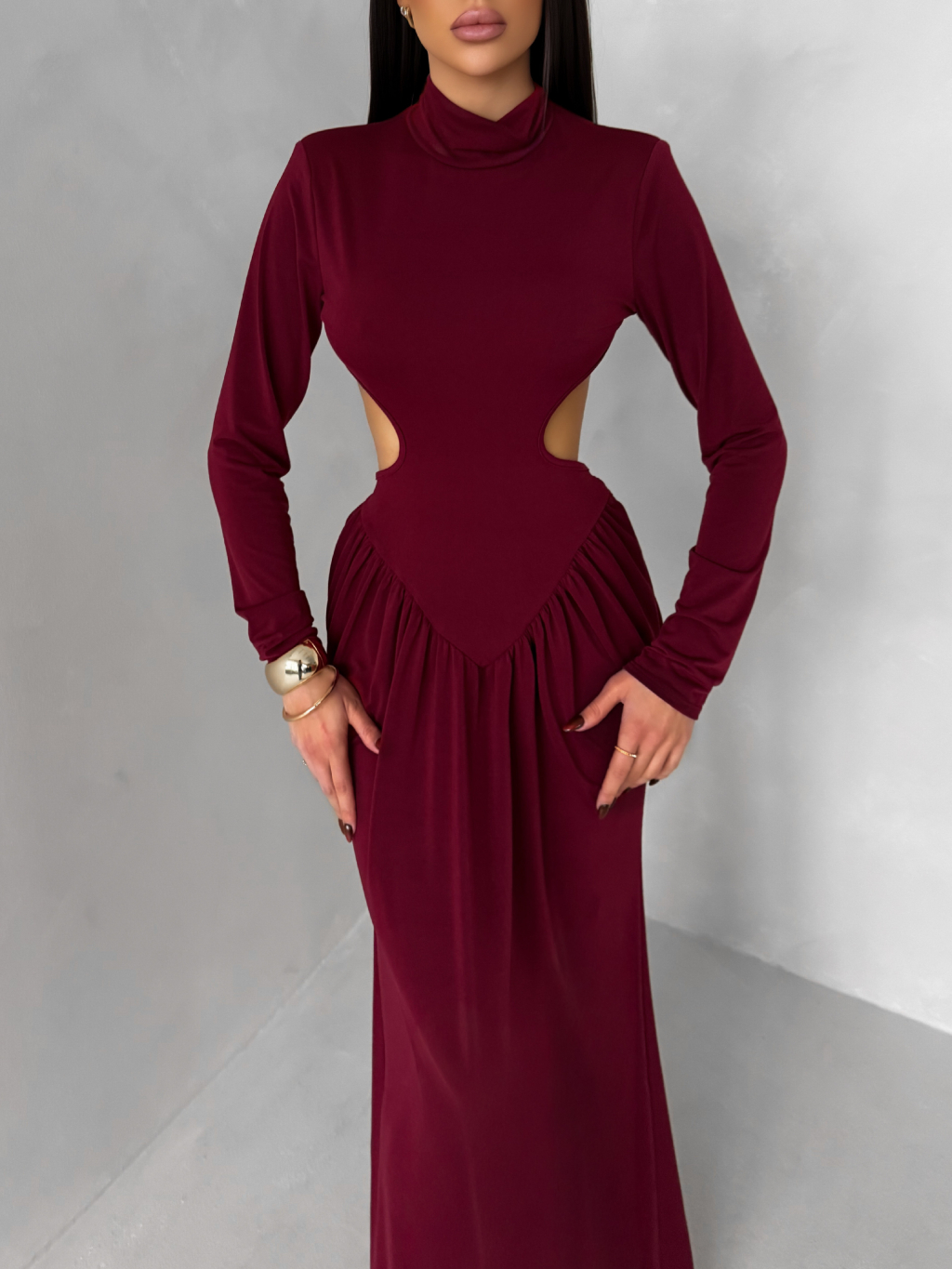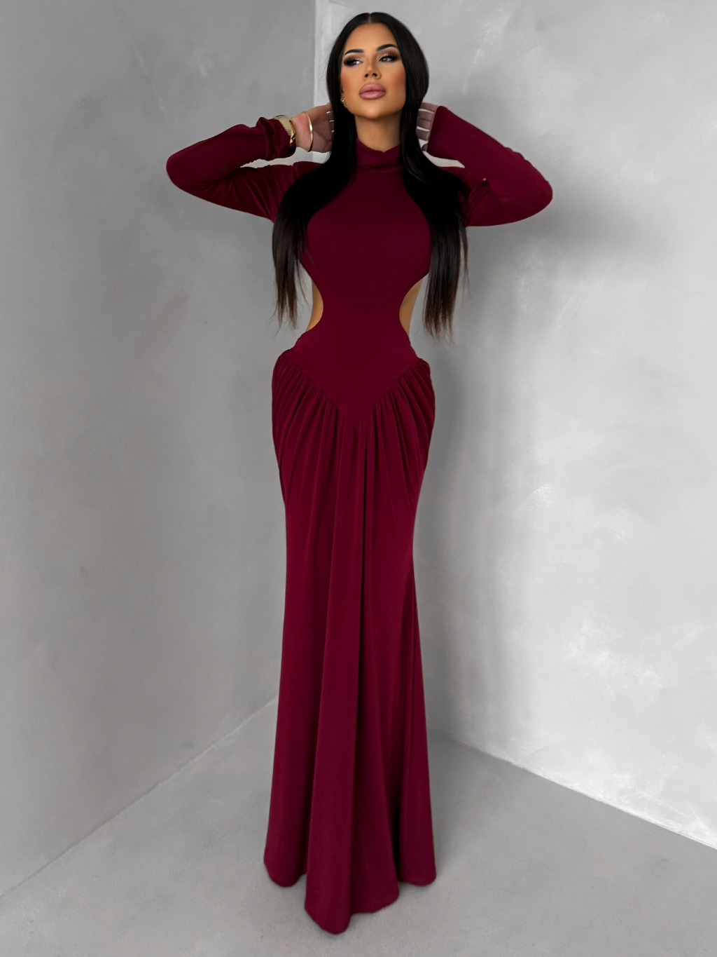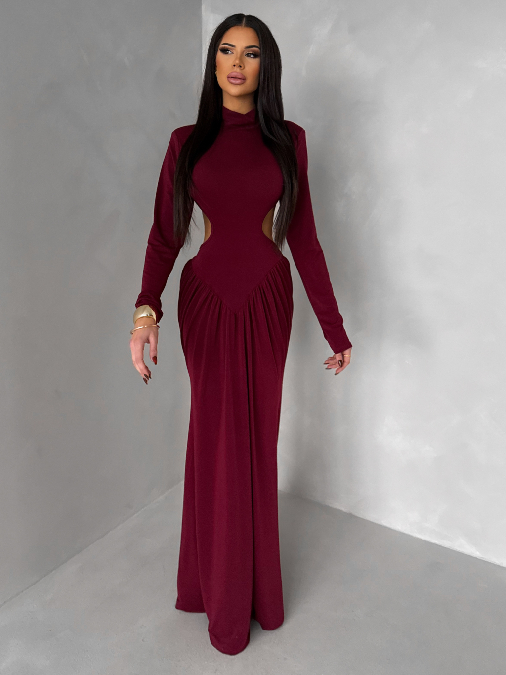 Bordové spoločenské dlhé šaty EVANIE s prestrihmi