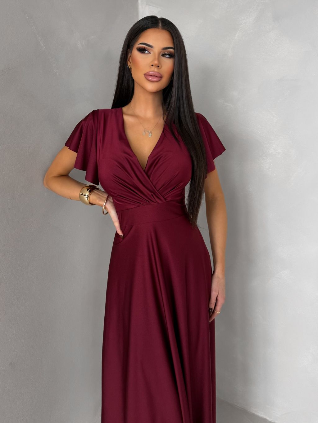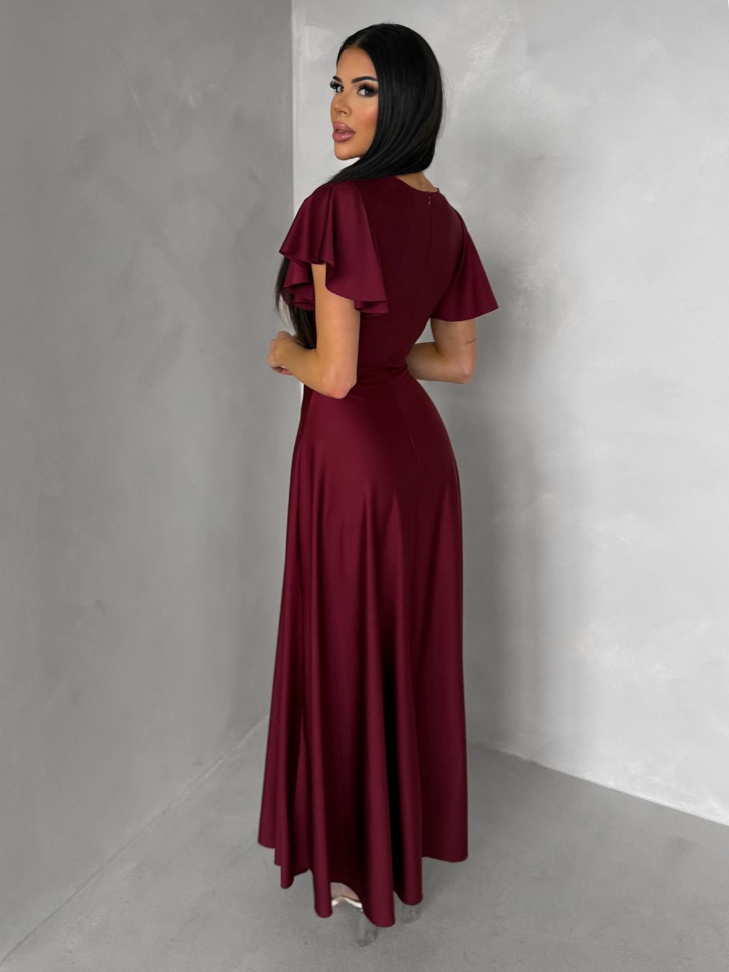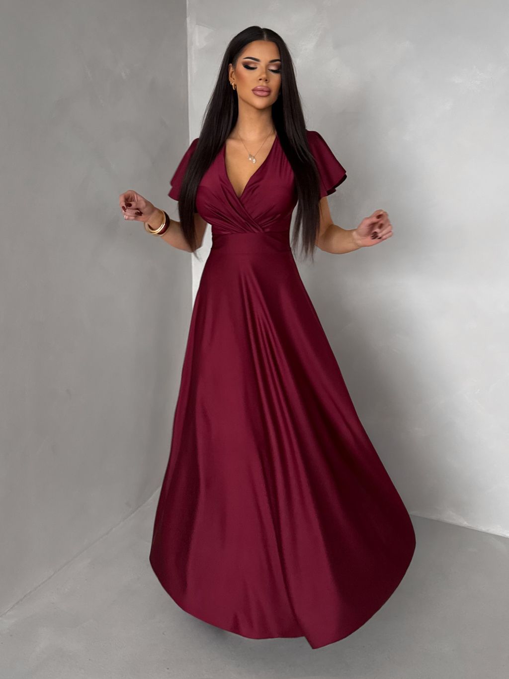 Bordové spoločenské jednoduché dlhé šaty JUNADIE