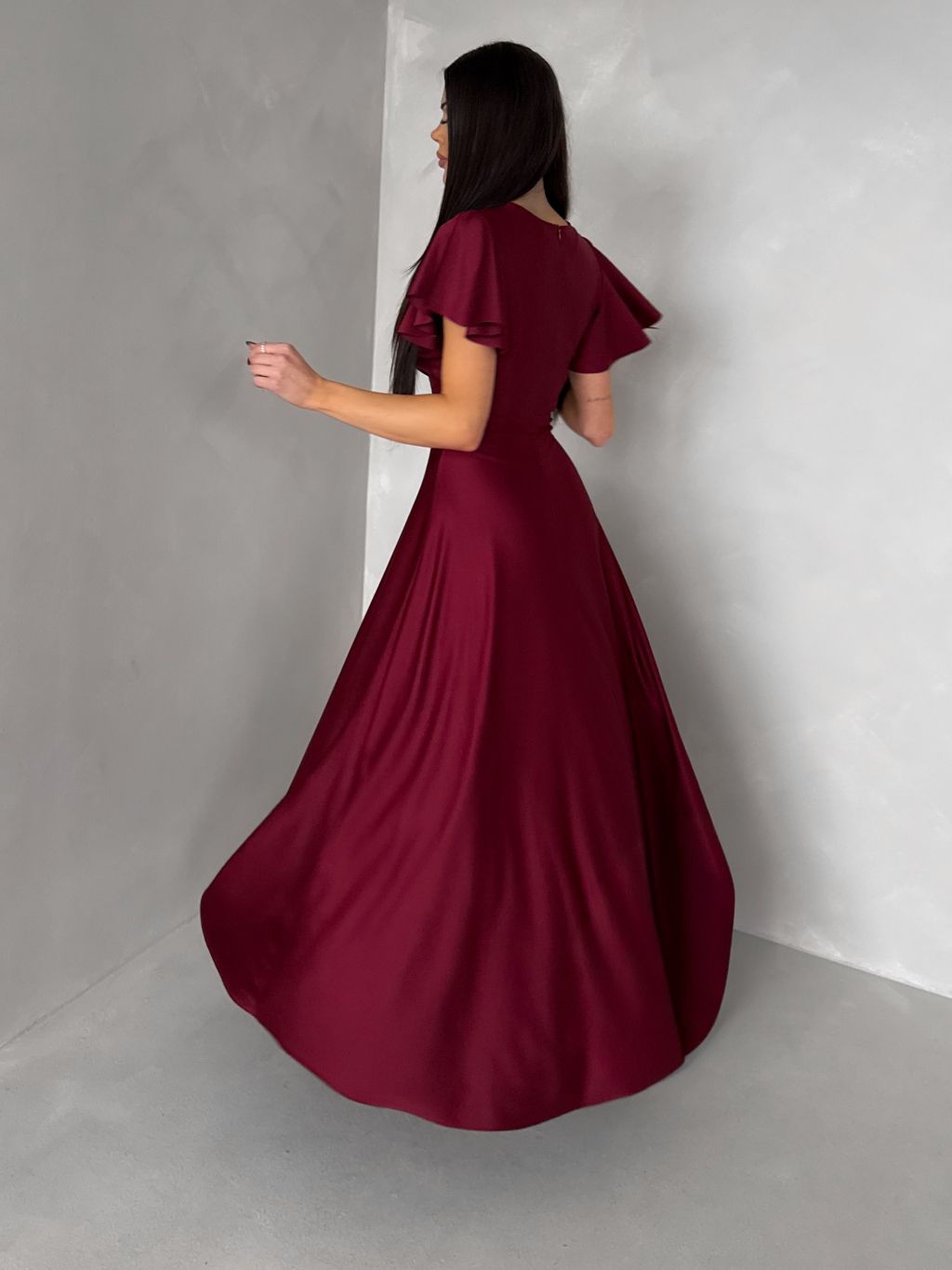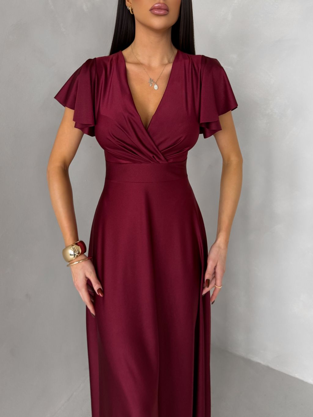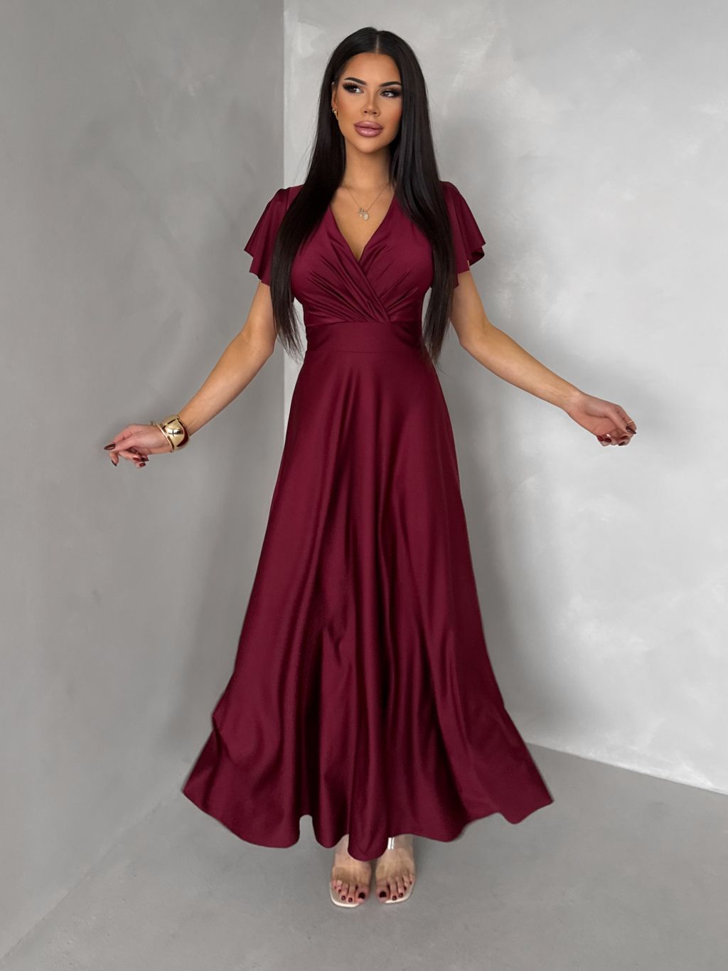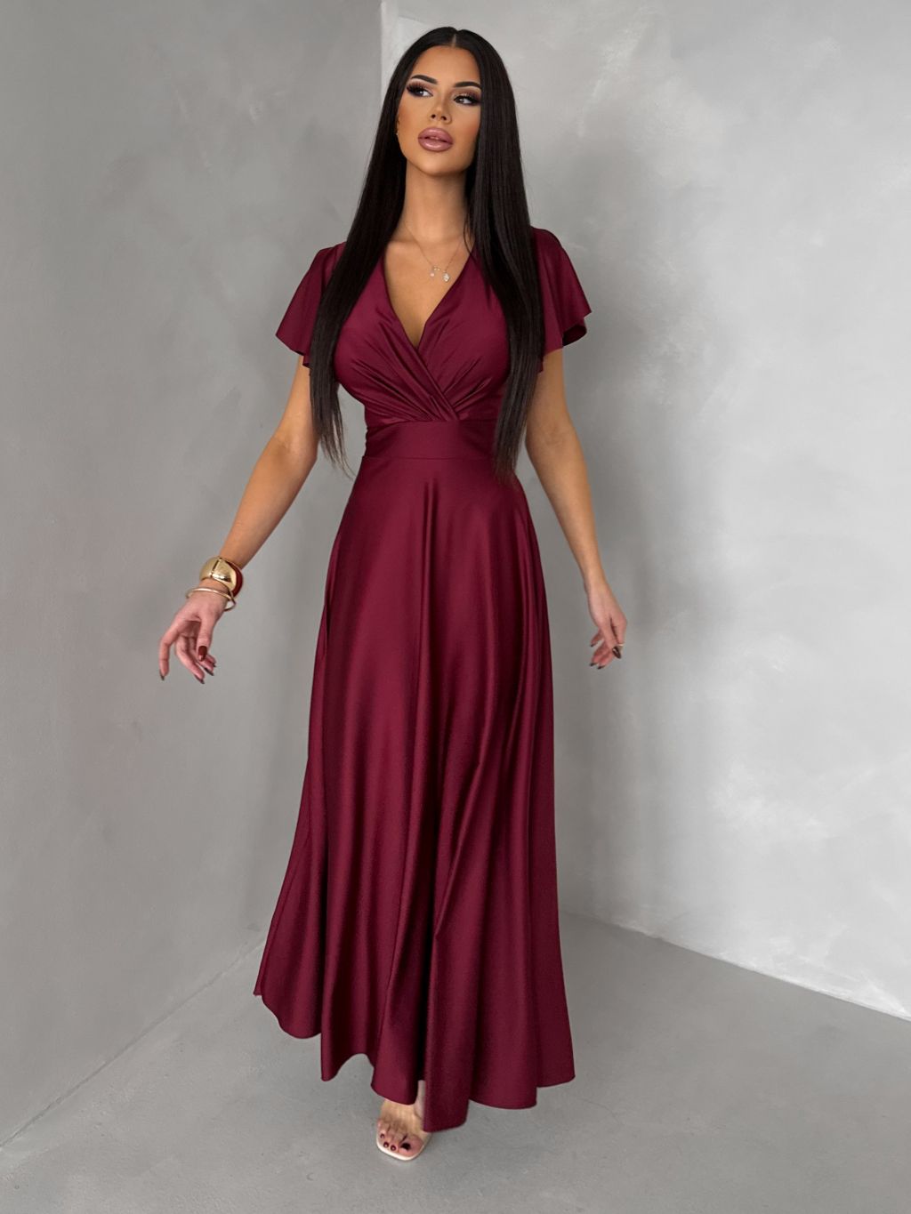 Bordové spoločenské jednoduché dlhé šaty JUNADIE