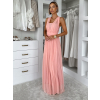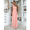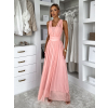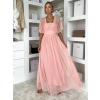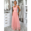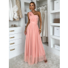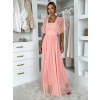 Broskyňové dlhé tylové plesové šaty OBSIYA s vlečkou