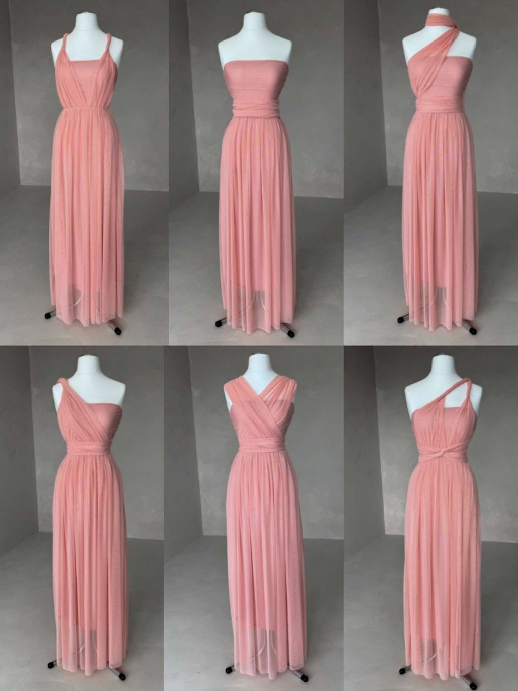 Elegantné tylové šaty s variabilným viazaním, ktoré umožňuje niekoľko spôsobov nosenia.
