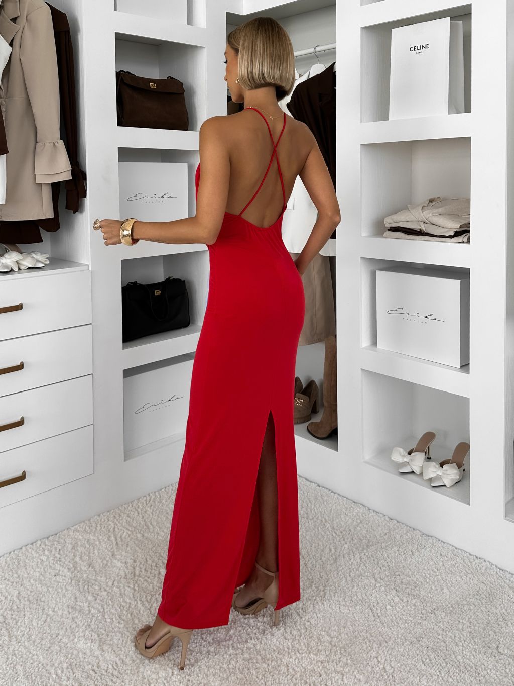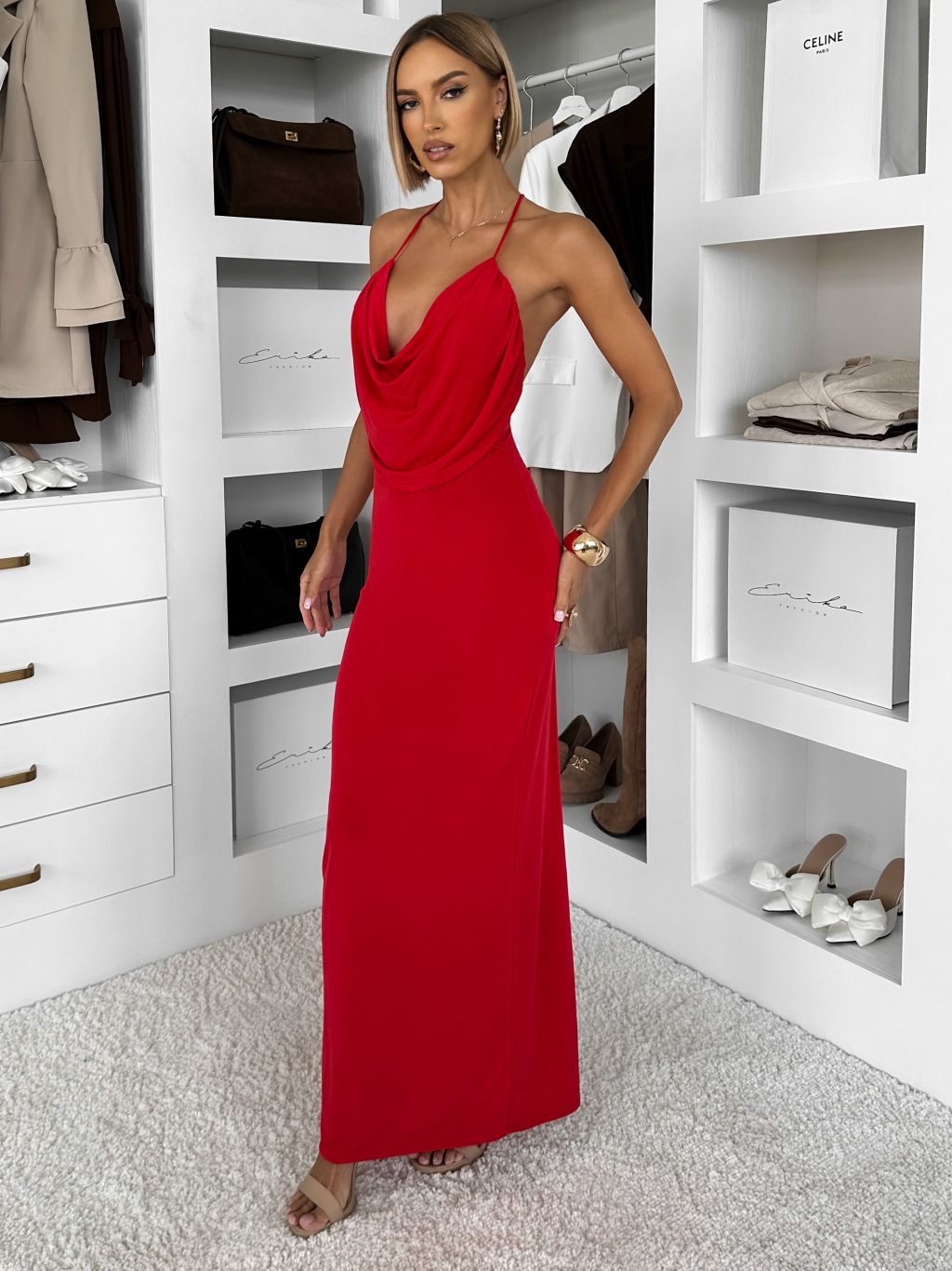 Červené dlhé priliehavé šaty OVRIDA