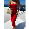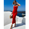 Červené dlhé priliehavé šaty TULLIA na ramienka