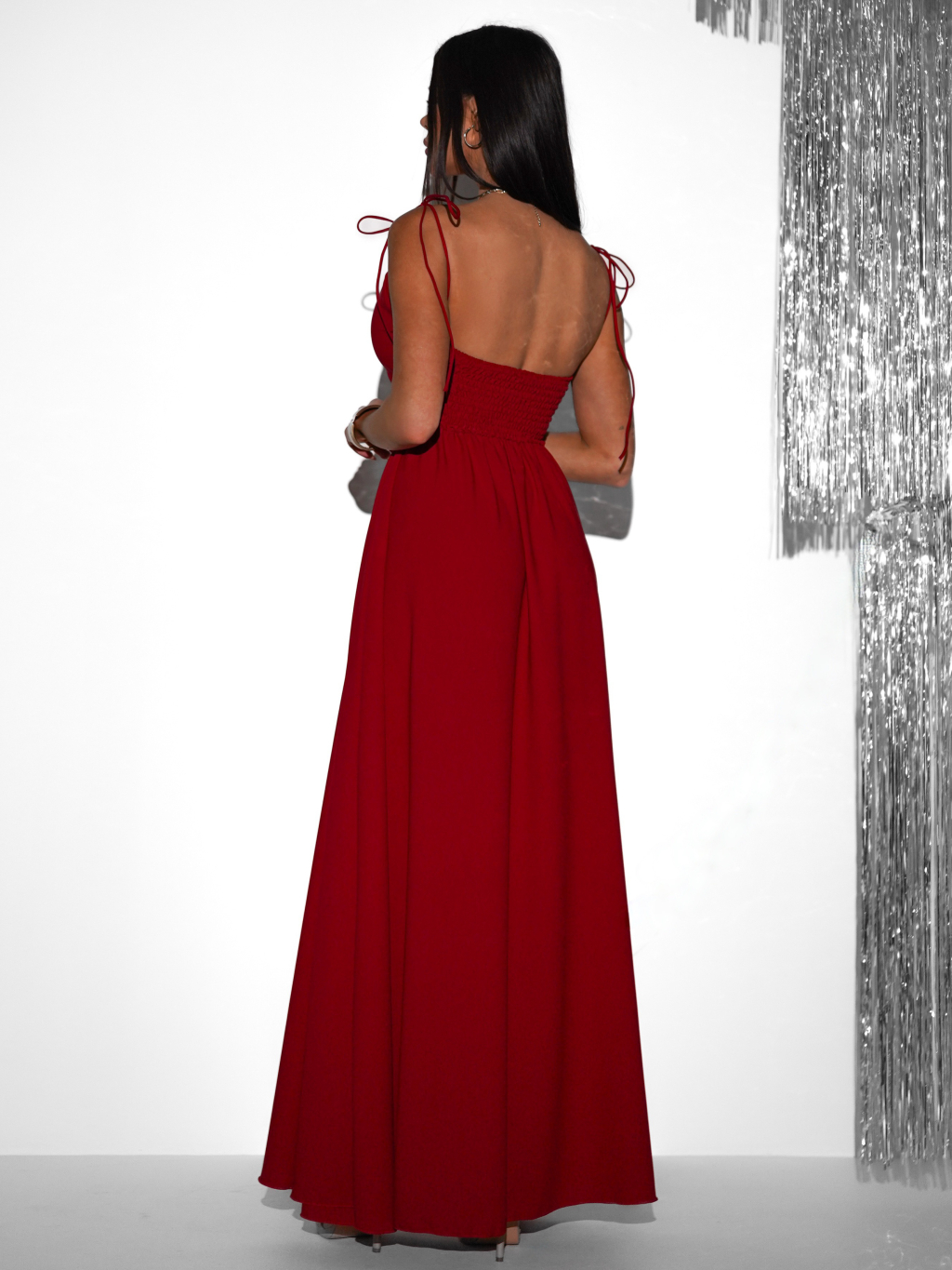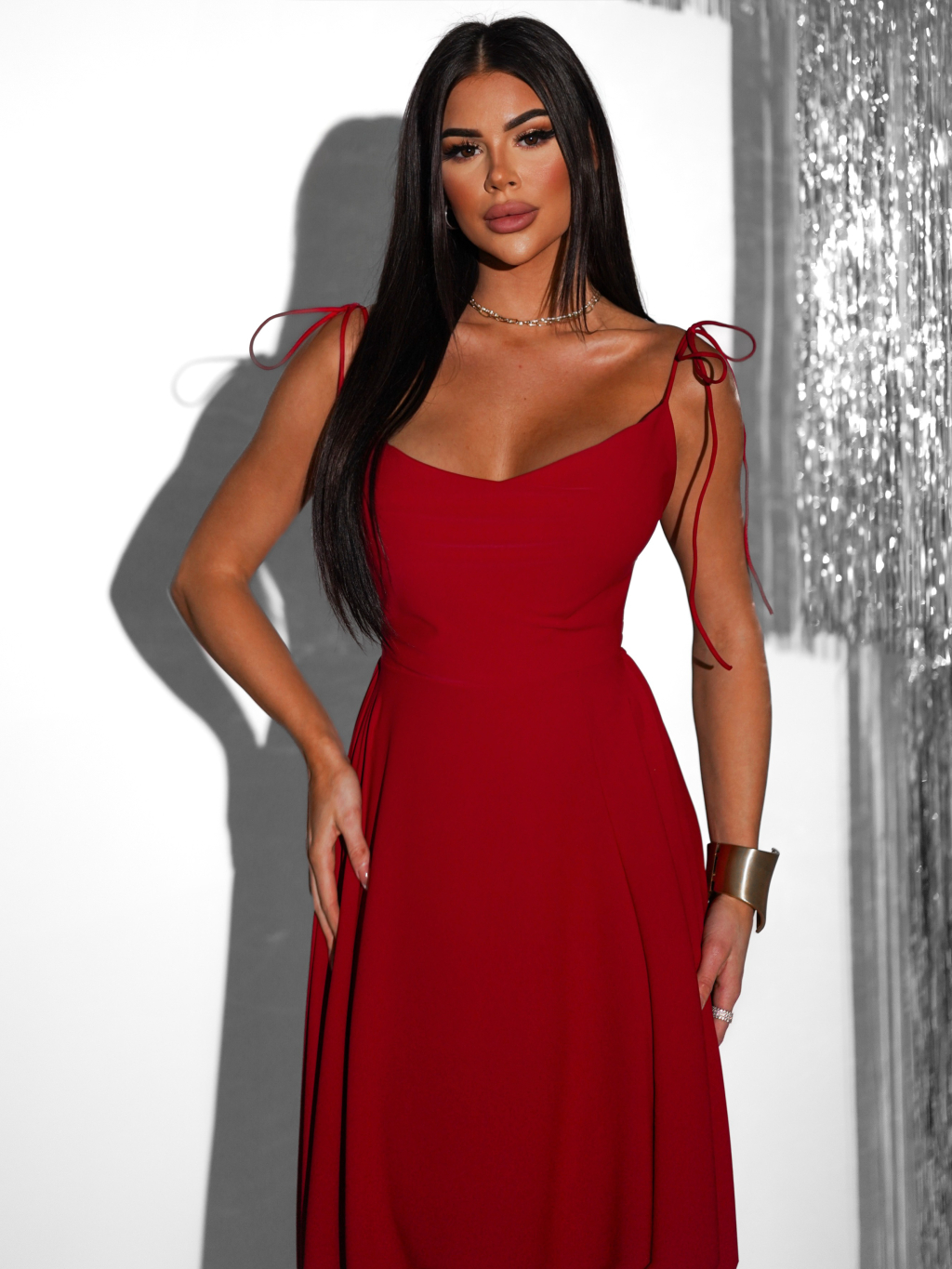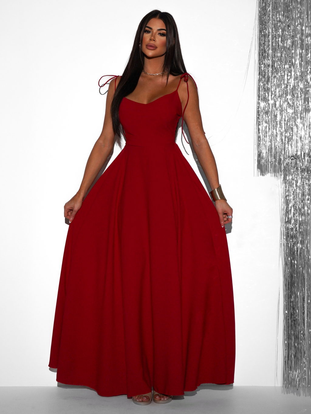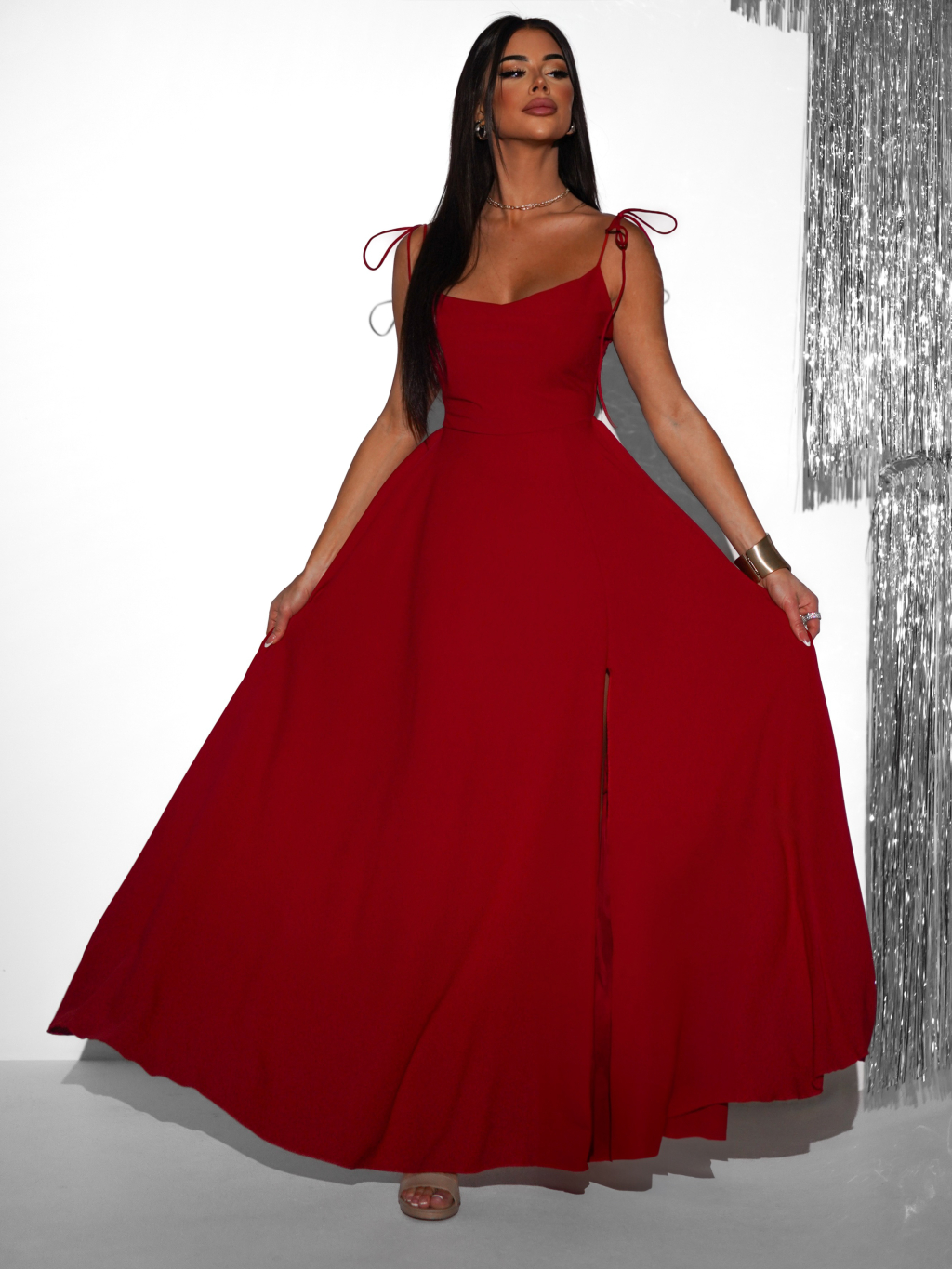 Červené dlhé spoločenské šaty LERDISEL na ramienka