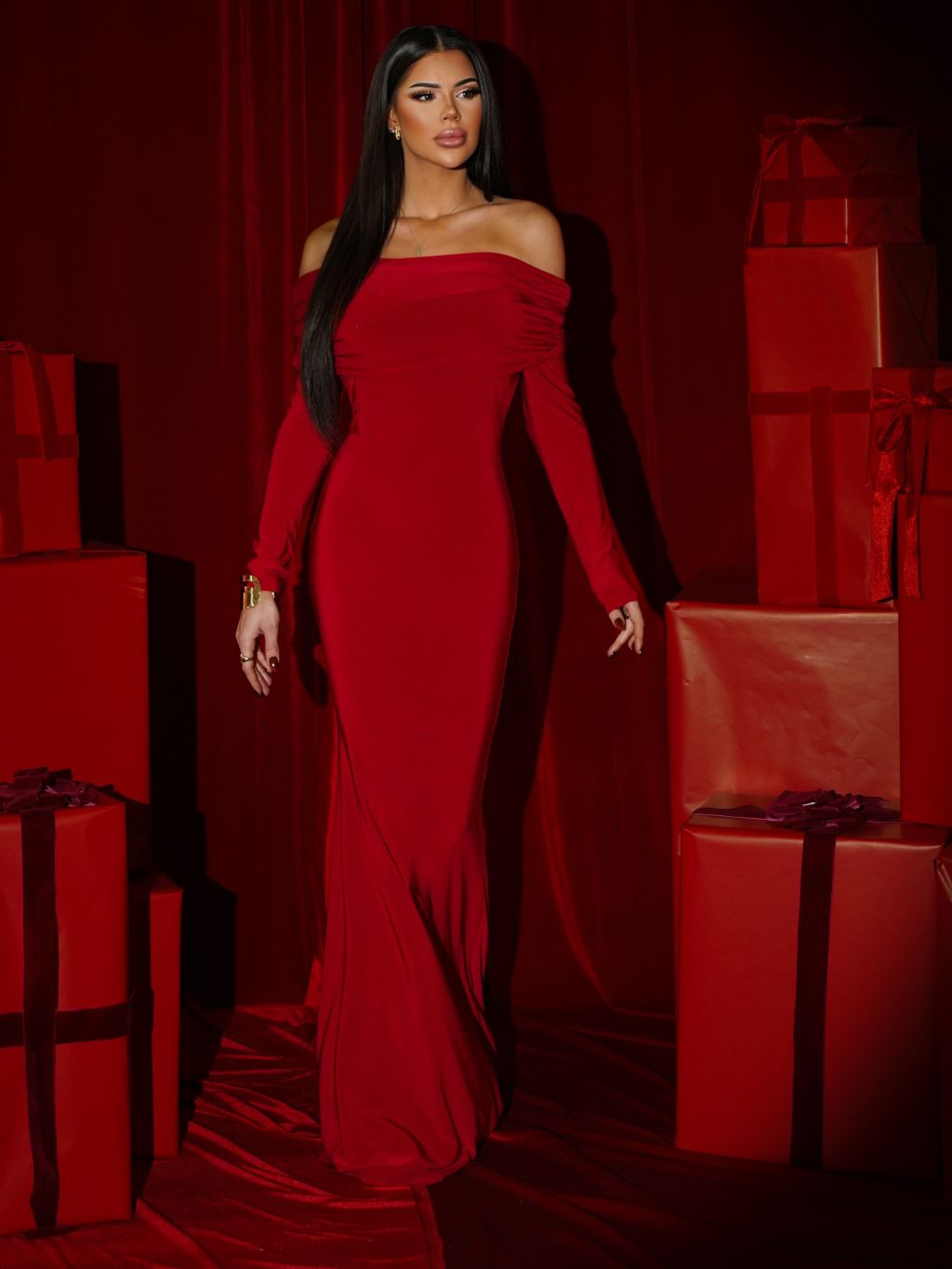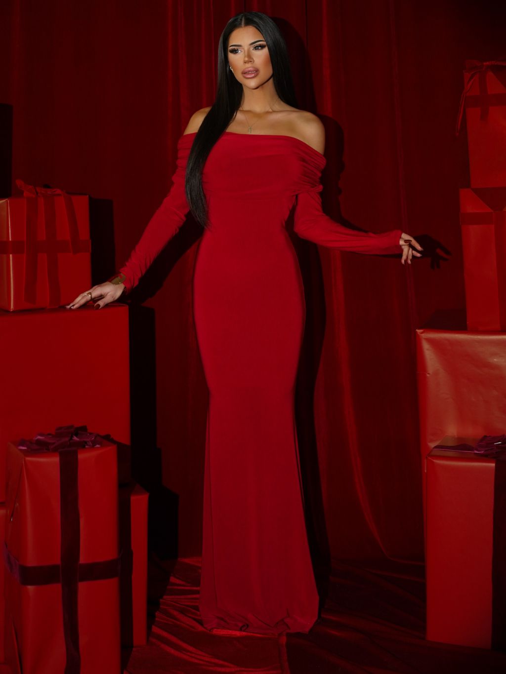 Červené dlhé spoločenské šaty SYTRENO so spadnutými ramenami