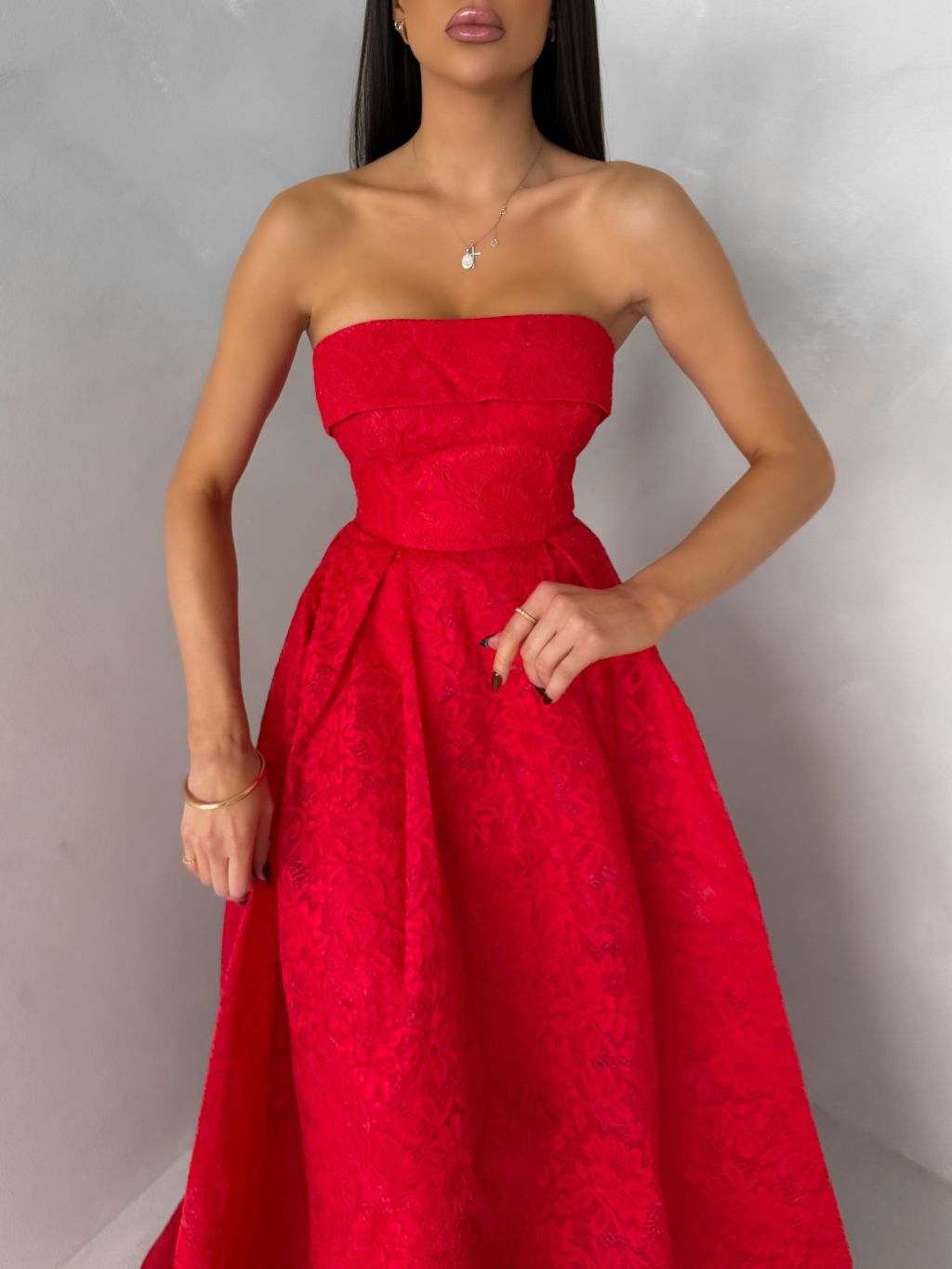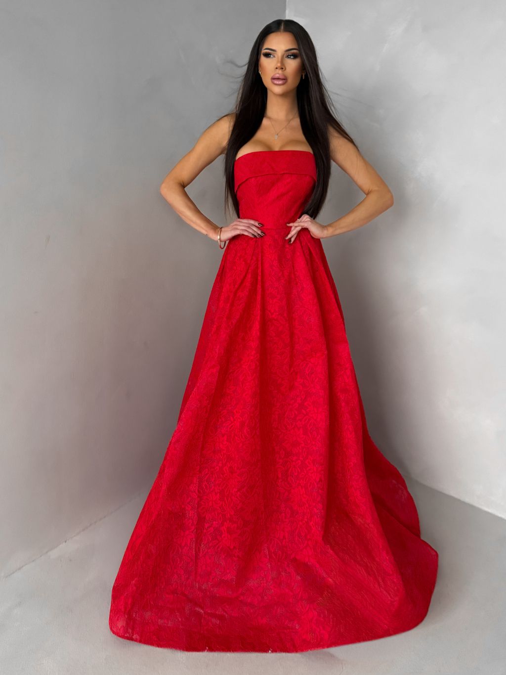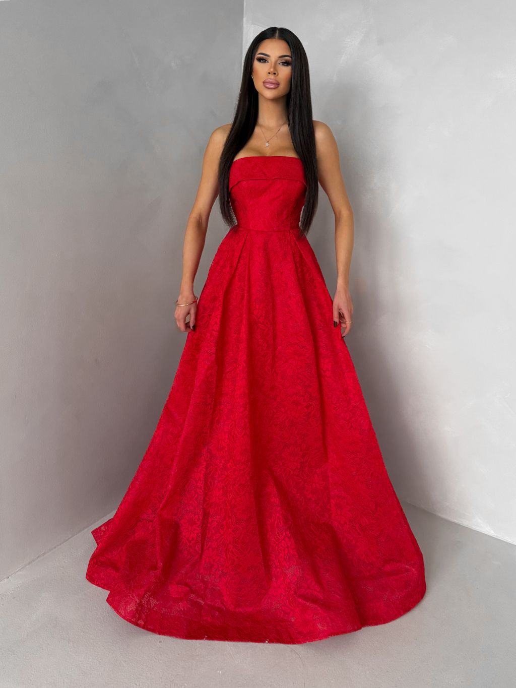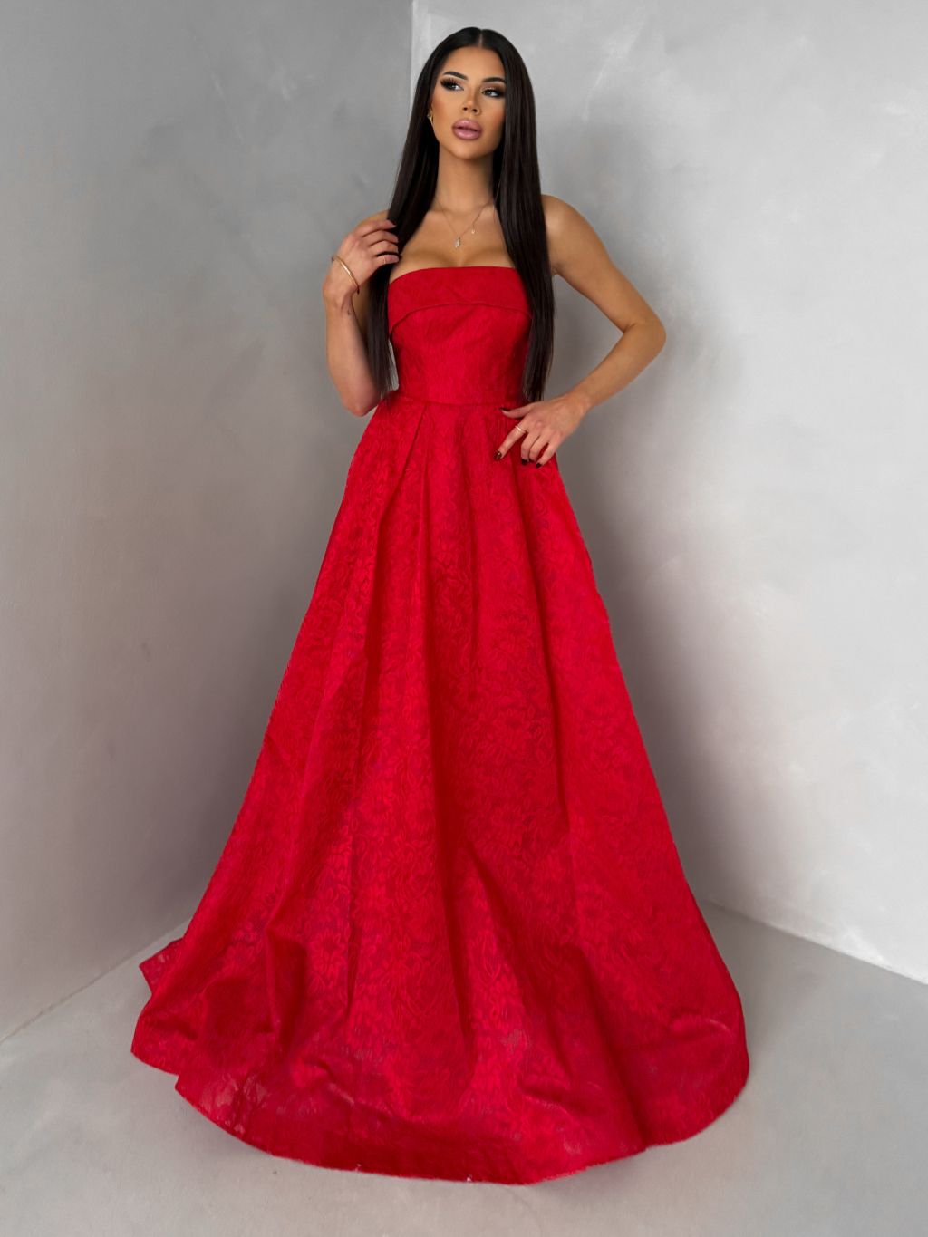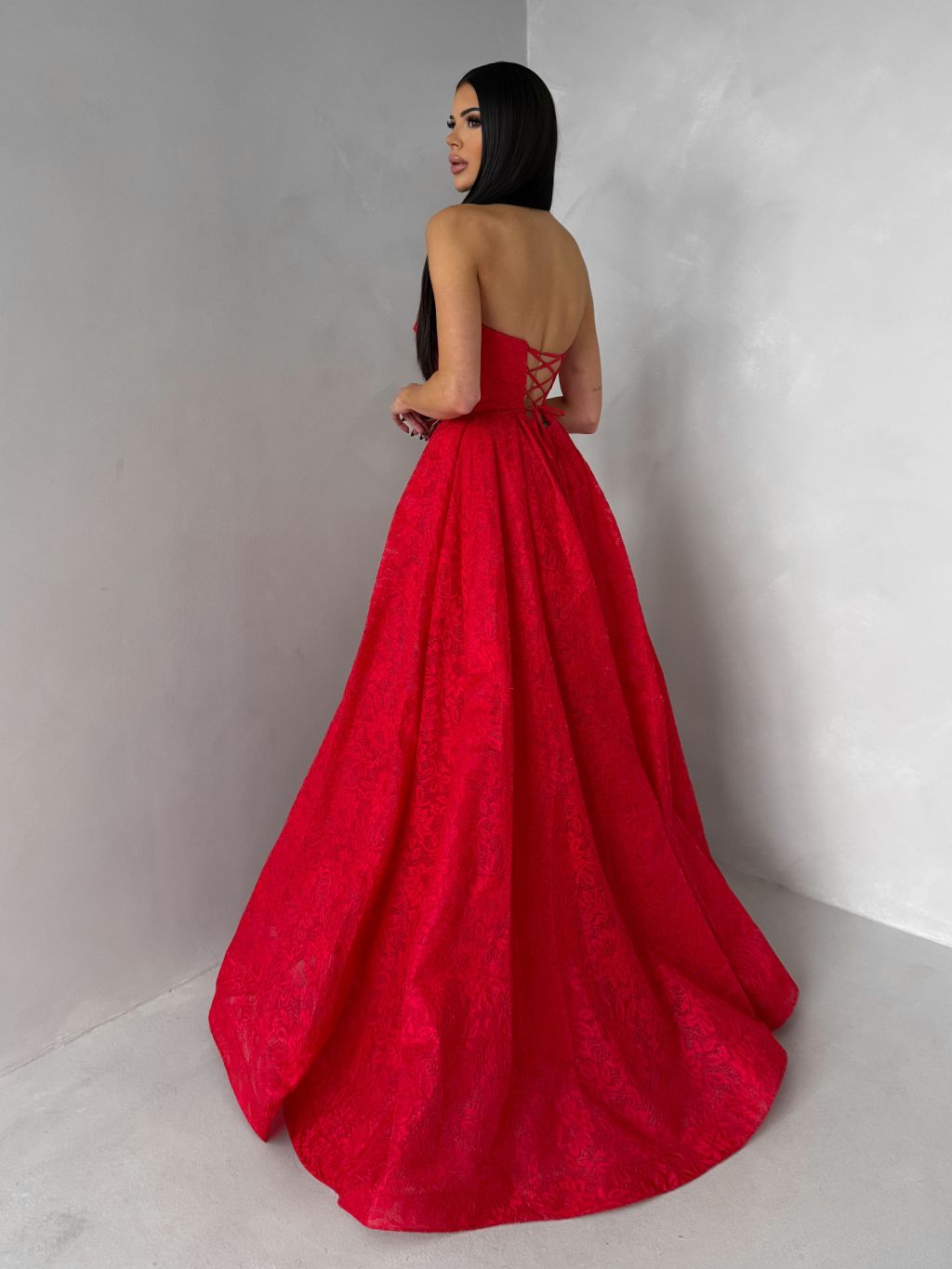 Červené plesové šnurovacie spoločenské šaty VIANORA