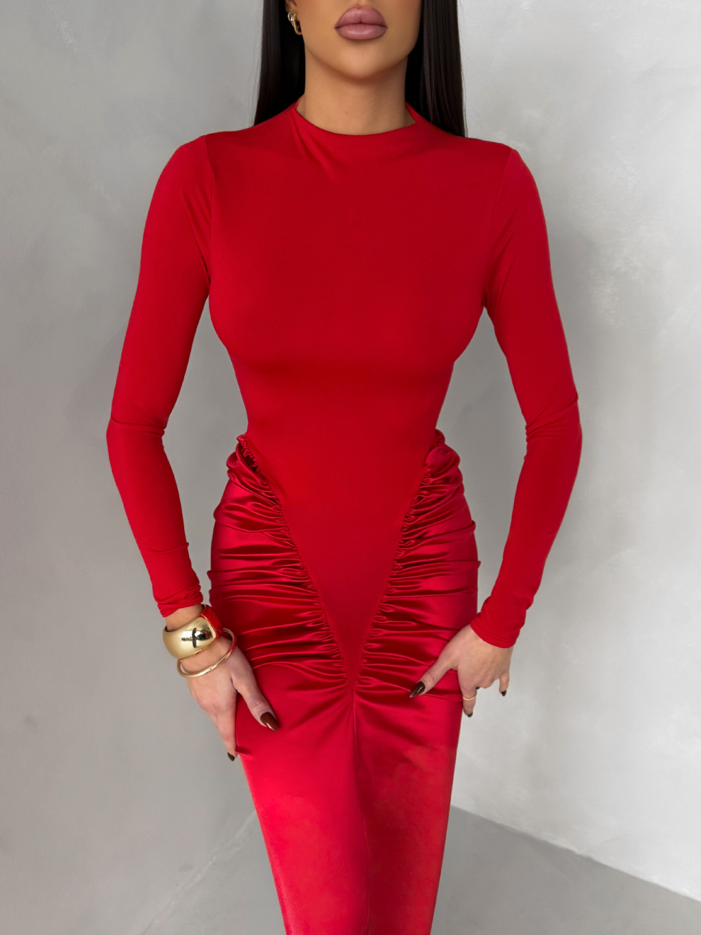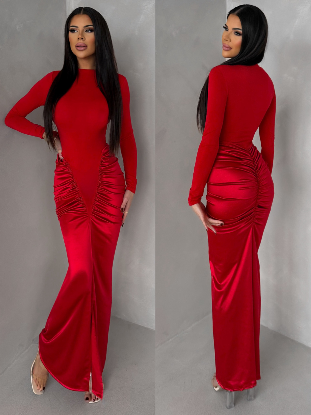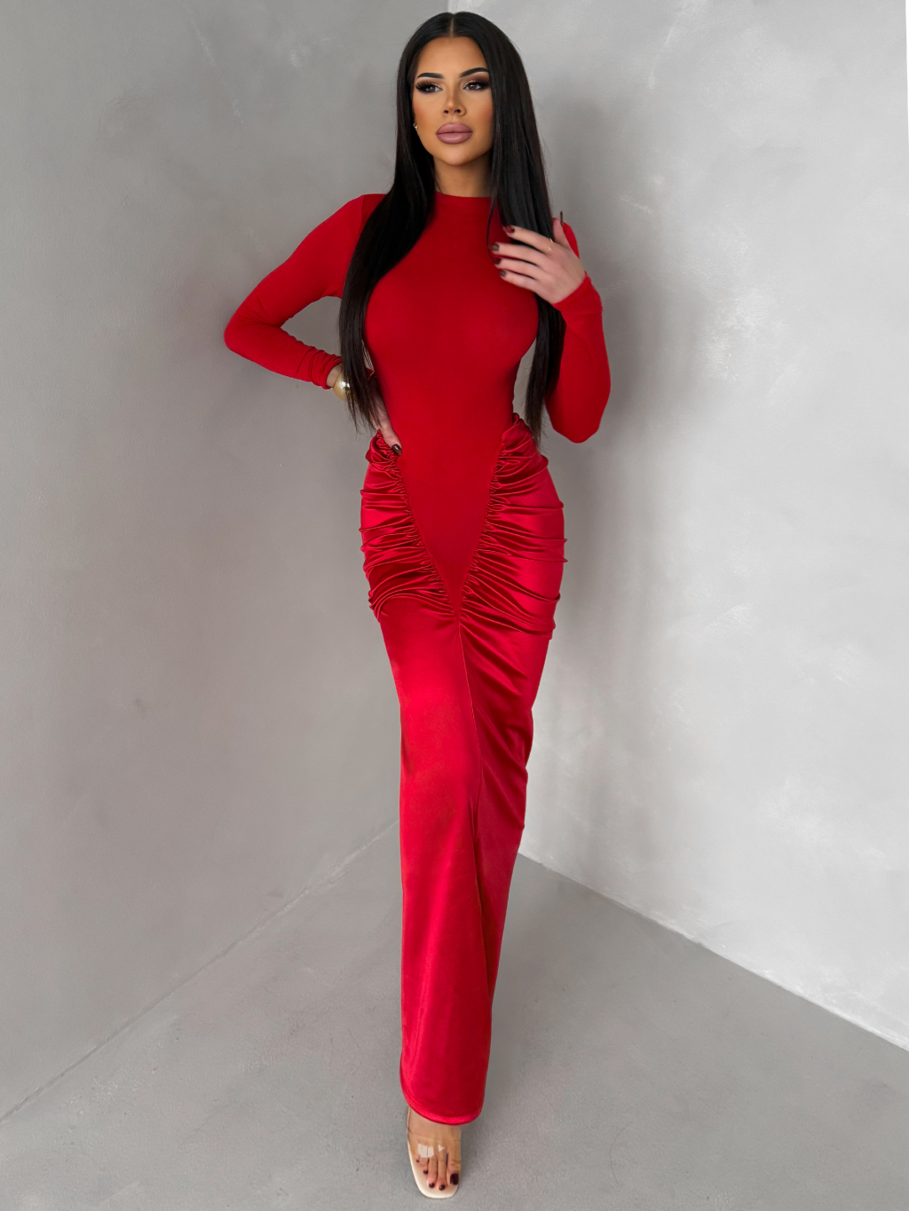 Červené spoločenské dlhé šaty SORAYA s dlhým rukávom