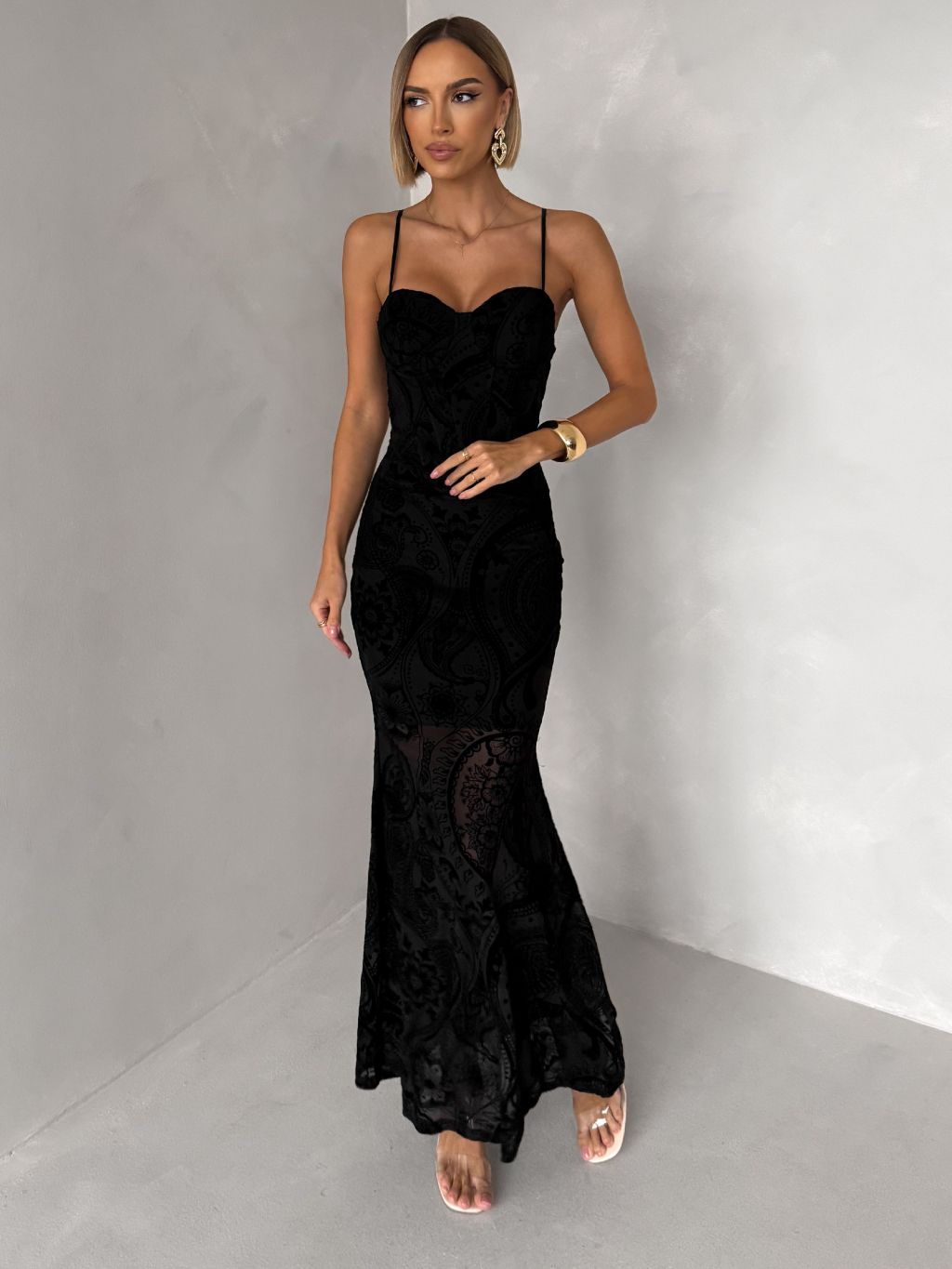 Čierne dlhé spoločenské šaty AVENZIA na ramienka