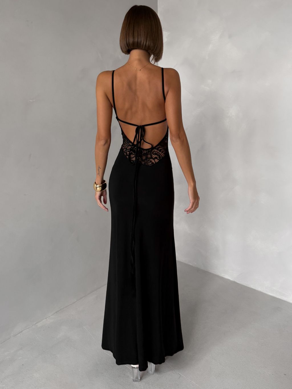 Čierne dlhé spoločenské šaty VORIMA s čipkou