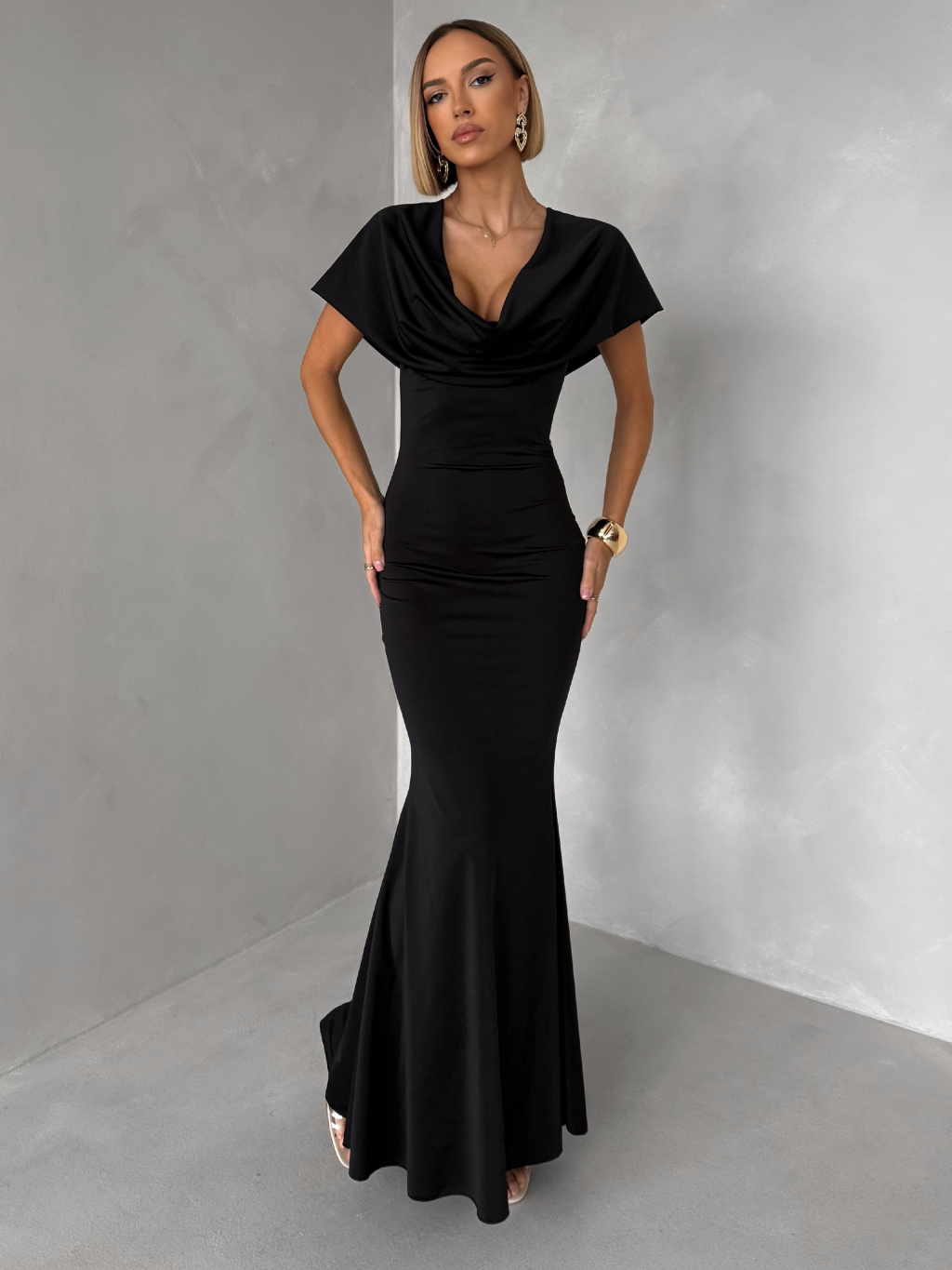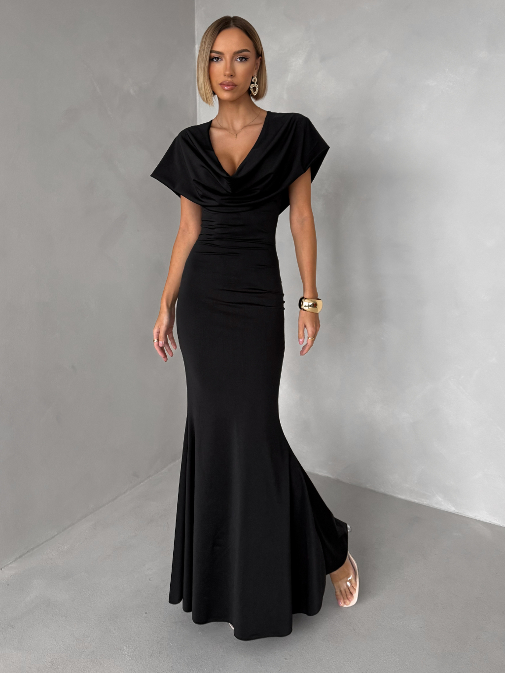 Čierne elegantné dlhé variabilné šaty VELIQUE