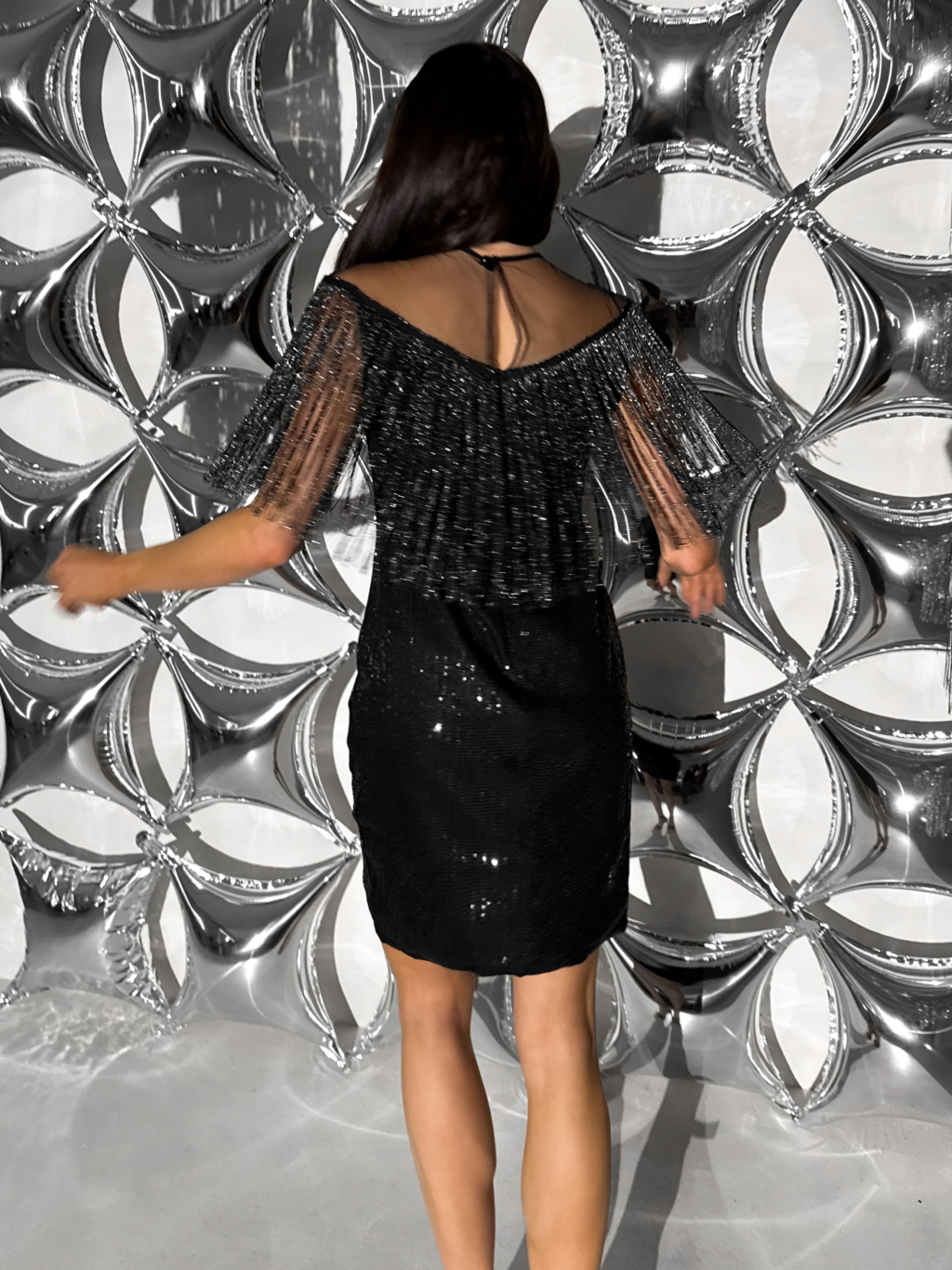 Čierne elegantné flitrované šaty QUENIDA so strapcami