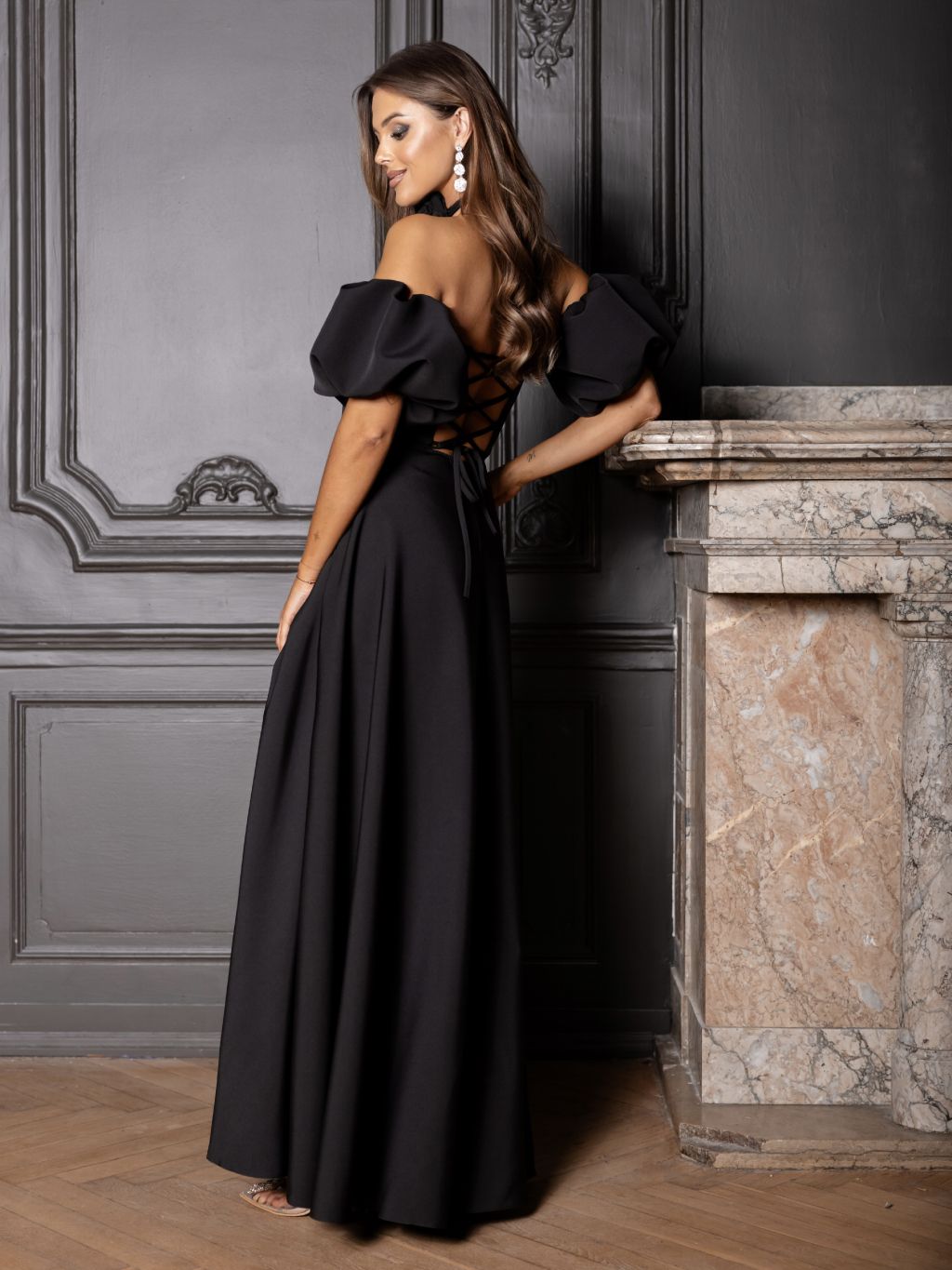 Čierne elegantné luxusné dlhé šaty LAVIRA s rukávmi