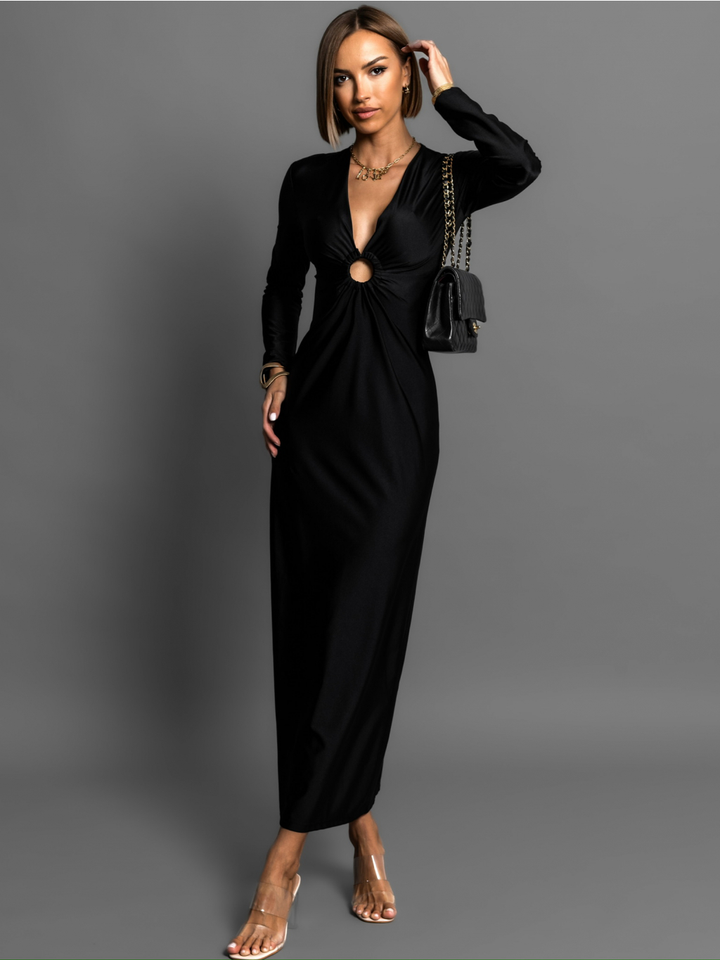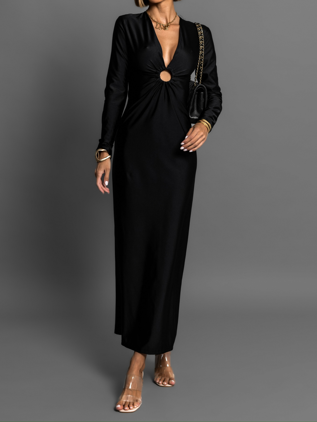 Čierne elegantné šaty MIKORA s prestrihom
