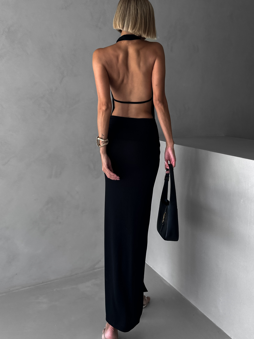 Čierne elegantné šaty RHIANY s odhaleným chrbtom