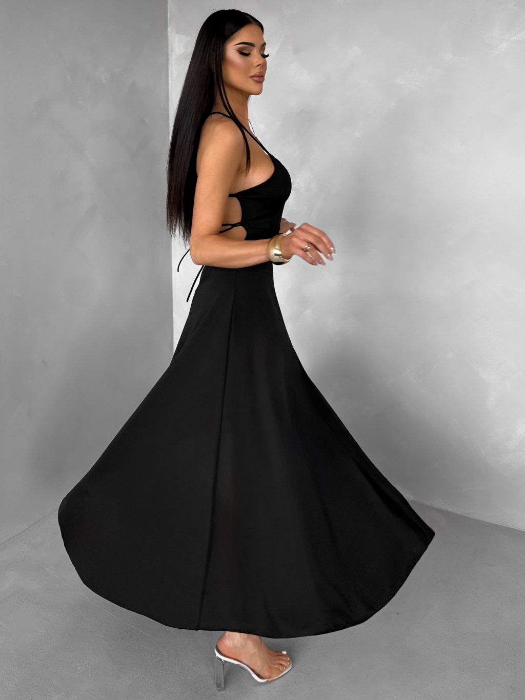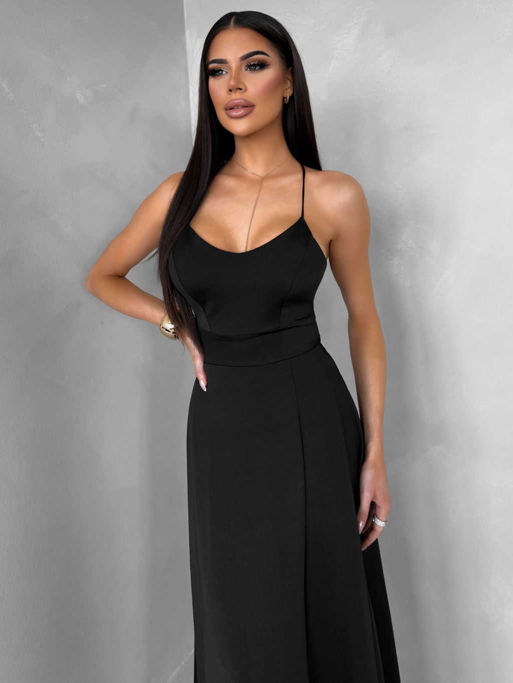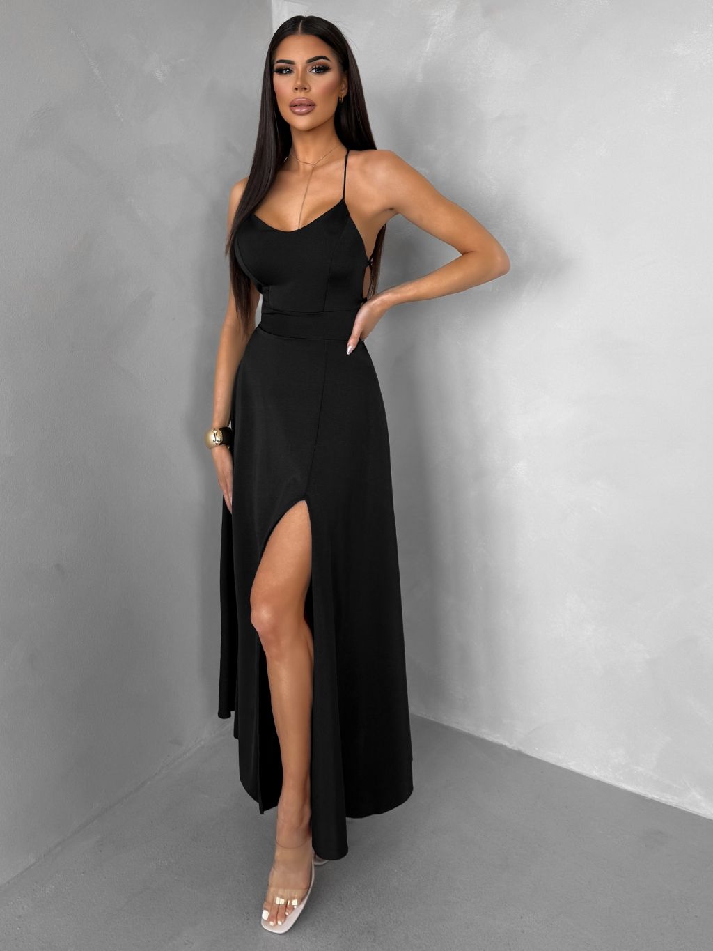 Čierne saténové elegantné šaty SIMUEL so šnurovaním