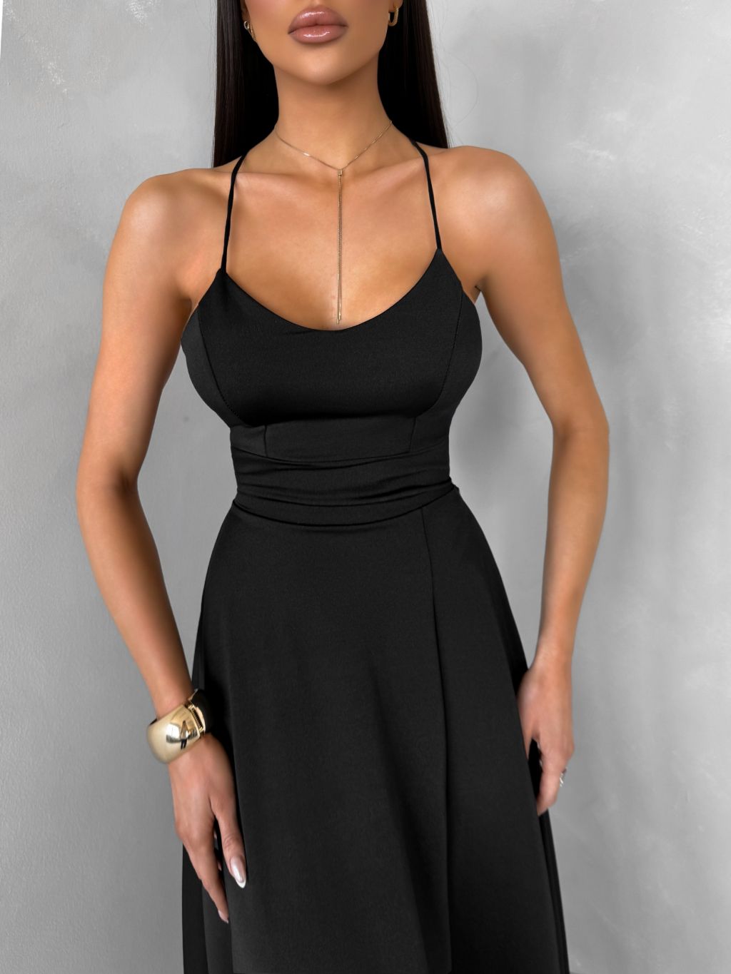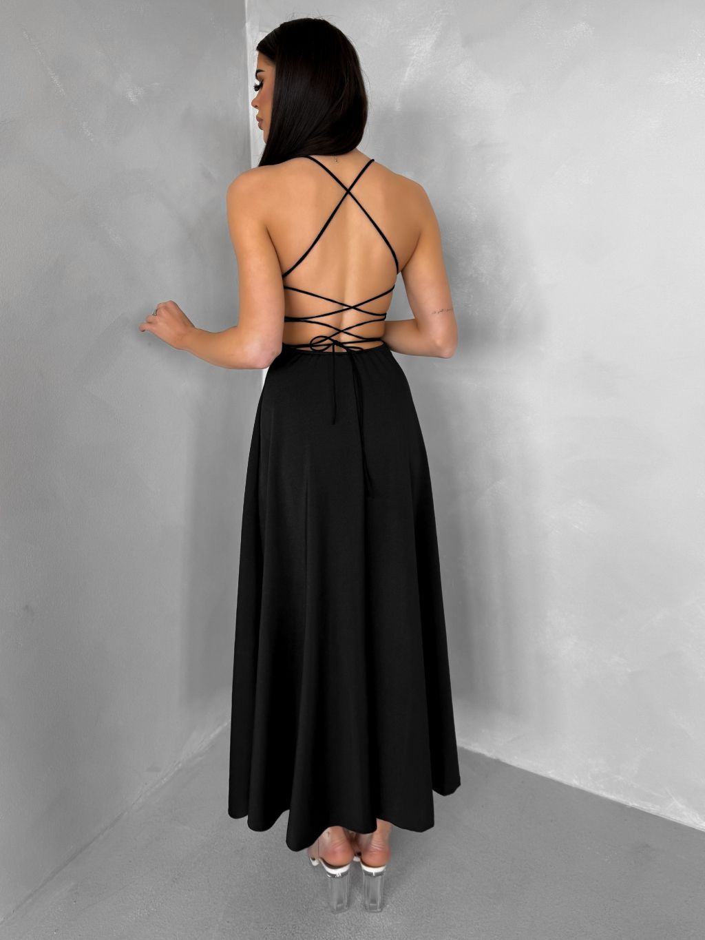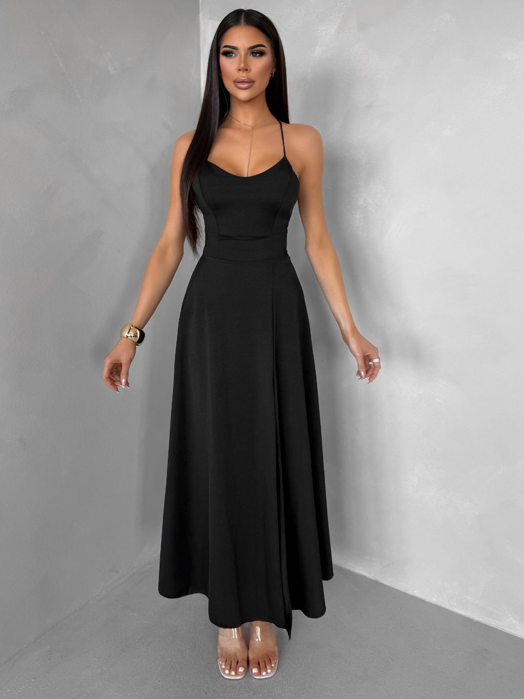 Čierne saténové elegantné šaty SIMUEL so šnurovaním