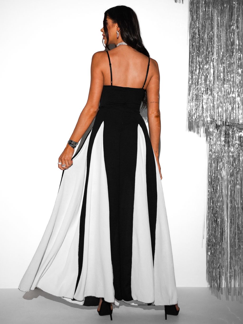 Čierne splývavé dlhé šaty ELLKYE
