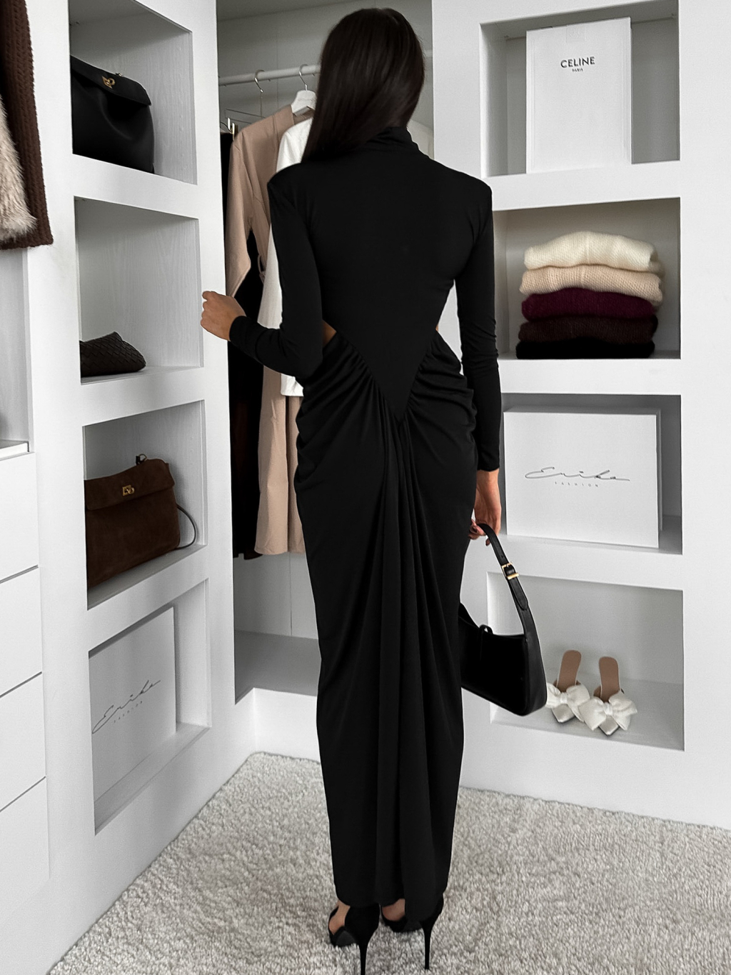 Čierne spoločenské dlhé šaty ESTAVION s prestrihmi