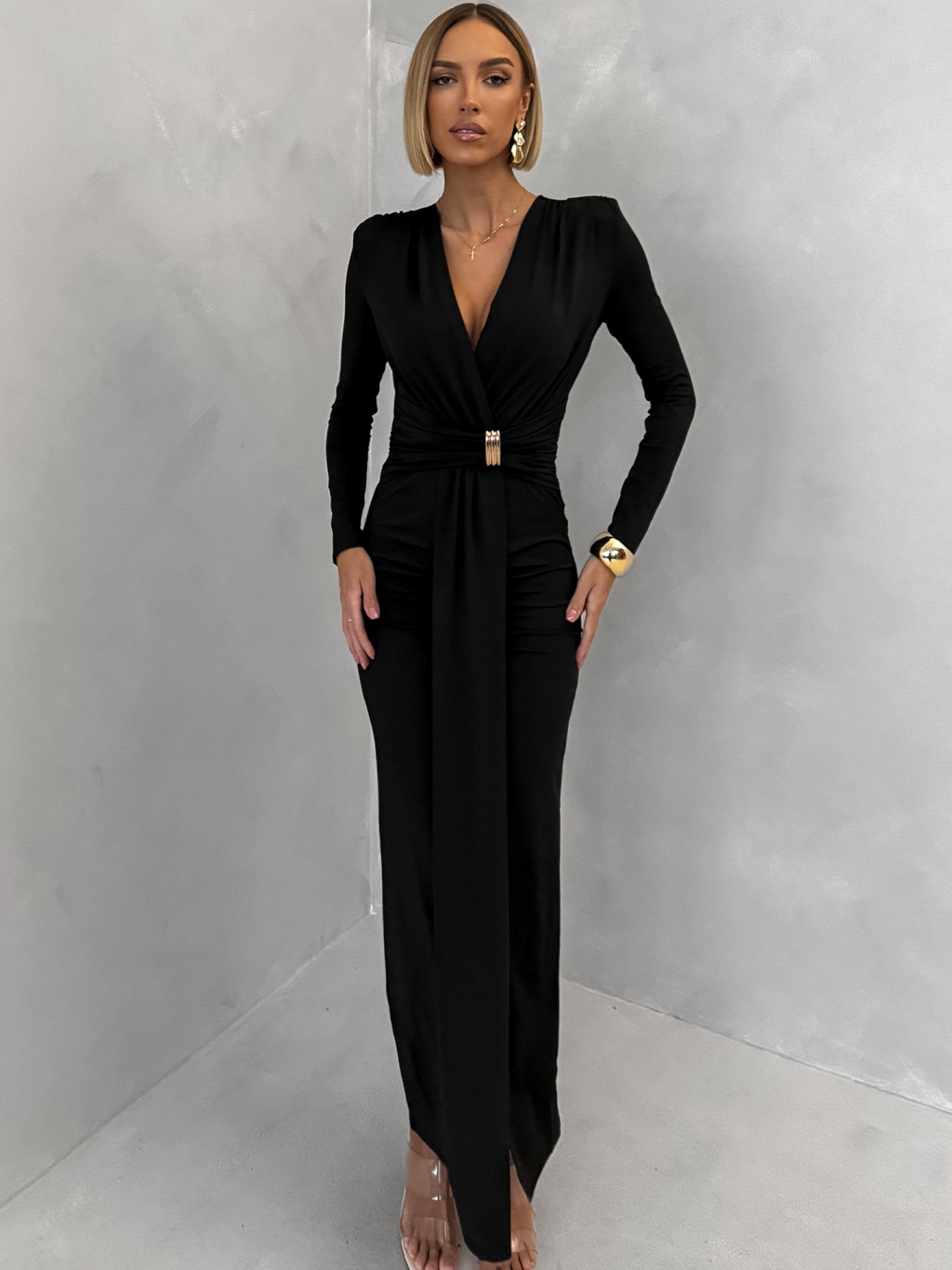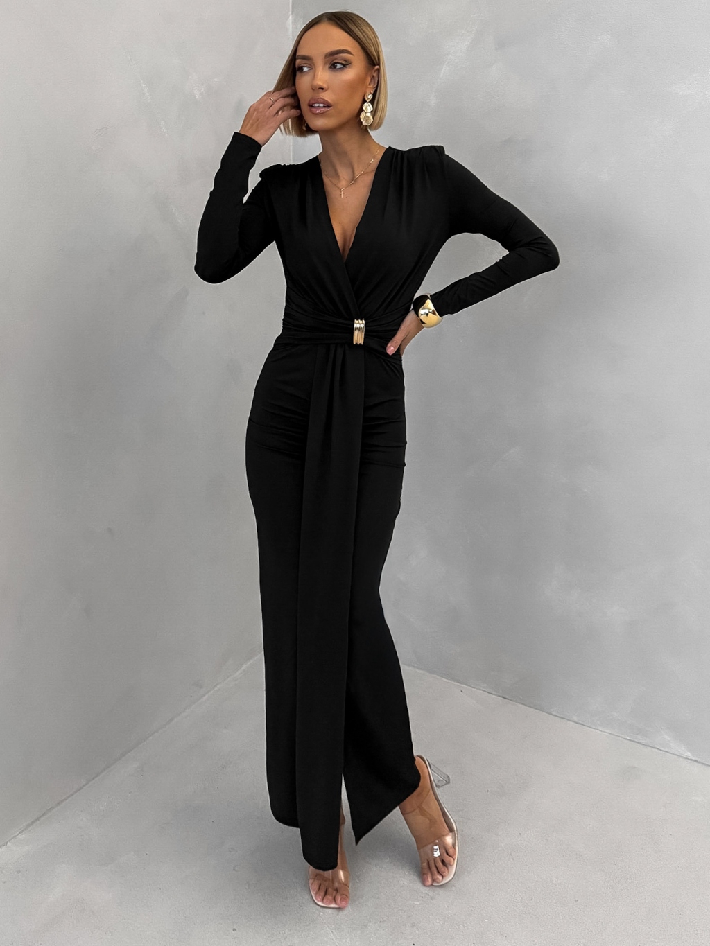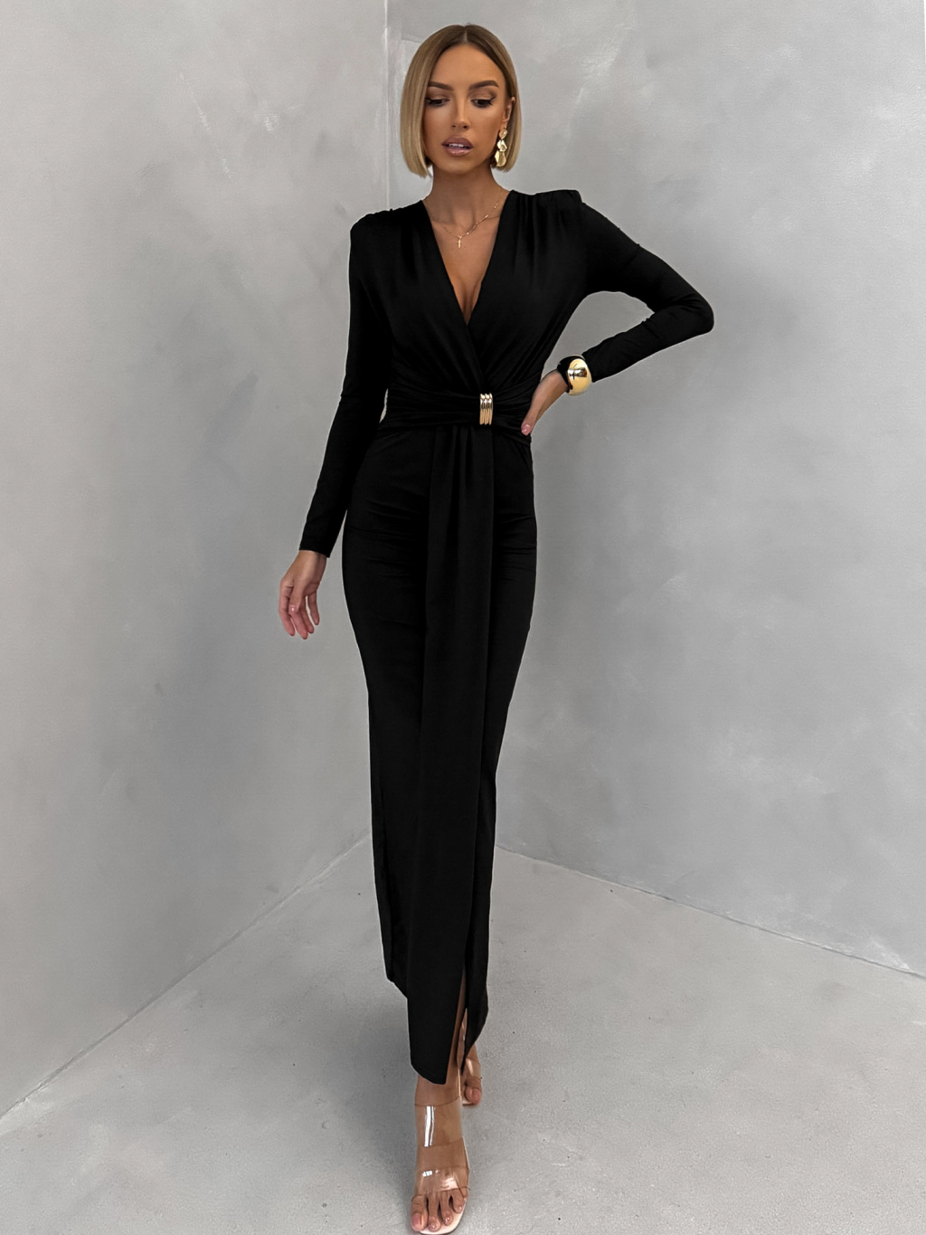 Čierne spoločenské dlhé šaty FAYLORI s výstrihom