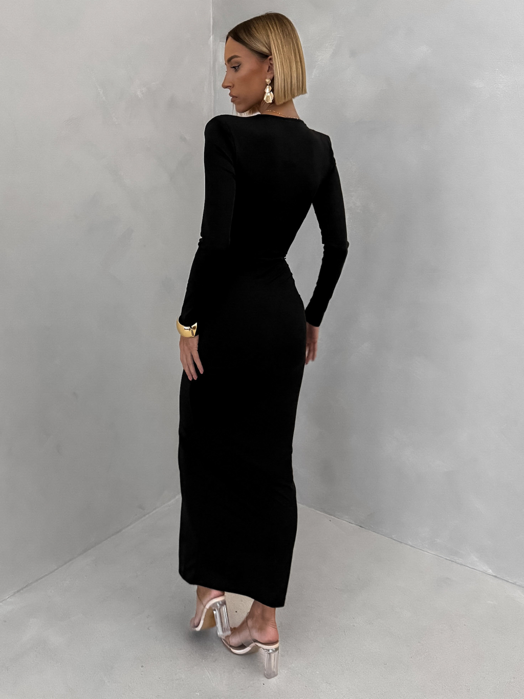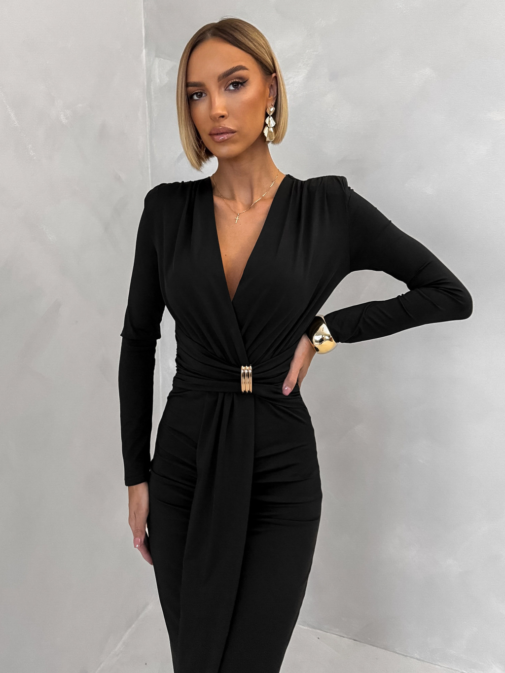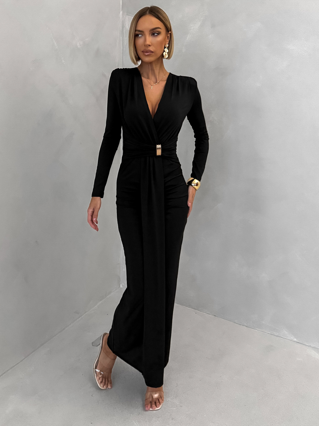 Čierne spoločenské dlhé šaty FAYLORI s výstrihom