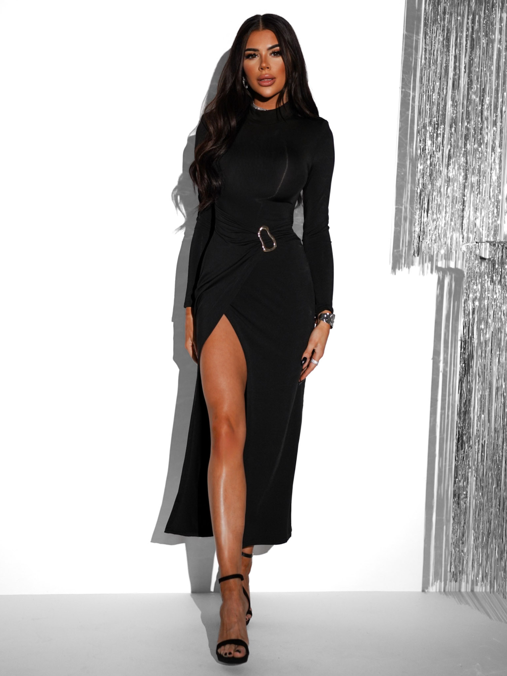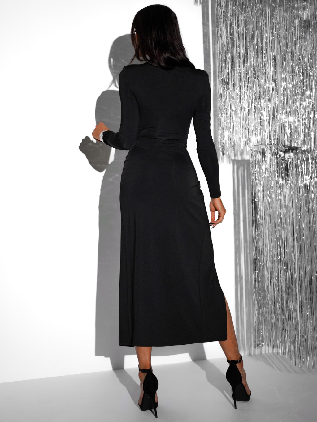 Čierne spoločenské dlhé šaty KAJSA so sponou