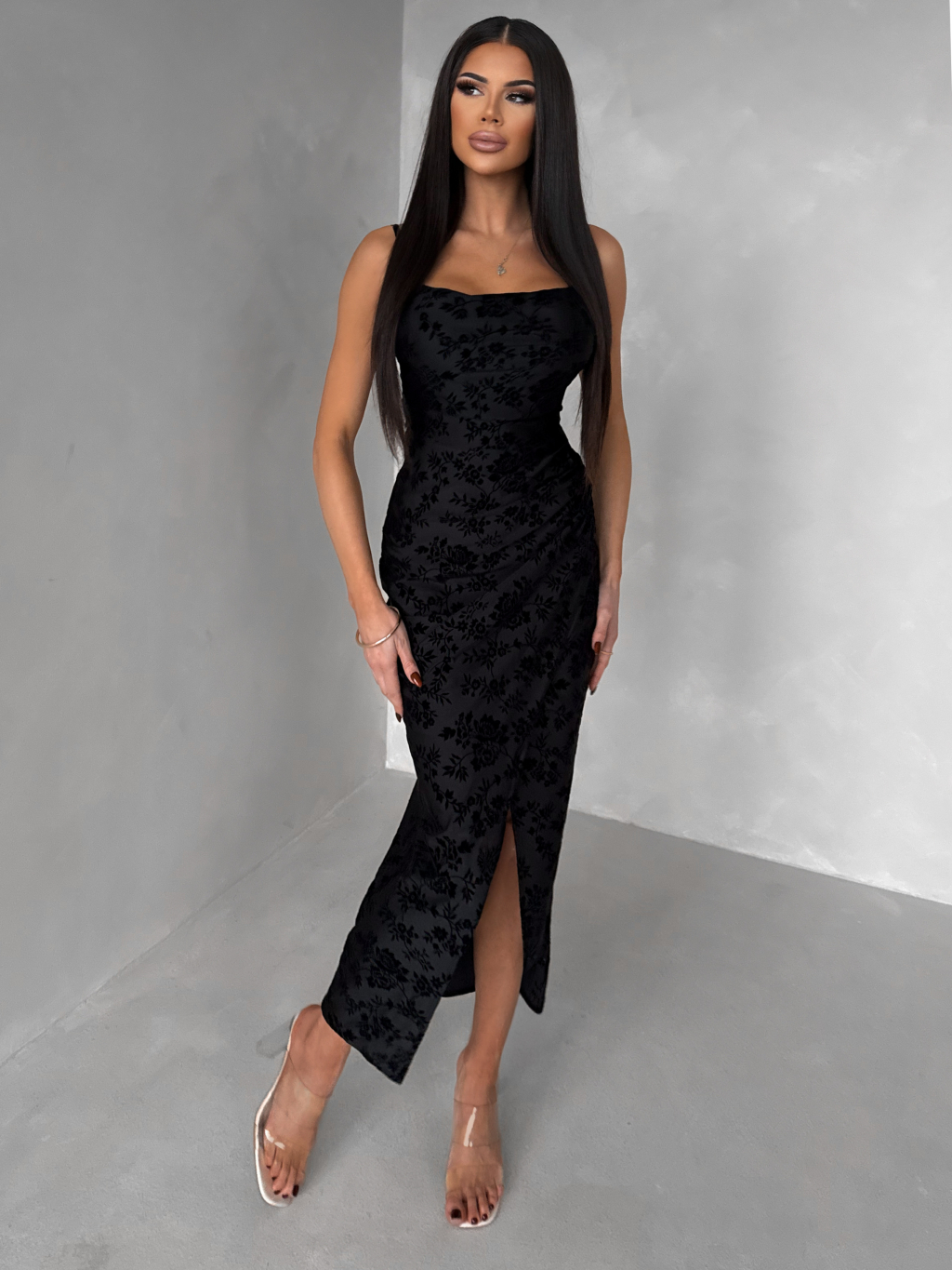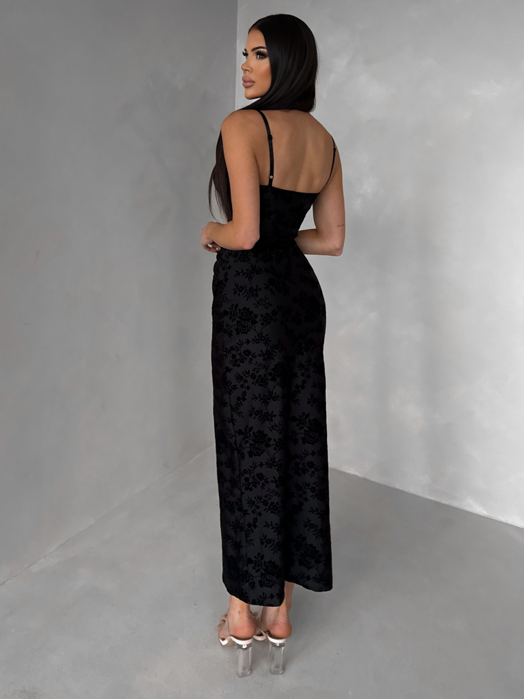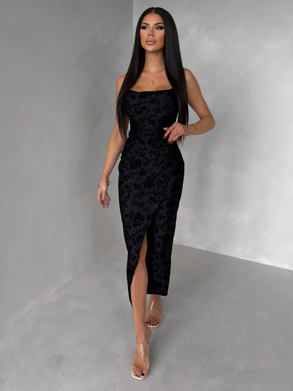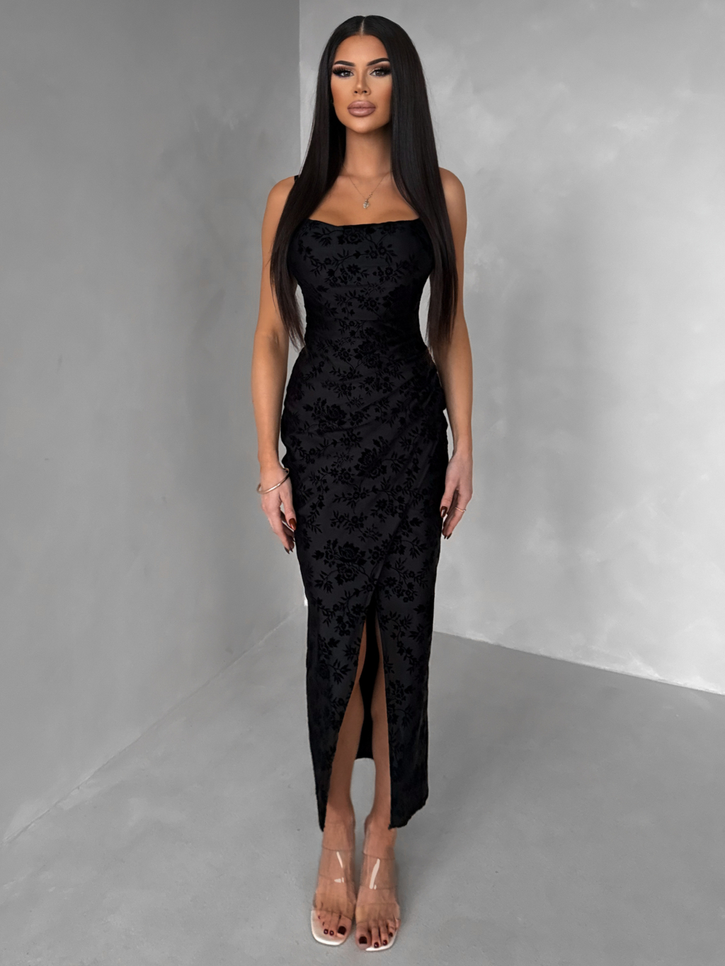 Čierne spoločenské dlhé šaty KIRETTA s rázporkom