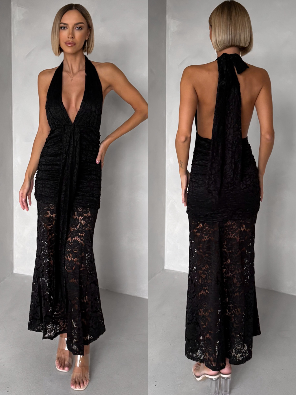 Čierne spoločenské krajkové dlhé šaty ZERULON