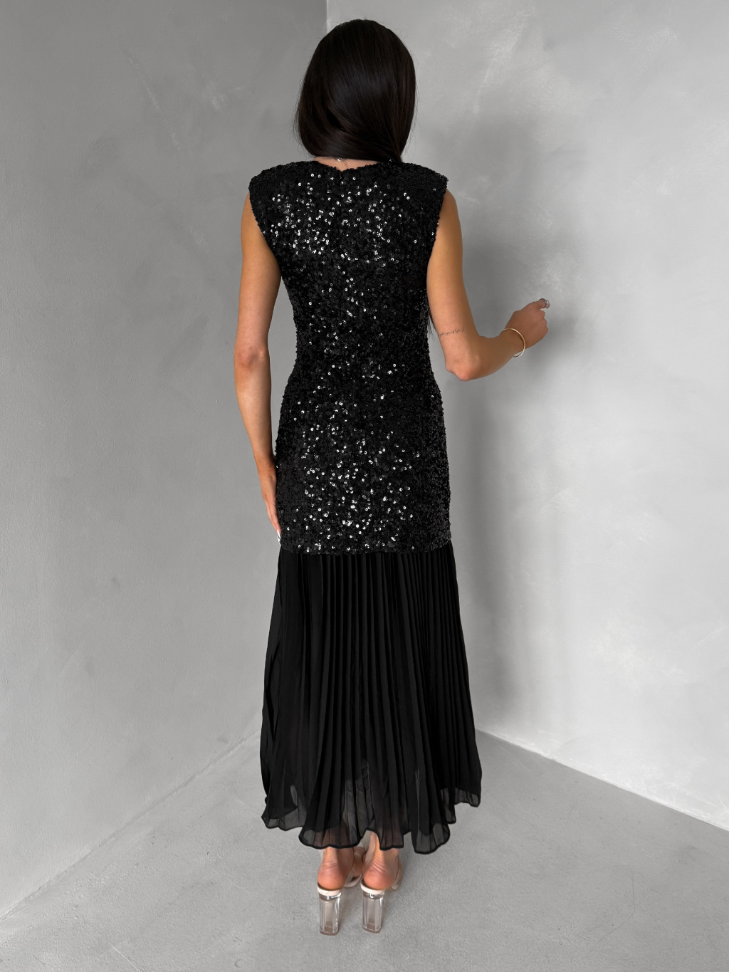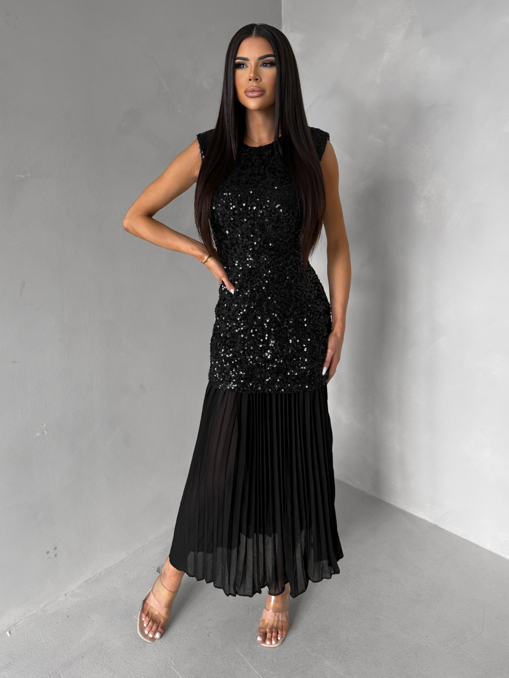 Čierne spoločenské plesové trblietavé šaty SECTOR
