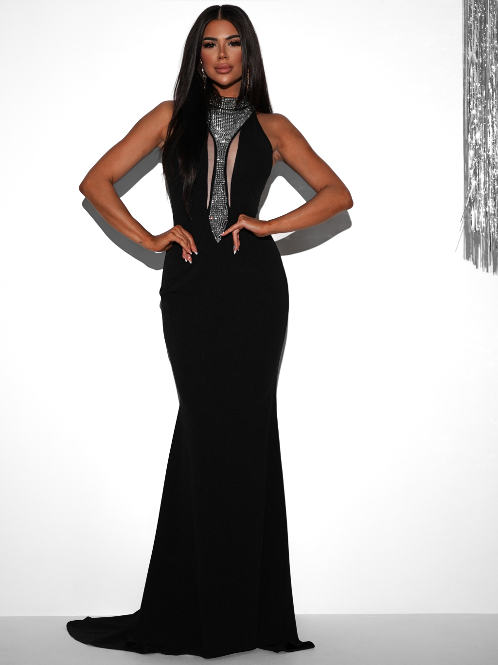 Čierne večerné dlhé šaty NOVES s kamienkami