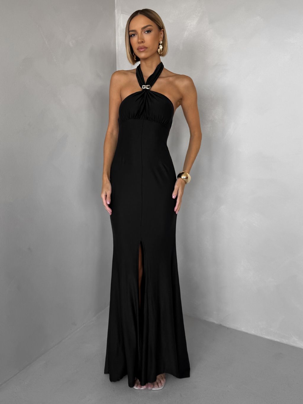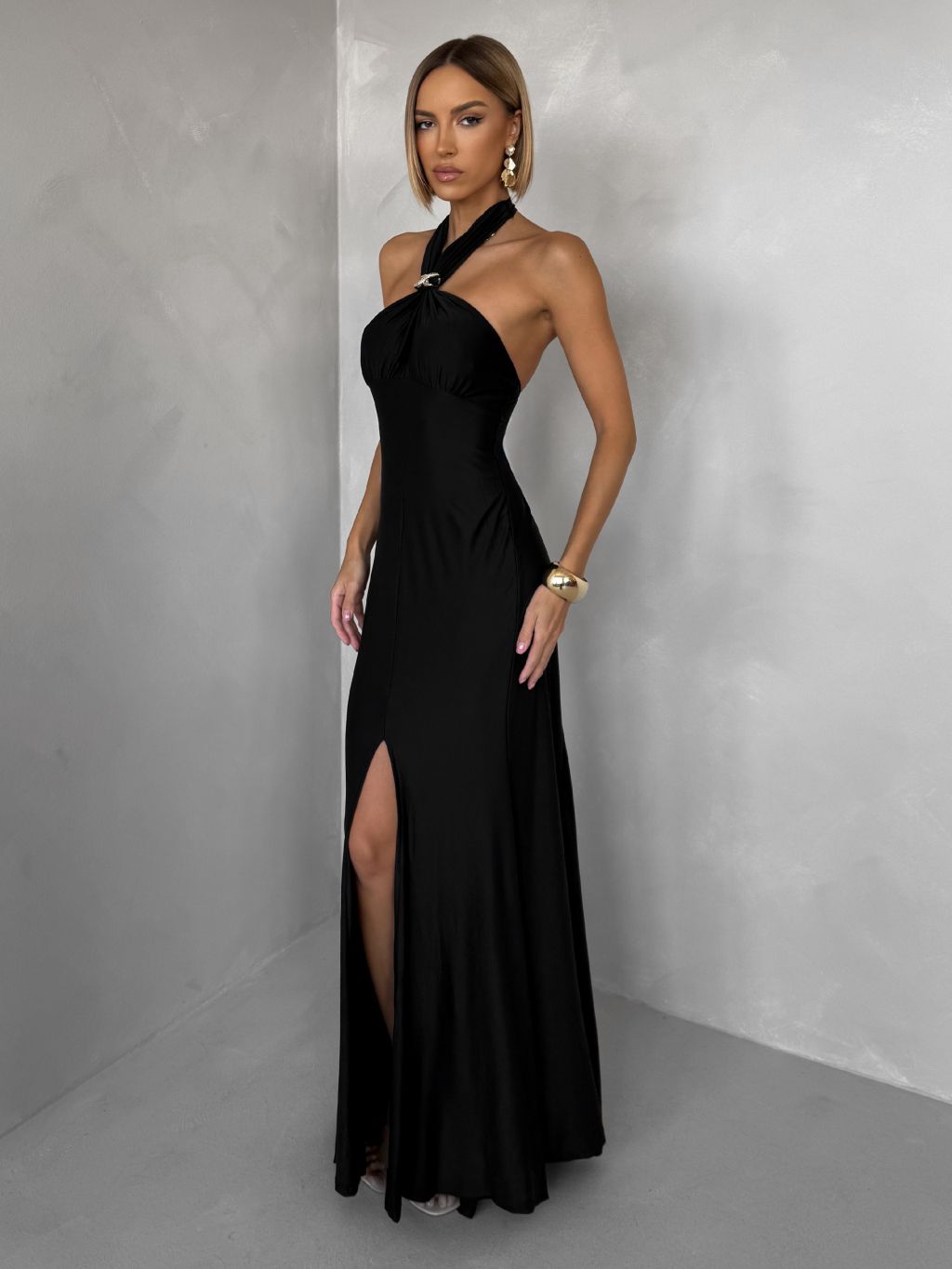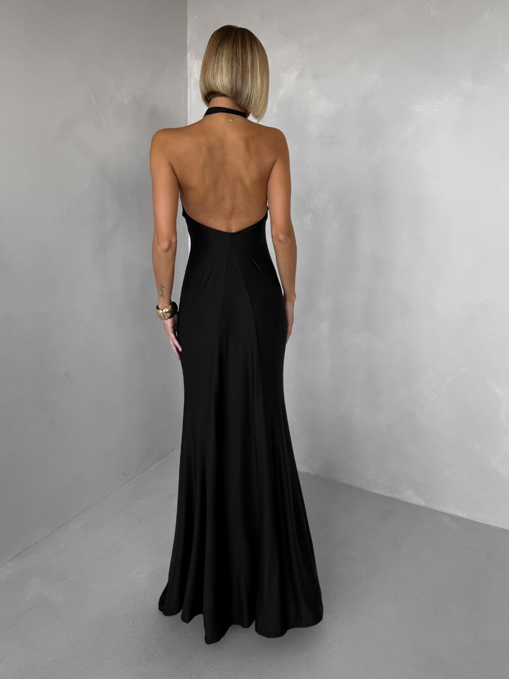 Čierne večerné dlhé šaty TRUCE s holým chrbtom