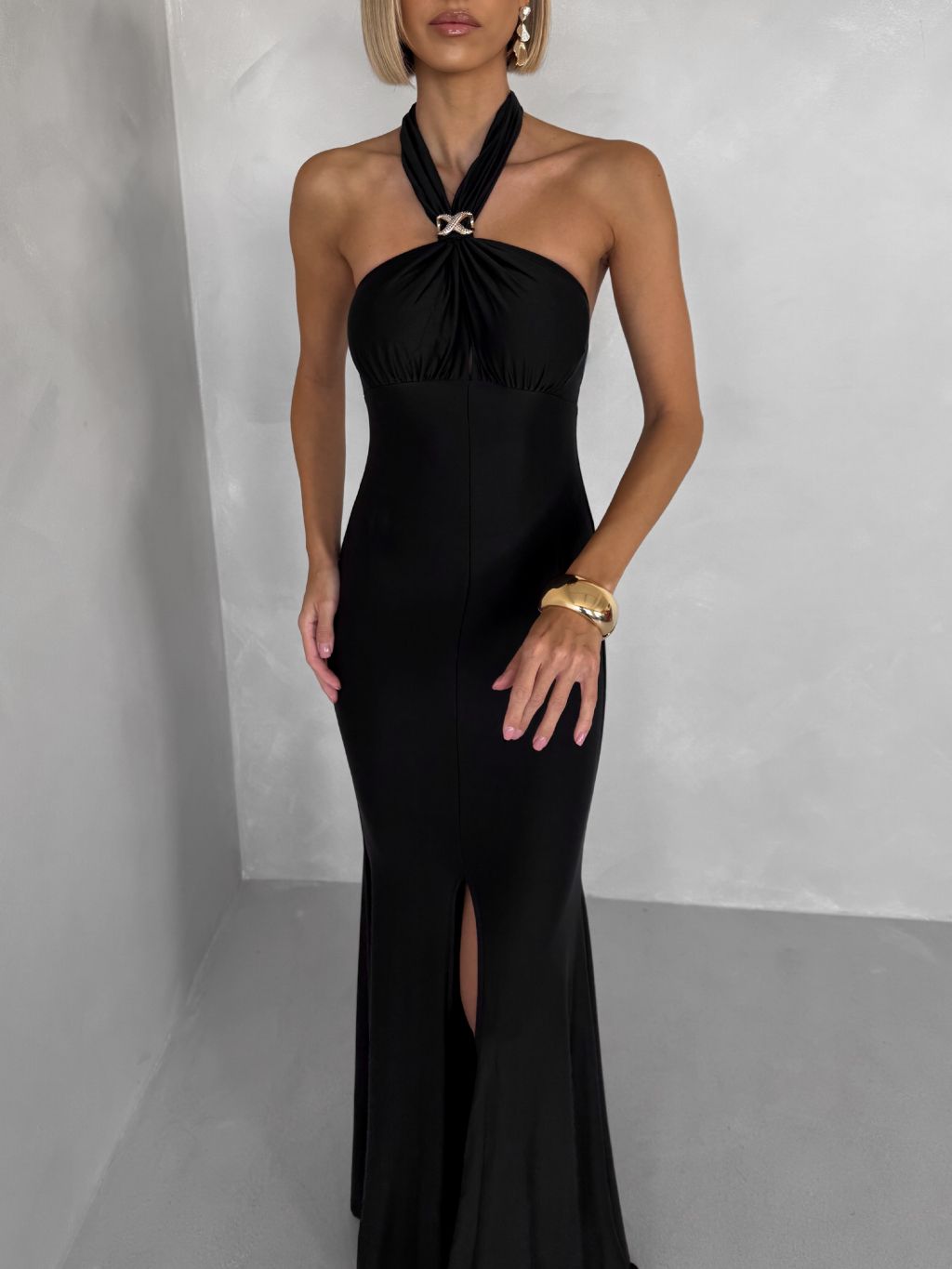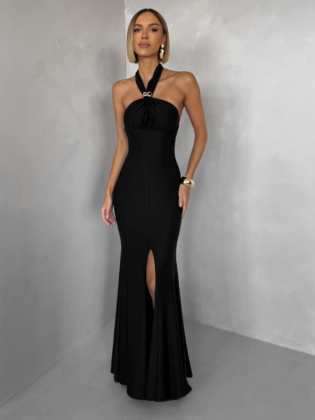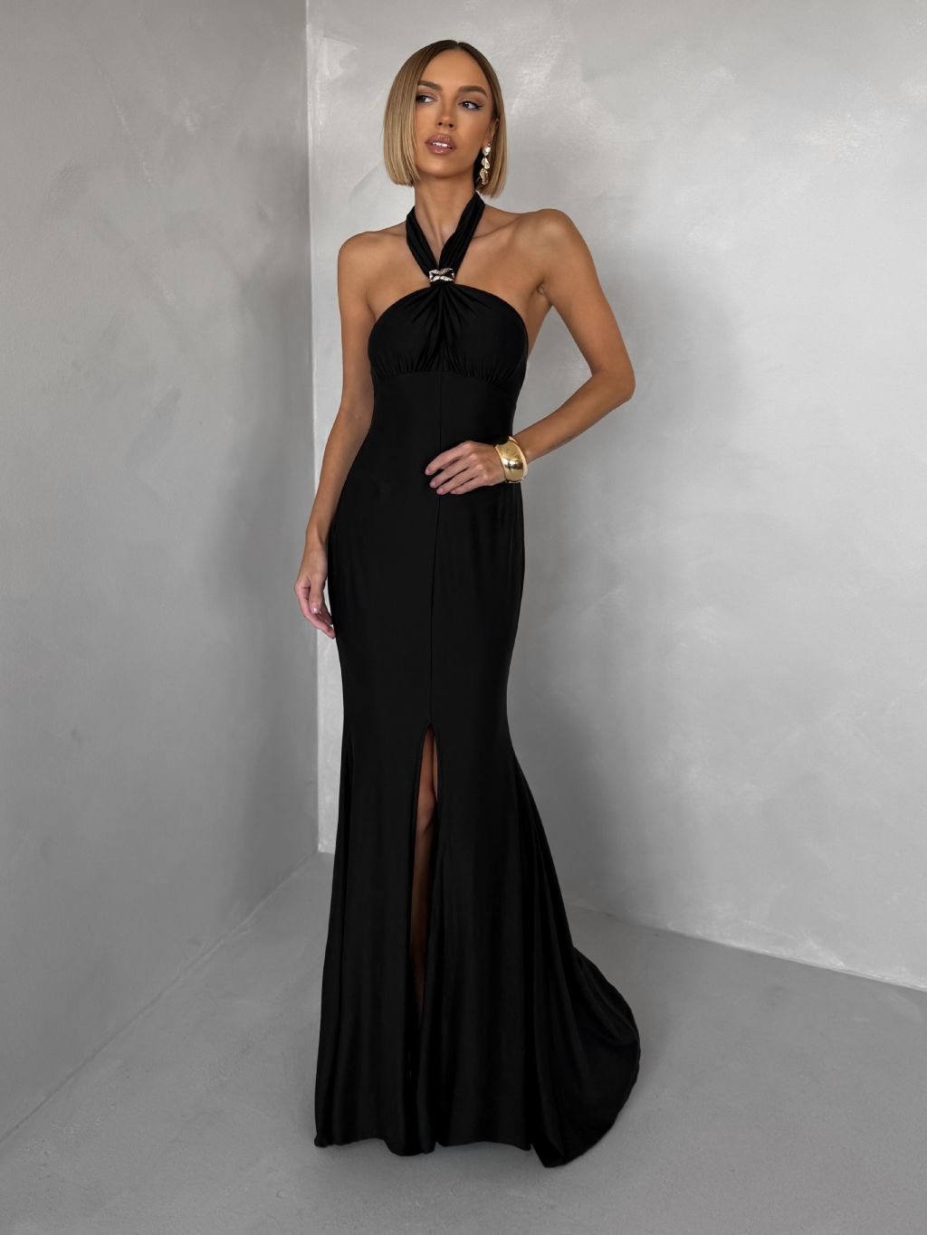 Čierne večerné dlhé šaty TRUCE s holým chrbtom