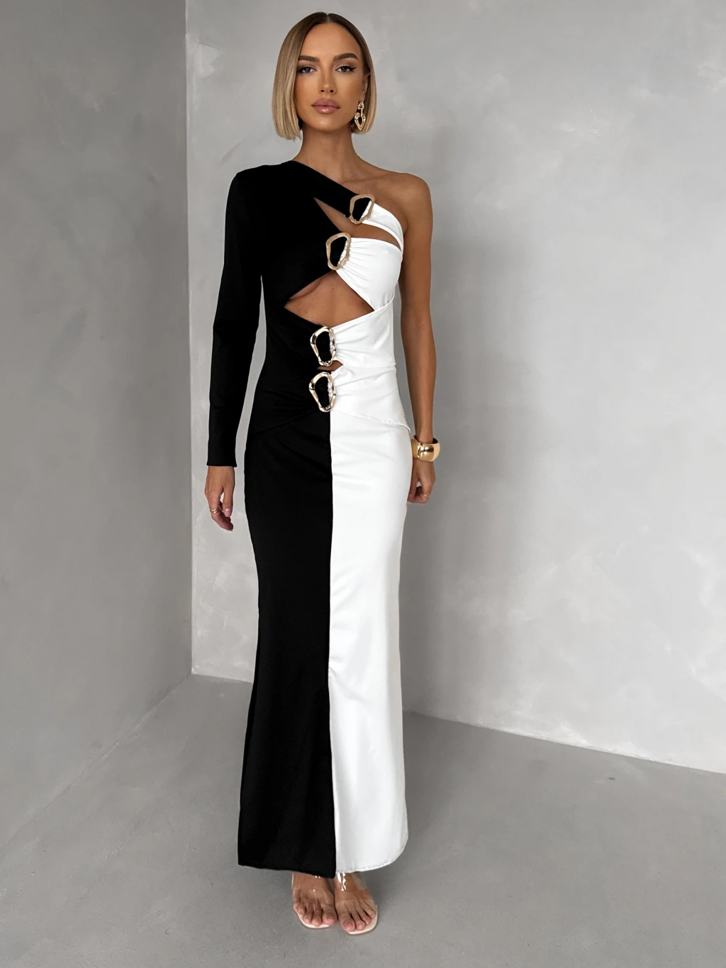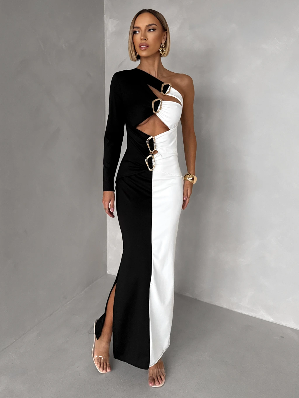 Čiernobiele sexi dlhé šaty KARILETO