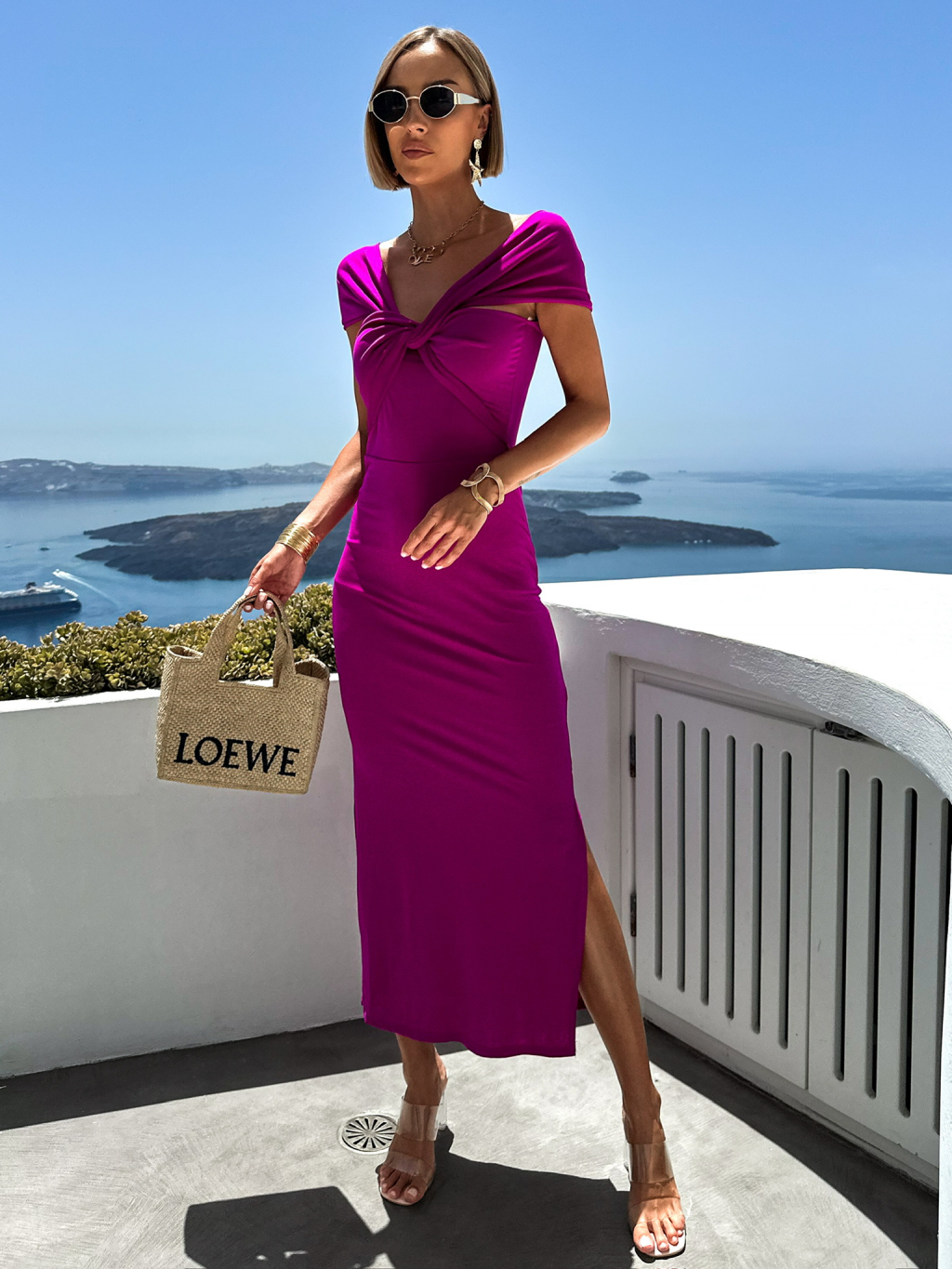 Fialové dlhé elastické šaty SOLDIER