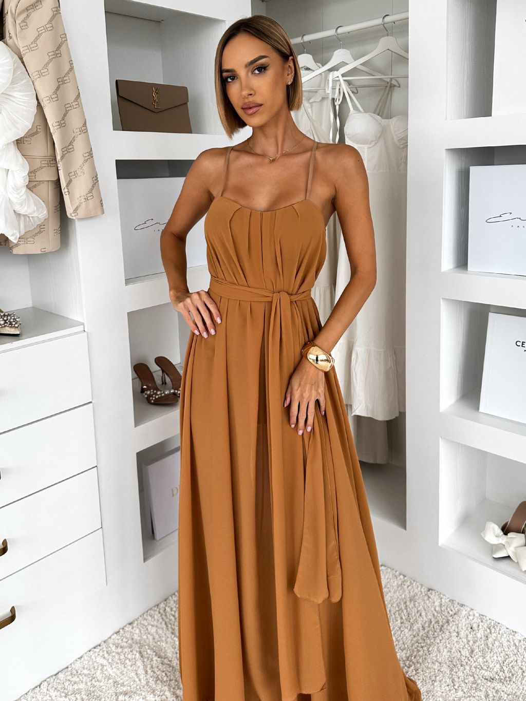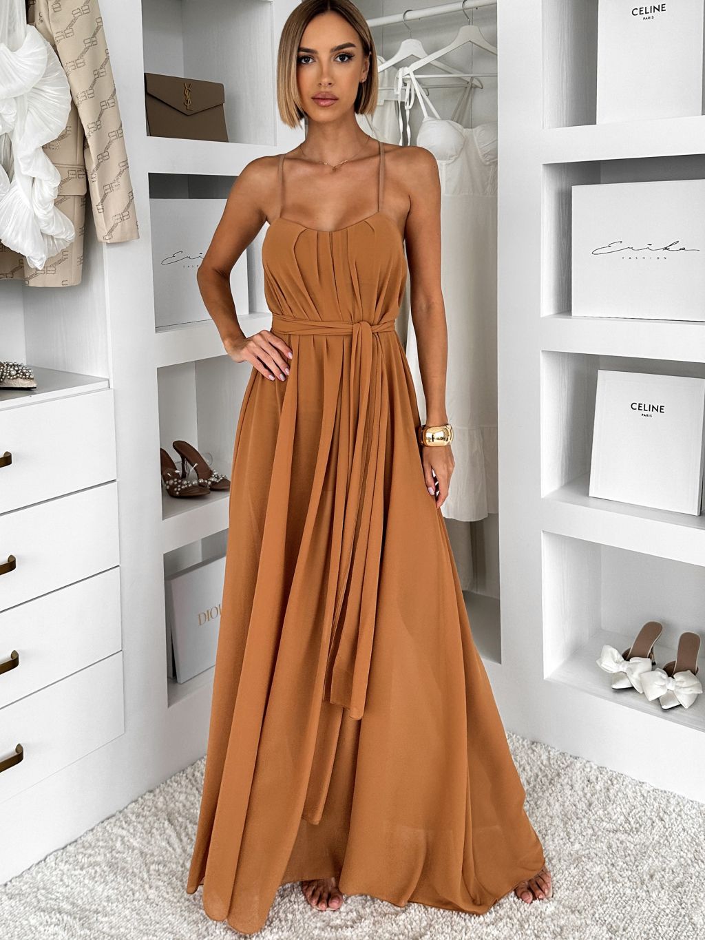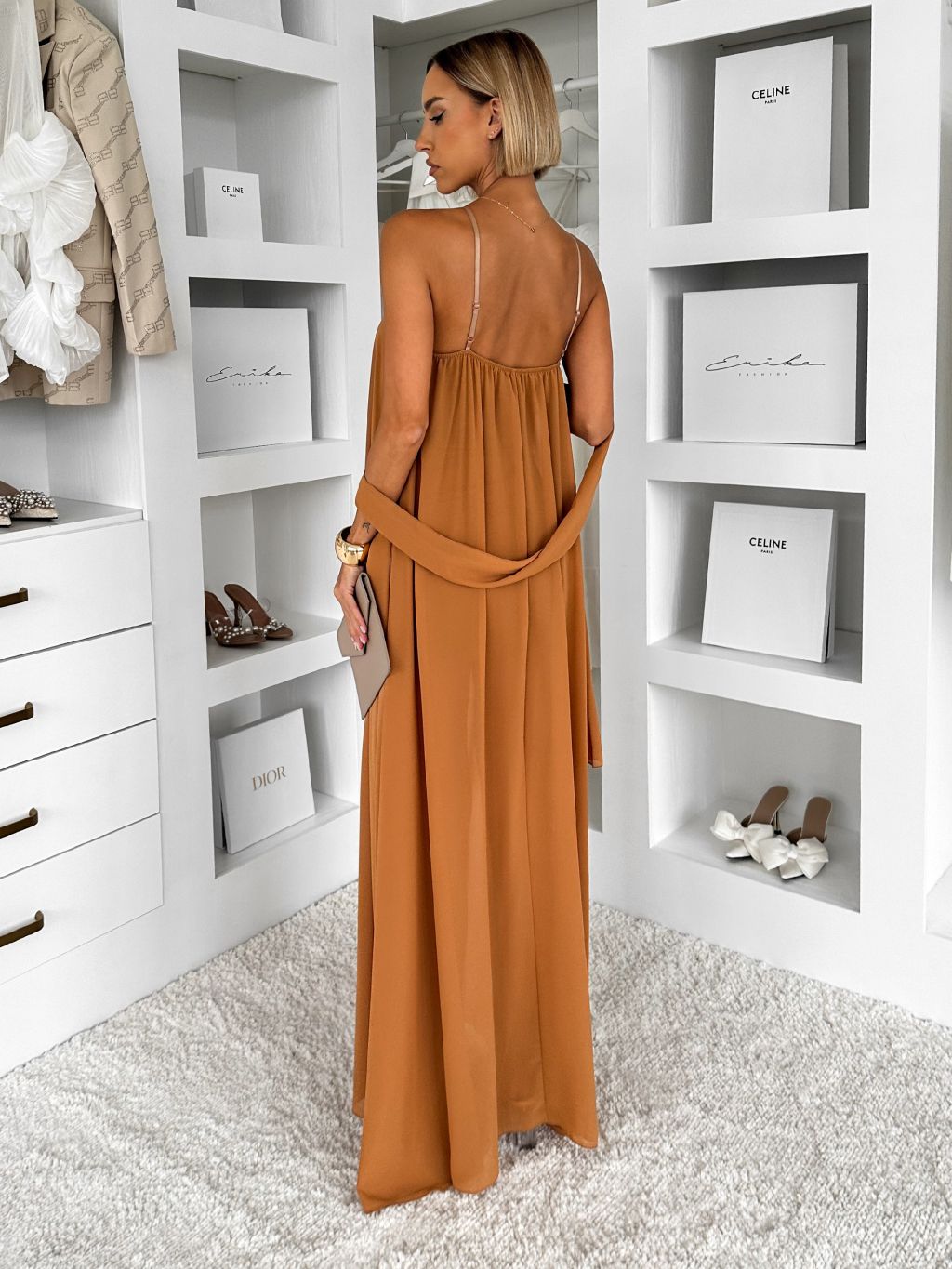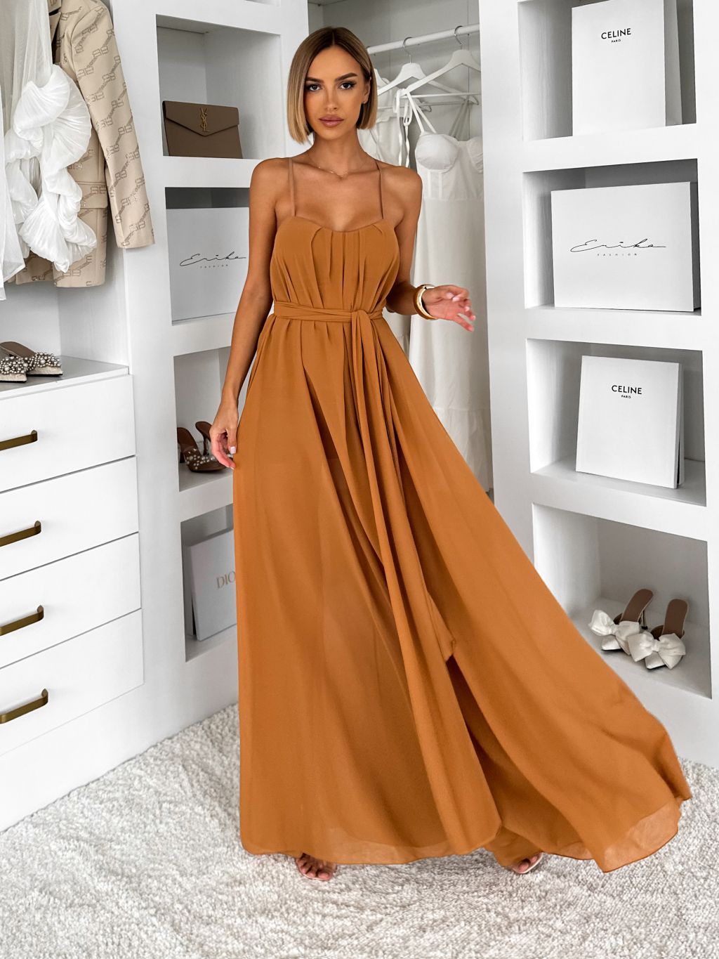 Hnedé spoločenské dlhé šaty VESTELA s vlečkou