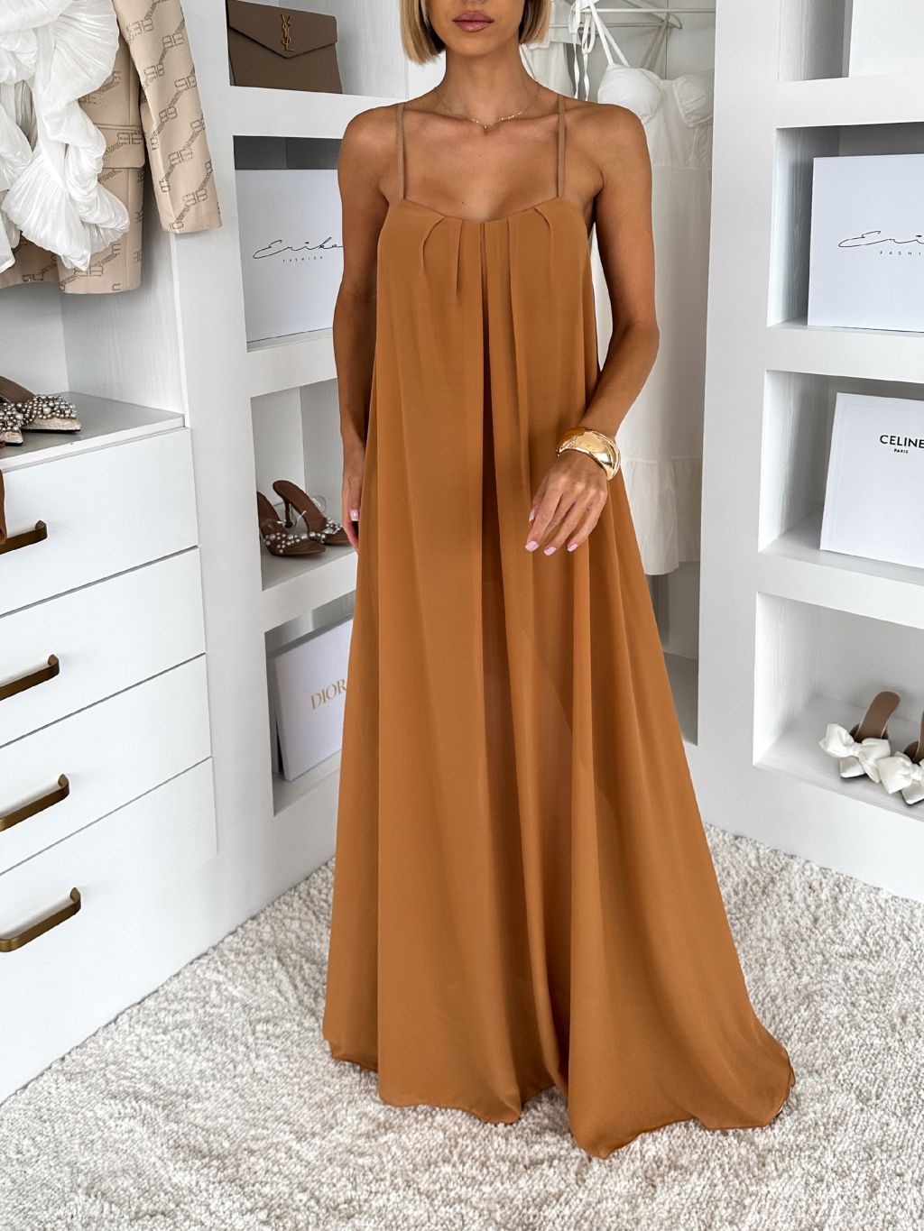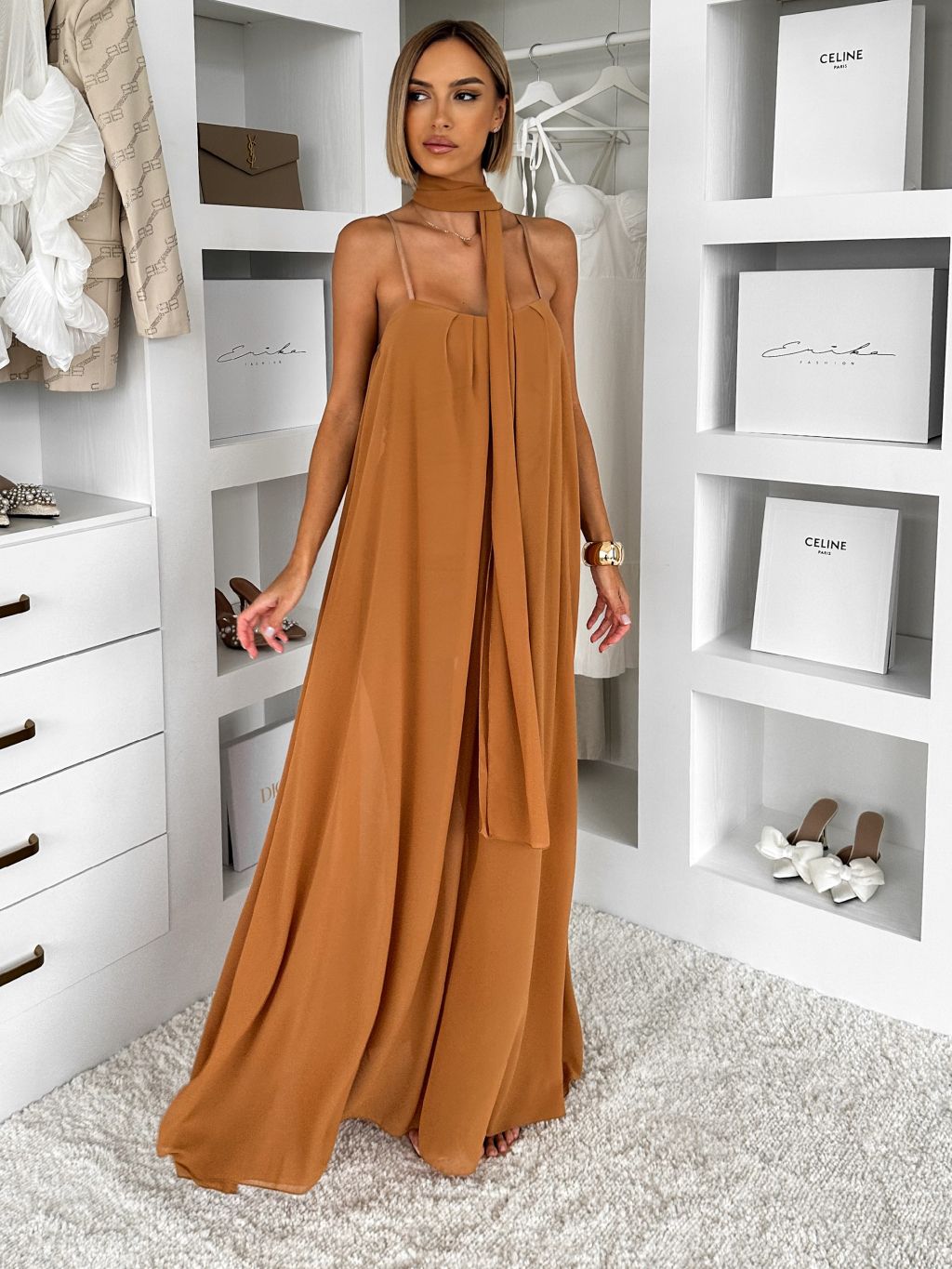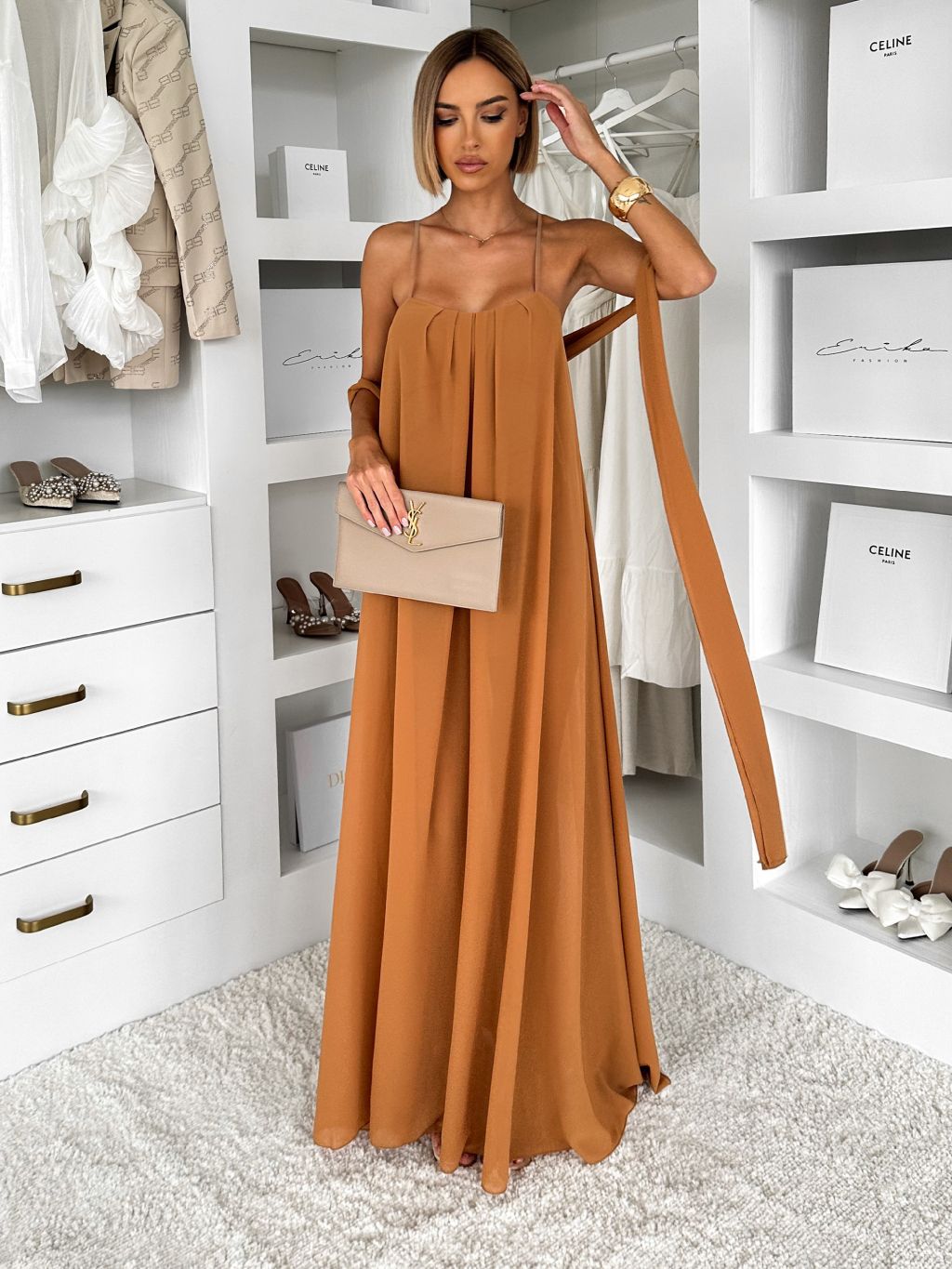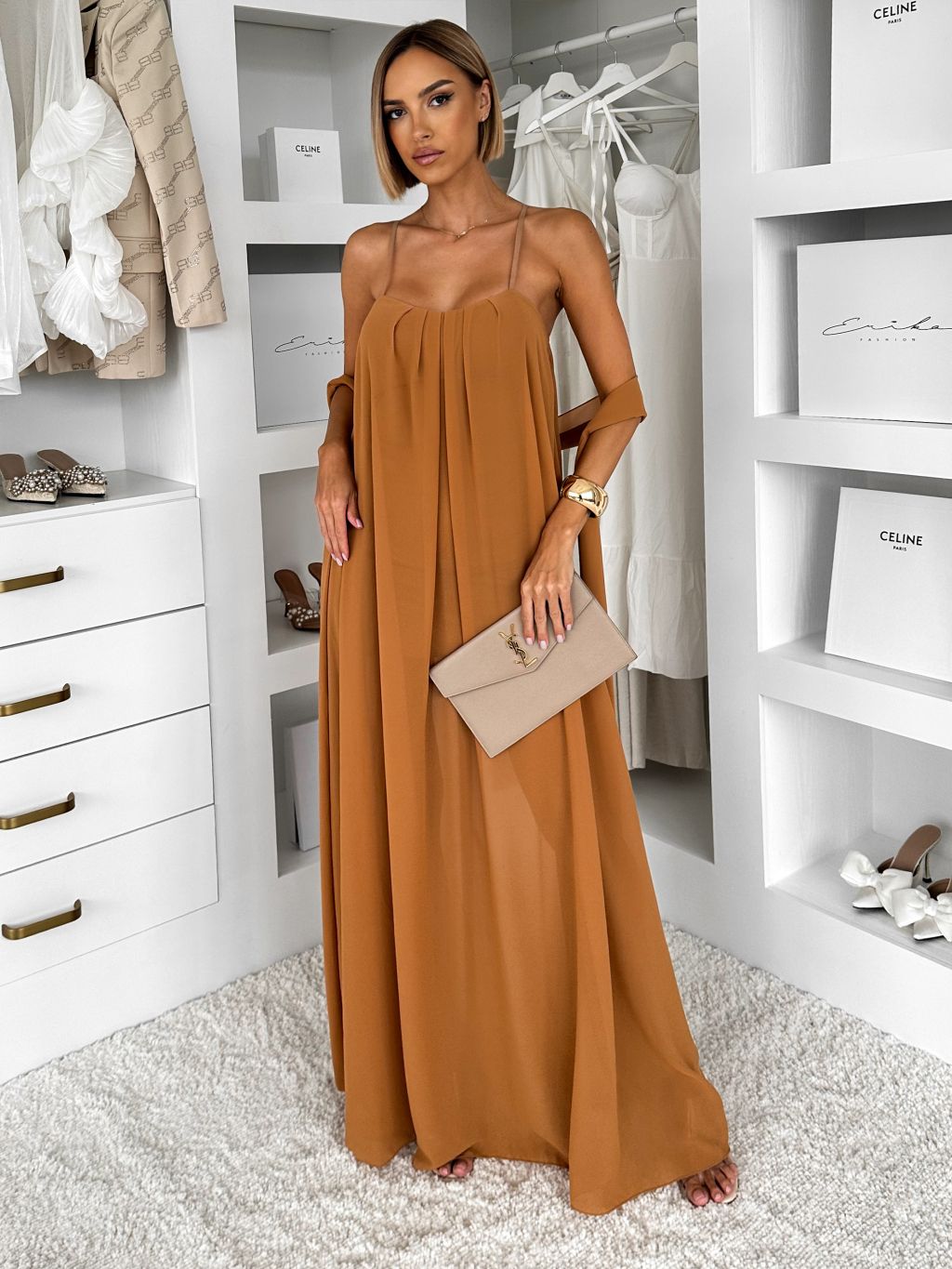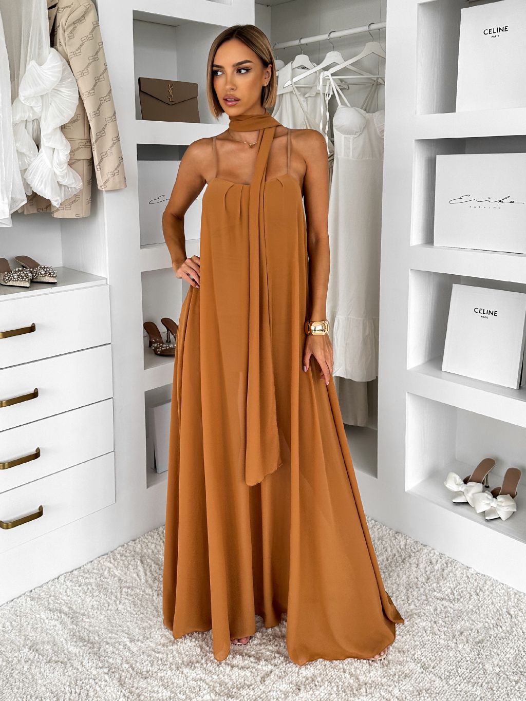 Hnedé spoločenské dlhé šaty VESTELA s vlečkou