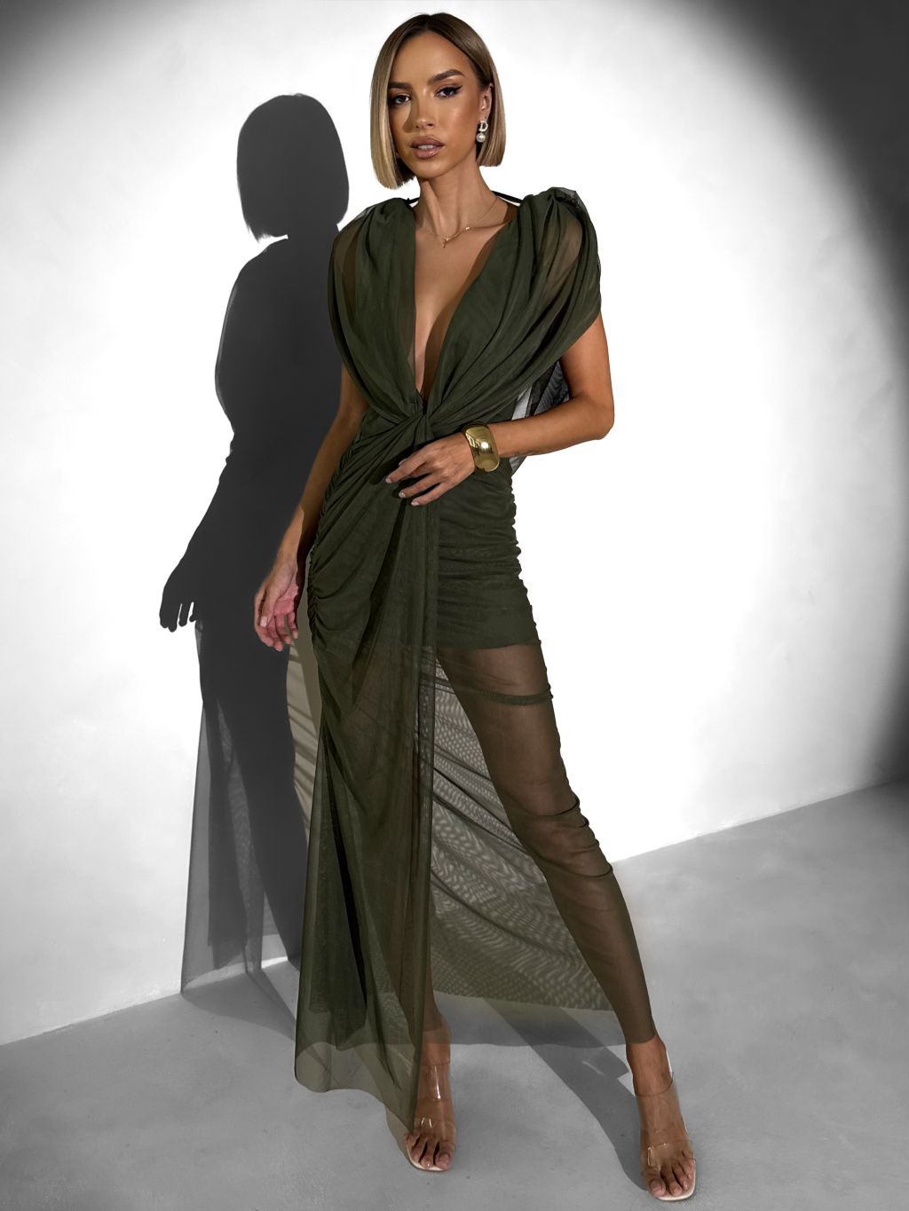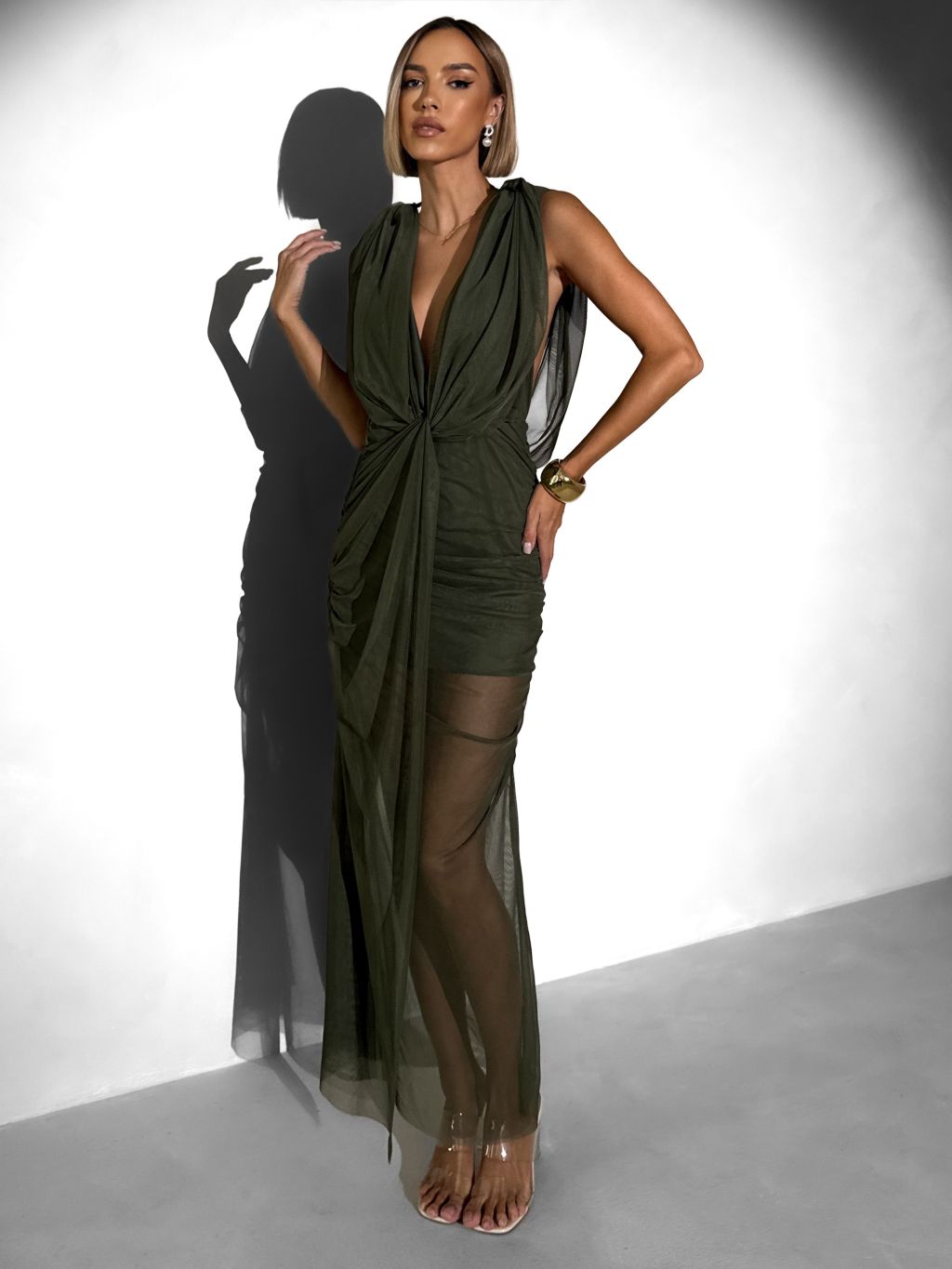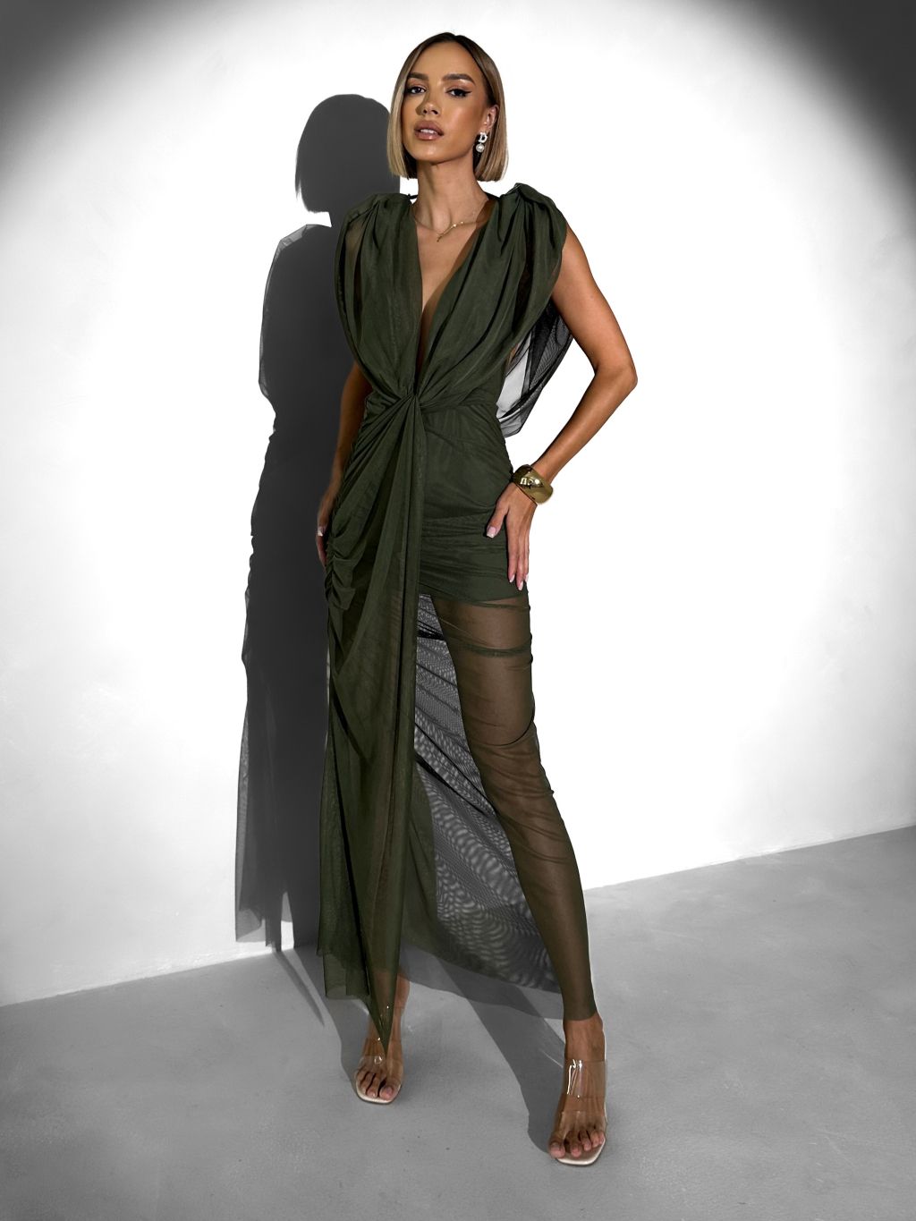 Kaki tylové dlhé šaty FALDARY