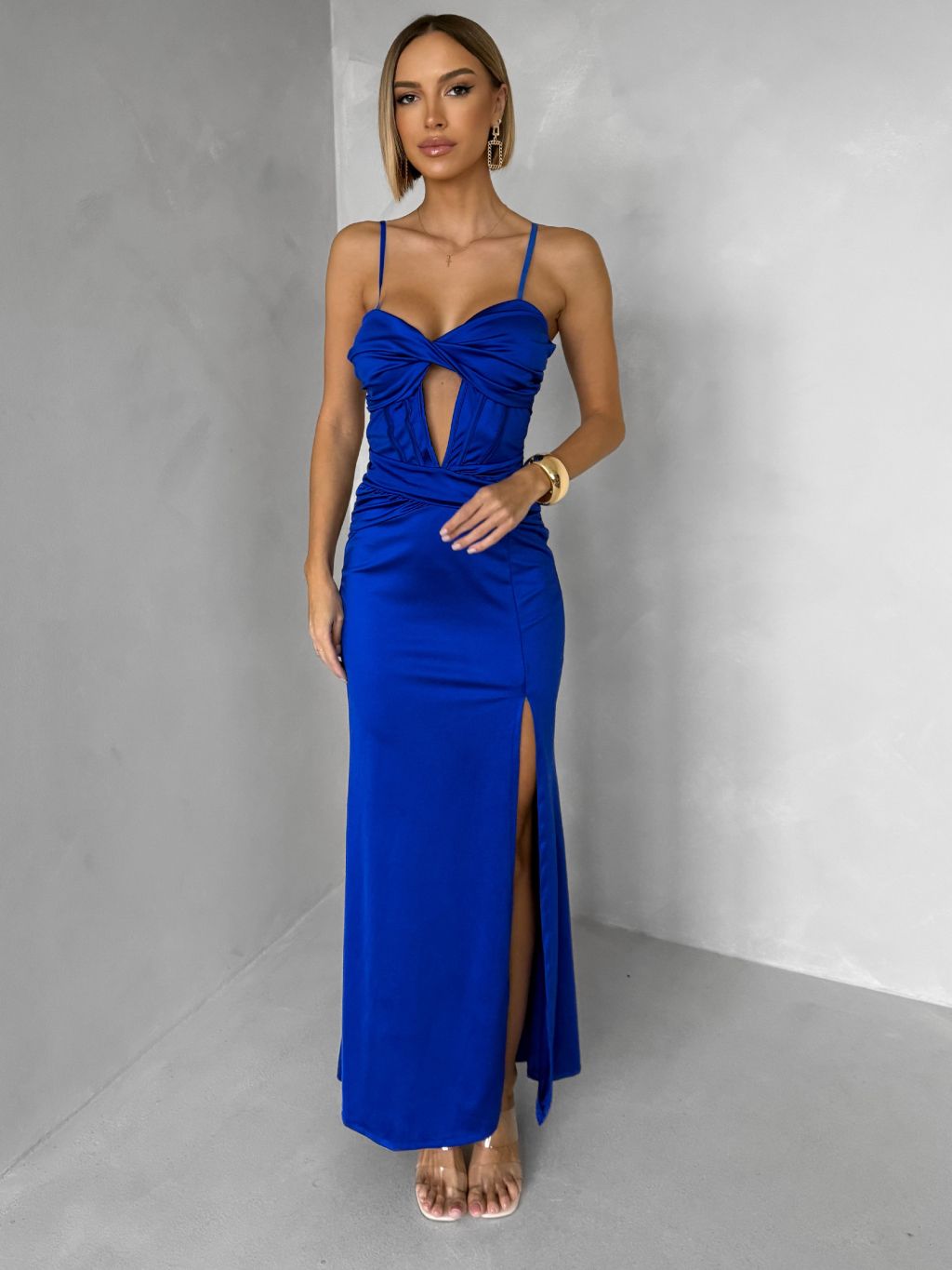 Kráľovsky modré dlhé spoločenské šaty LIMONA