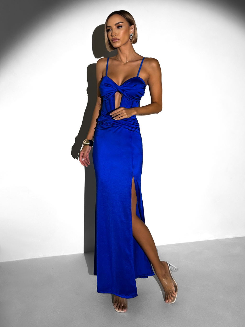 Kráľovsky modré dlhé spoločenské šaty LIMONA