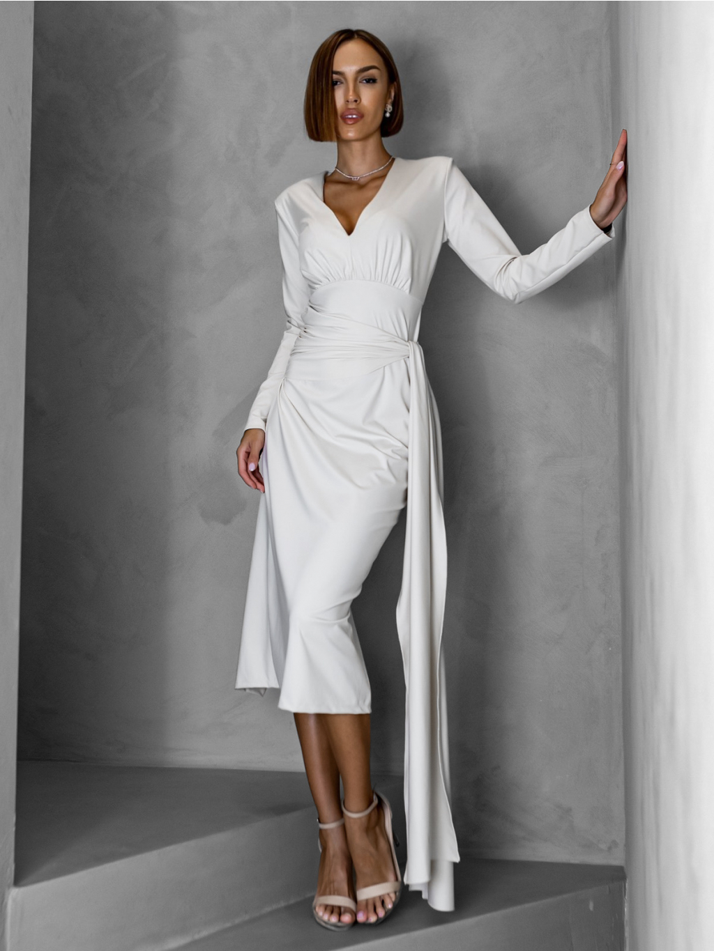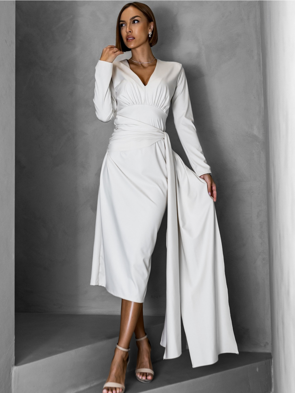 Krémové dlhé elegantné šaty AUTIS so zaväzovaním