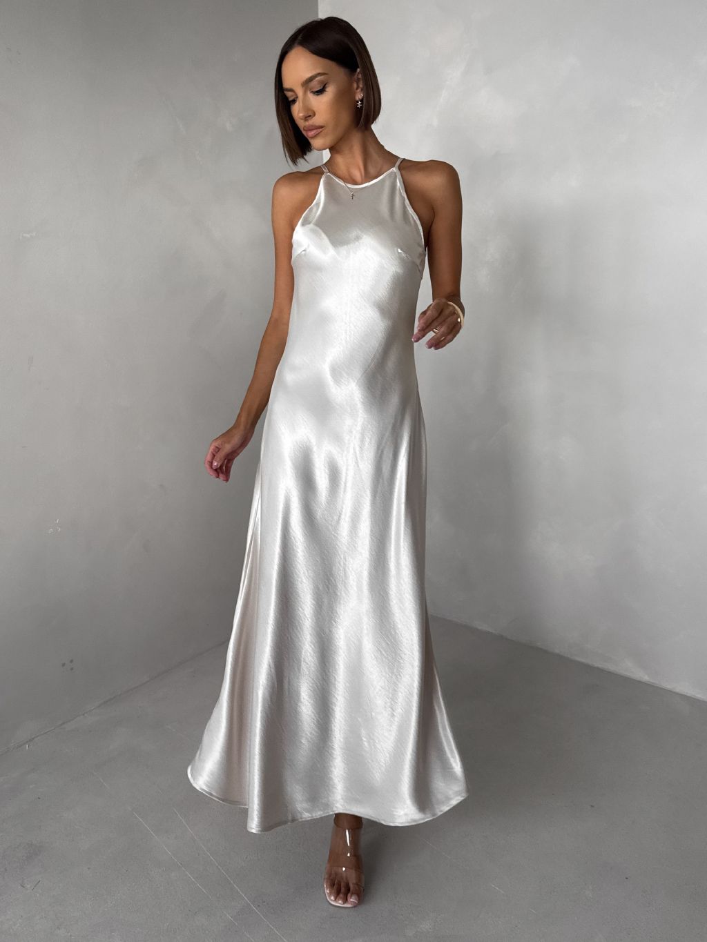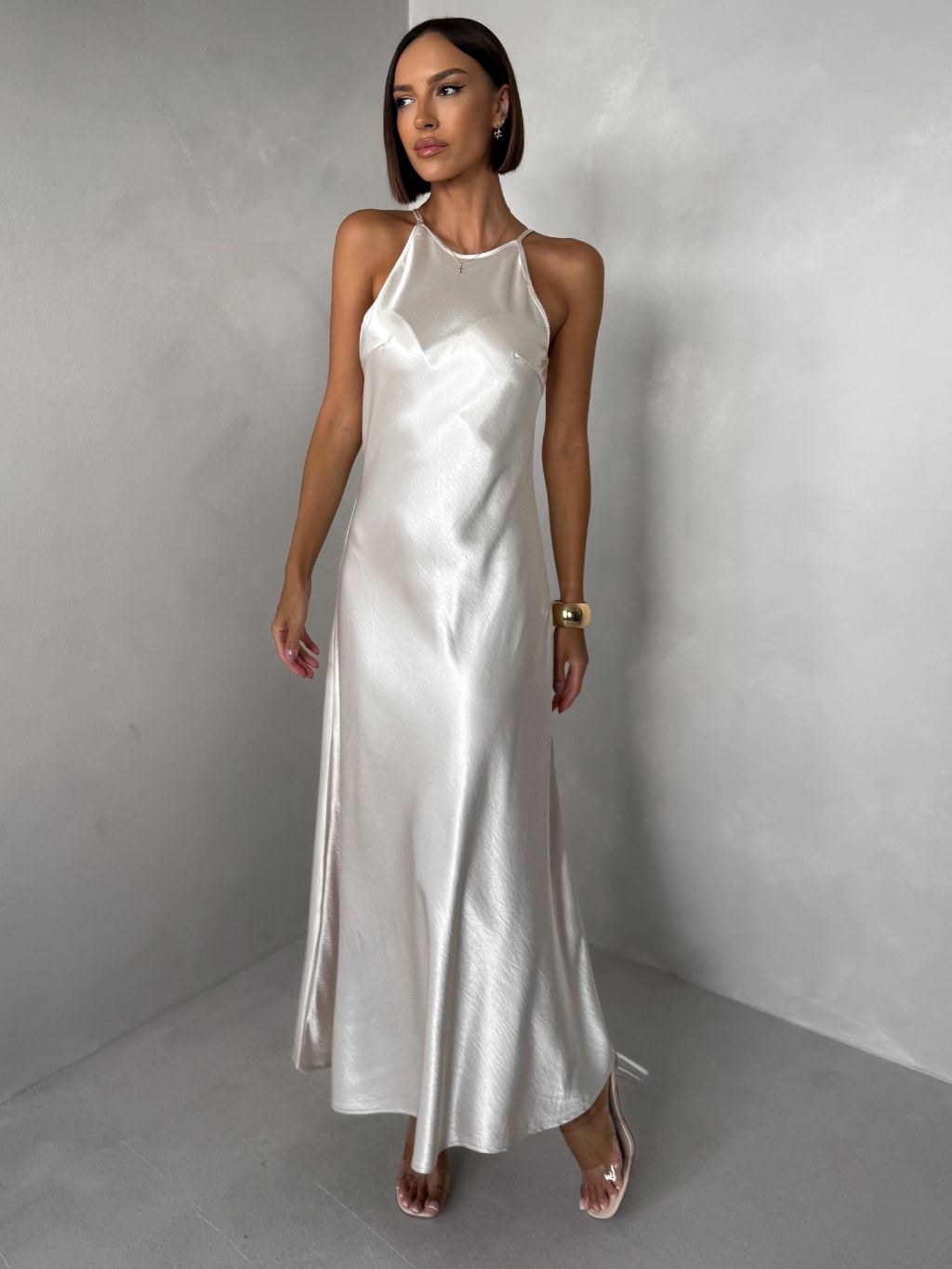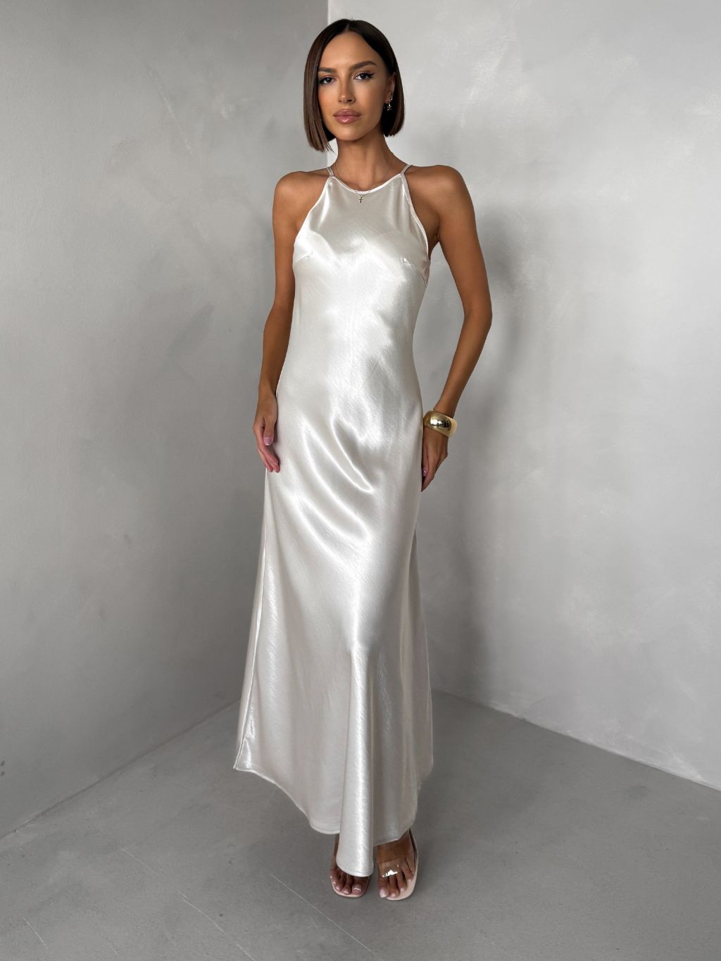 Krémové dlhé jednoduché spoločenské šaty HYDRIS