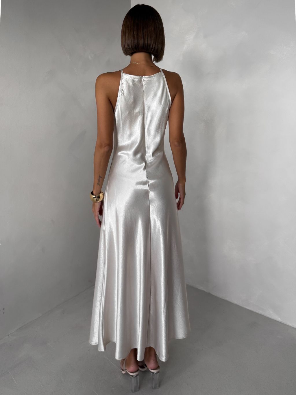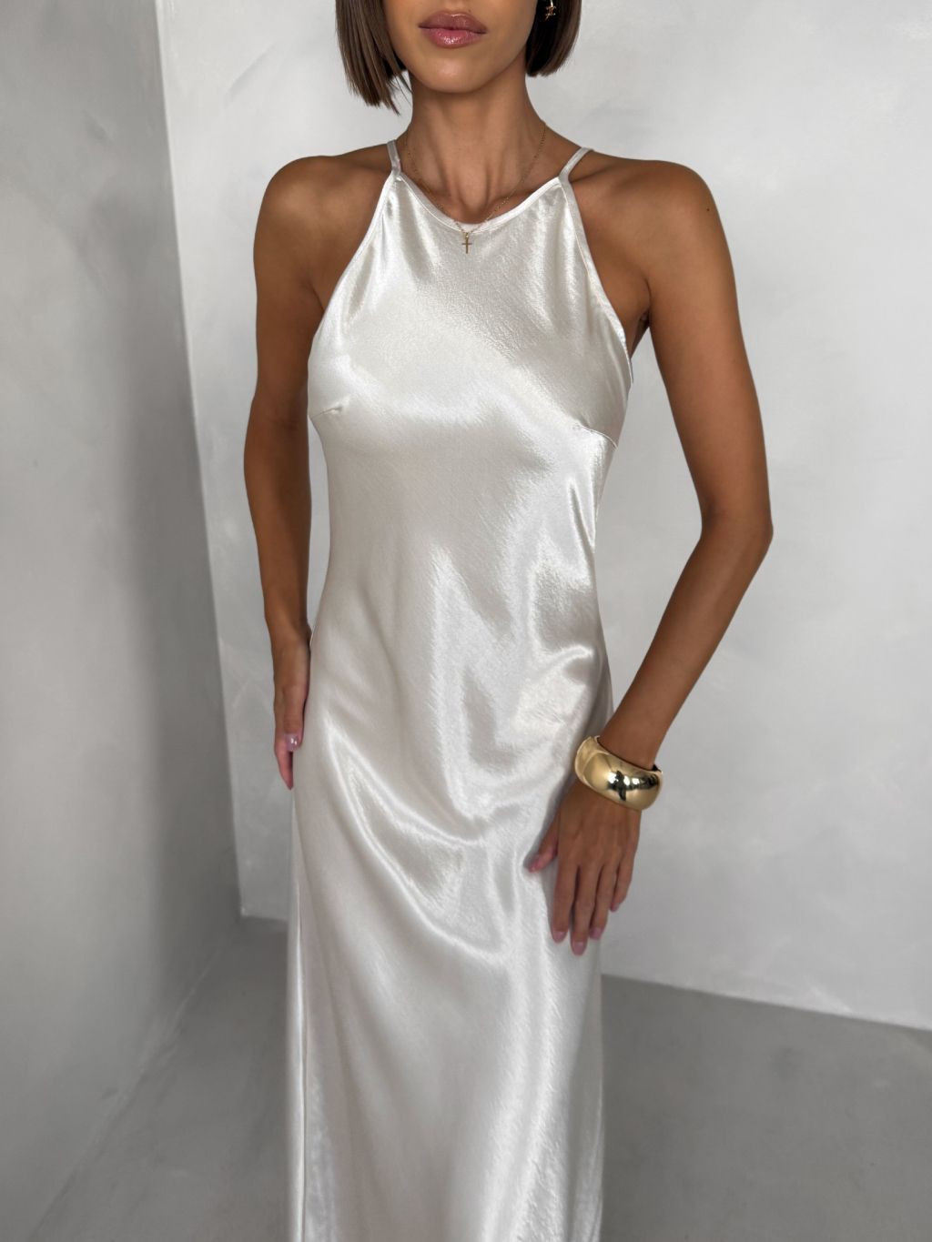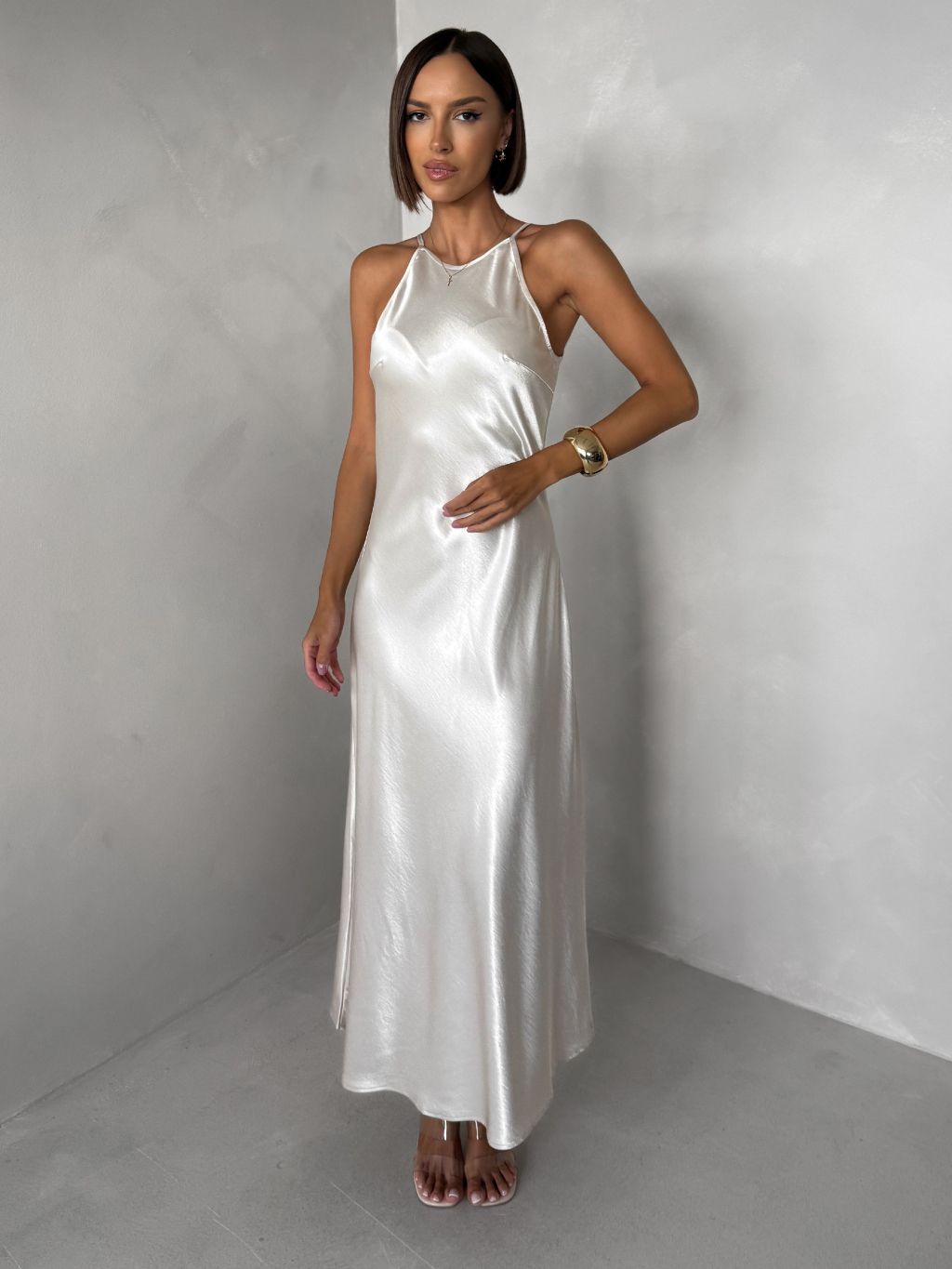 Krémové dlhé jednoduché spoločenské šaty HYDRIS