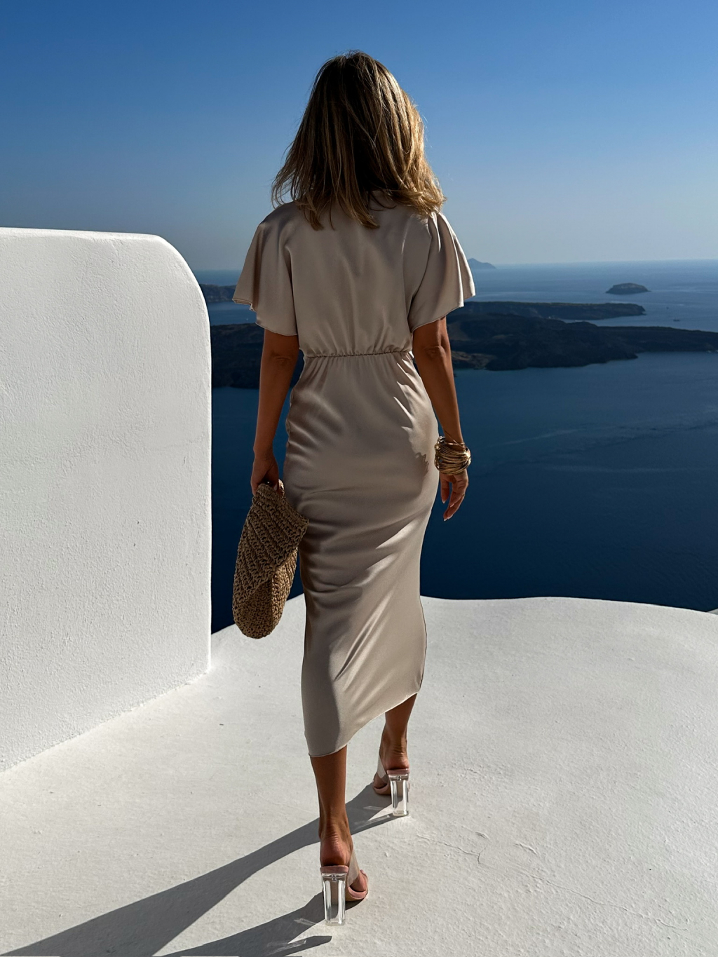 Krémové elegantné šaty MIRIAM s krátkym rukávom