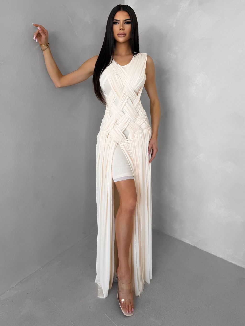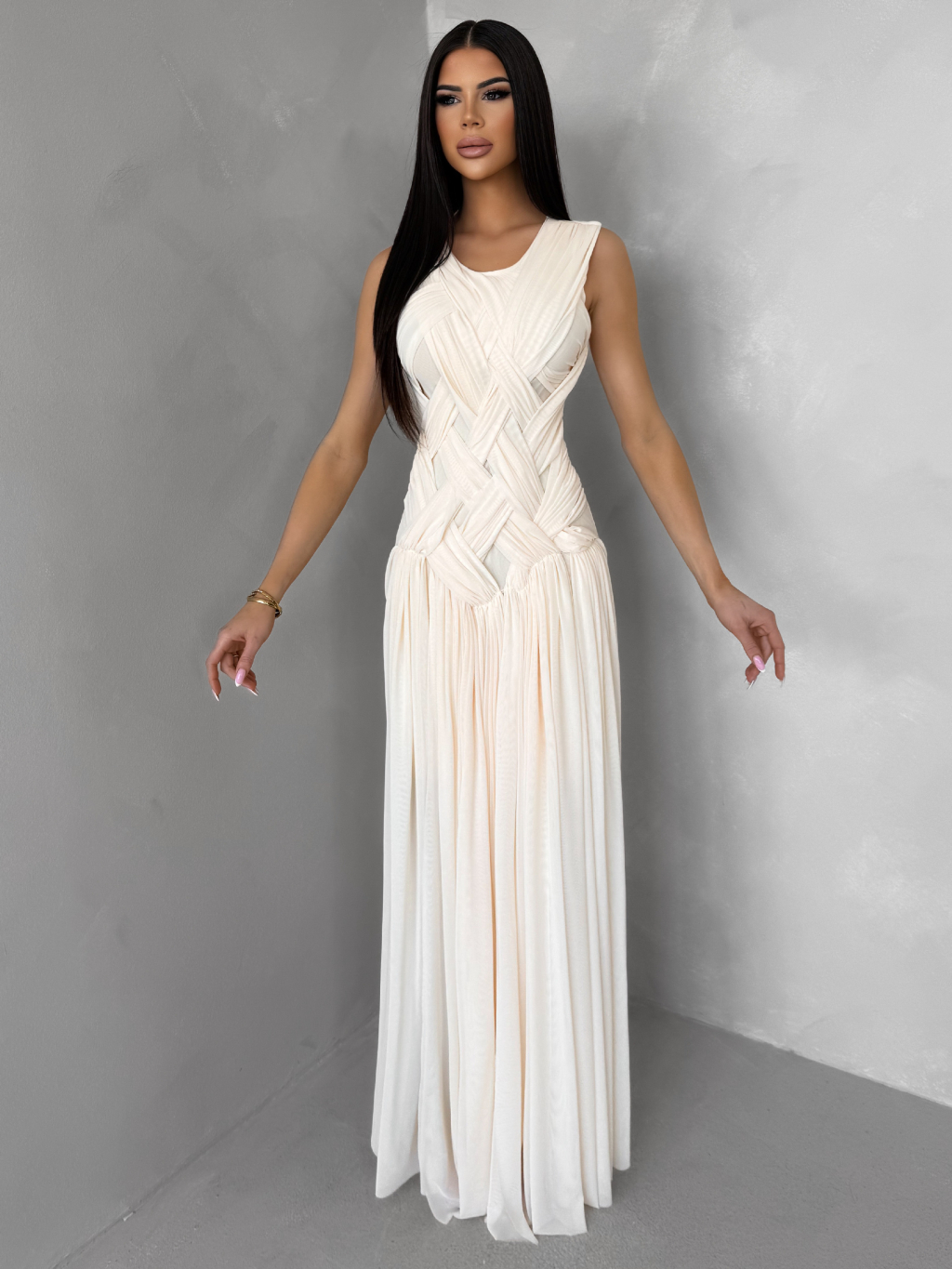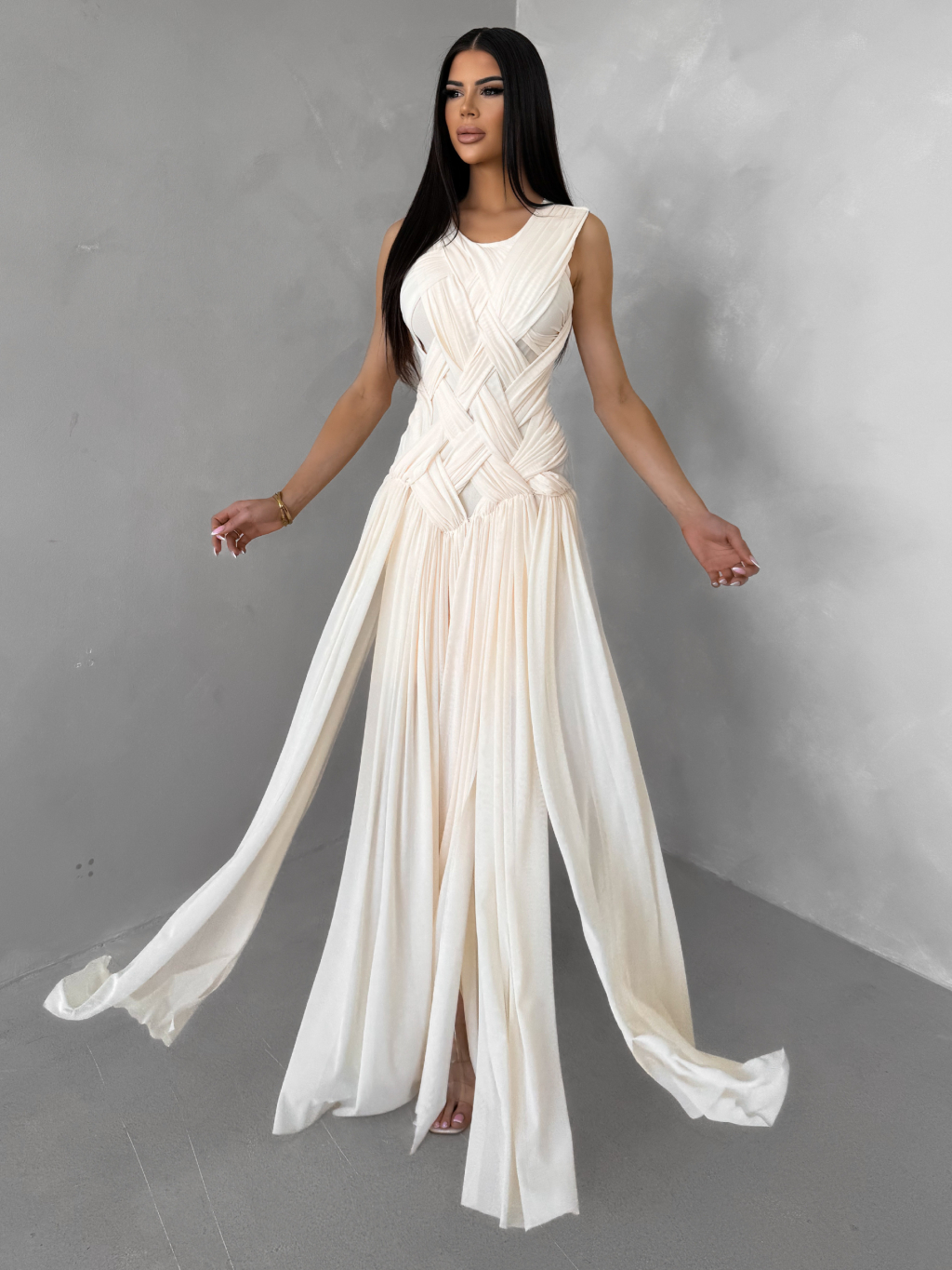Krémové luxusné dlhé šifónové šaty PALYRA