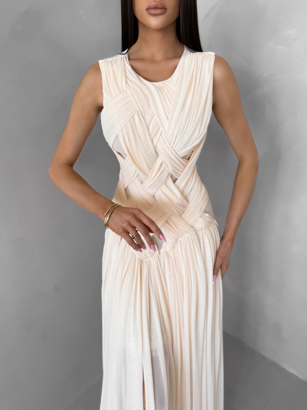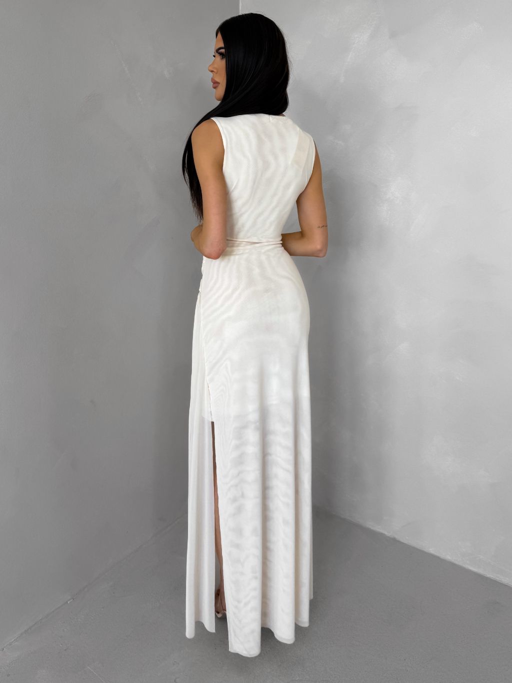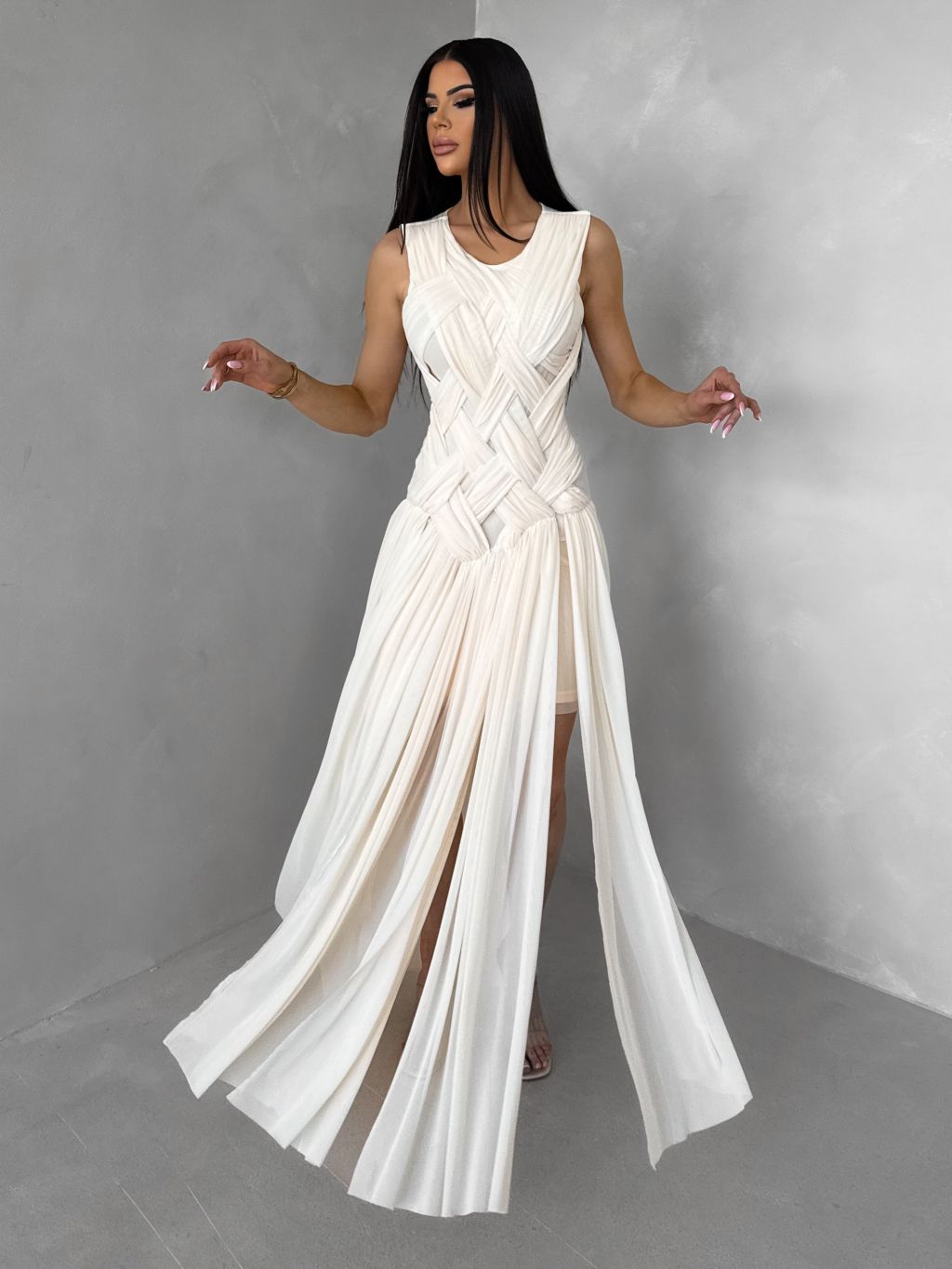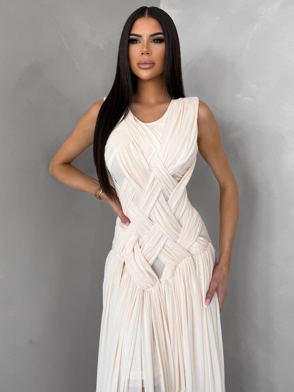 Krémové luxusné dlhé šifónové šaty PALYRA